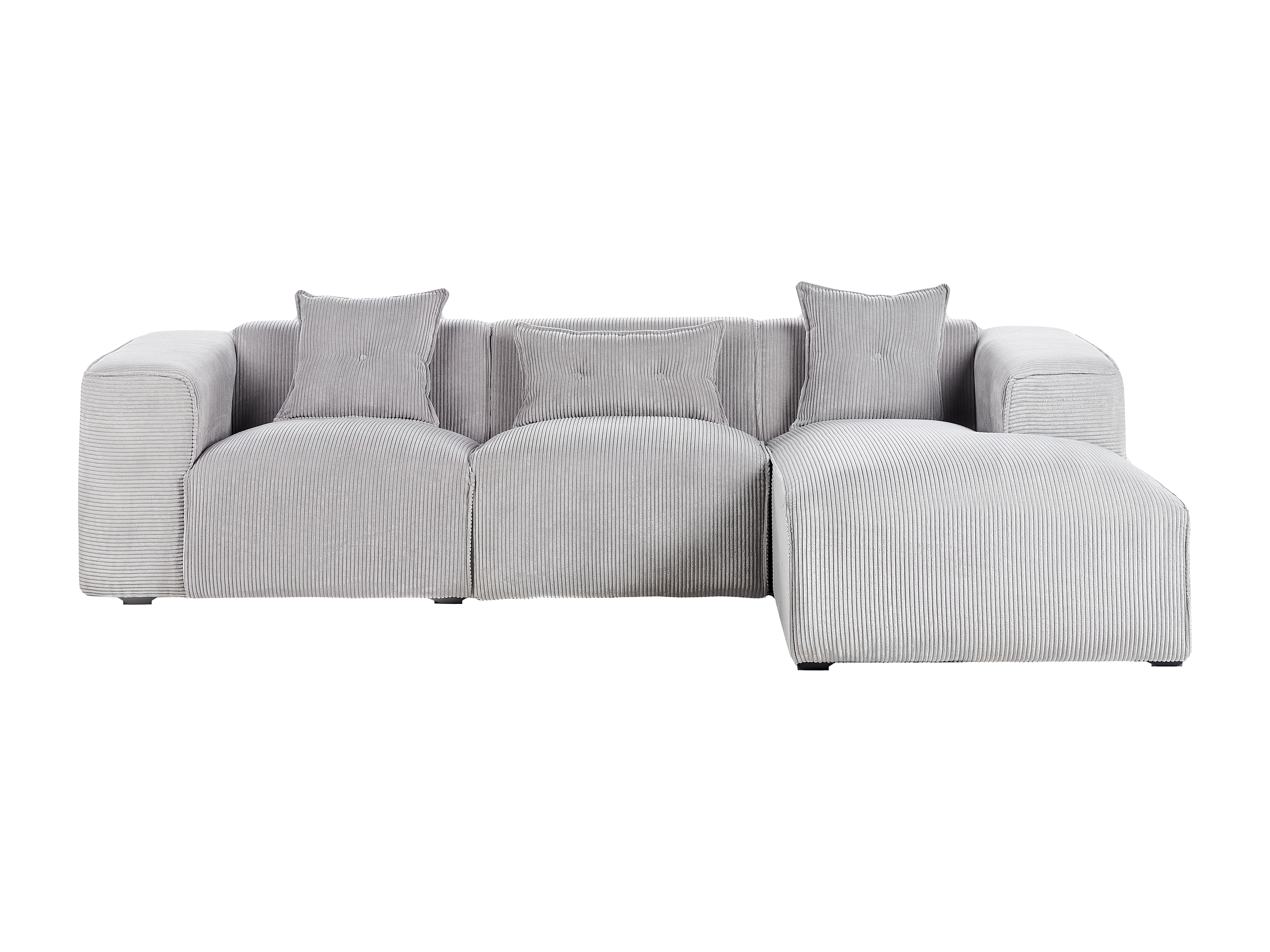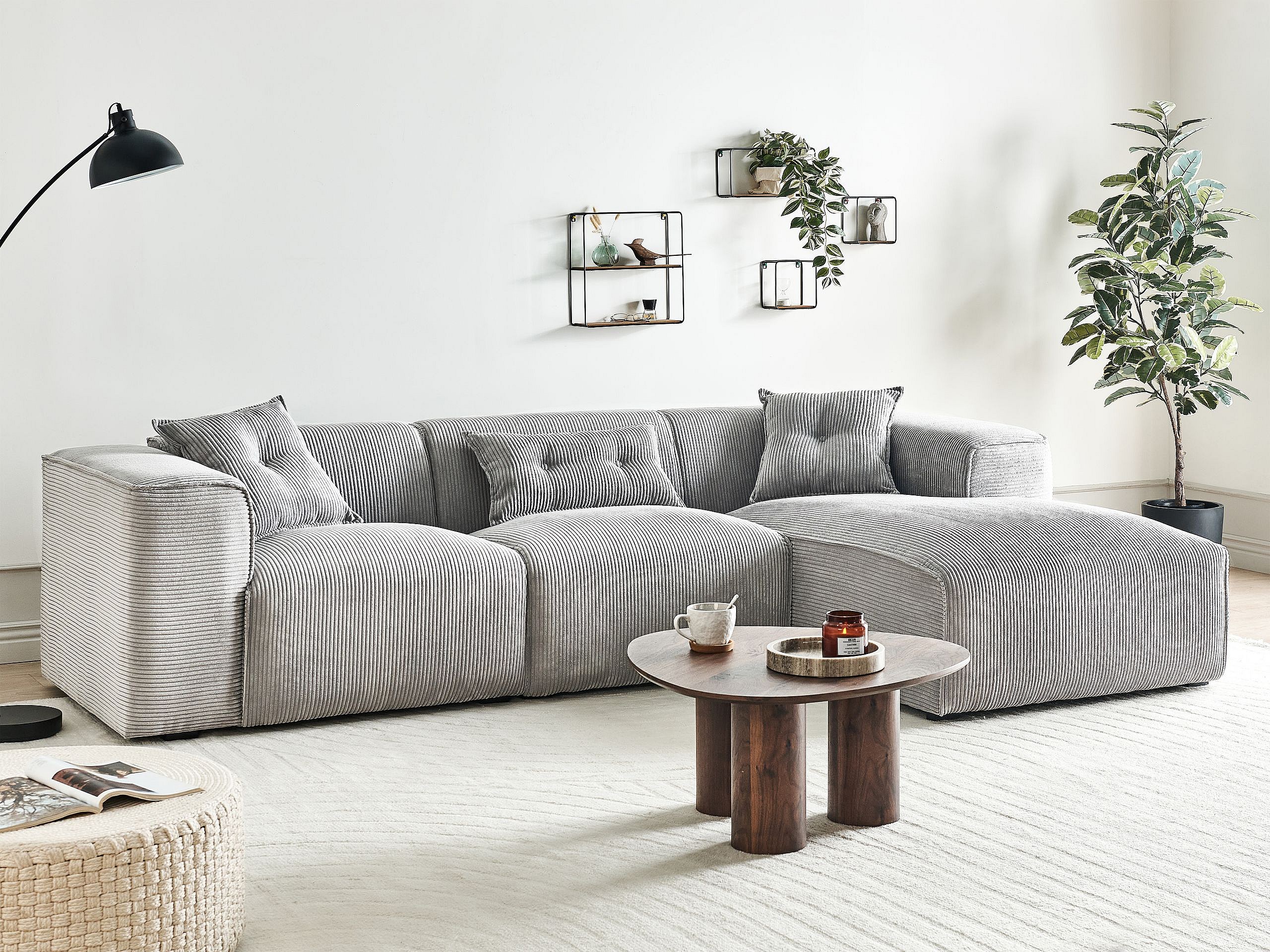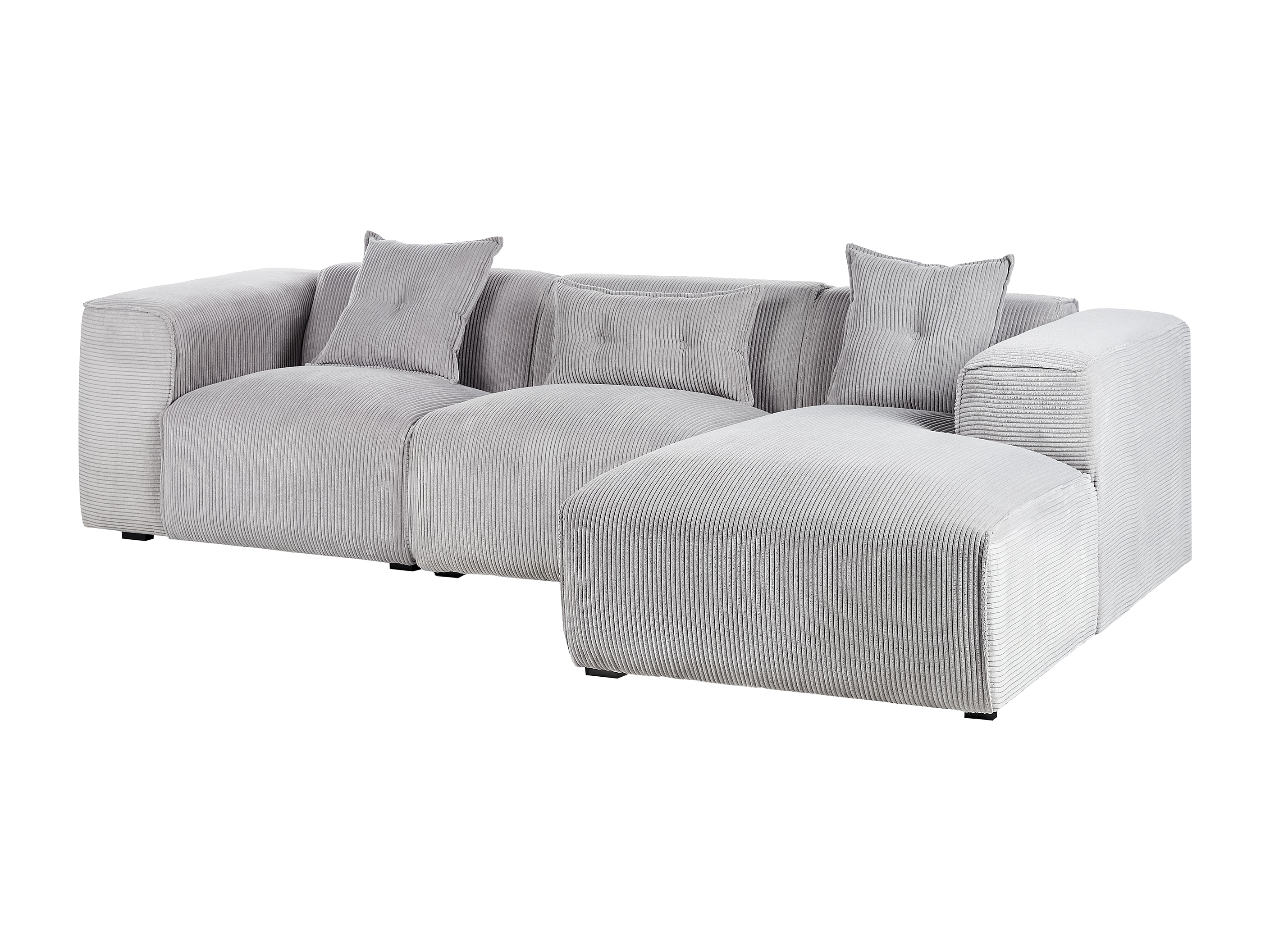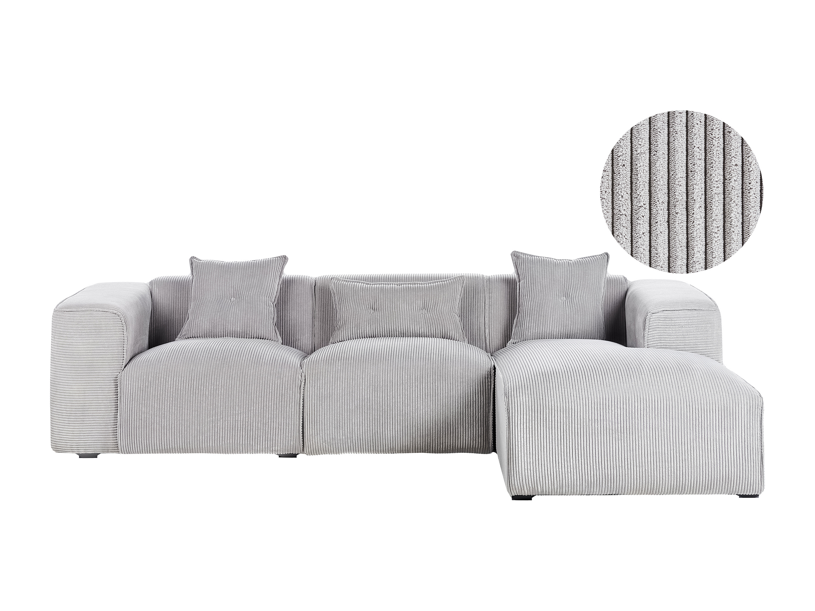 Canapé d'angle 3 places DOLVA Velours côtelé Gris clair Côté droite