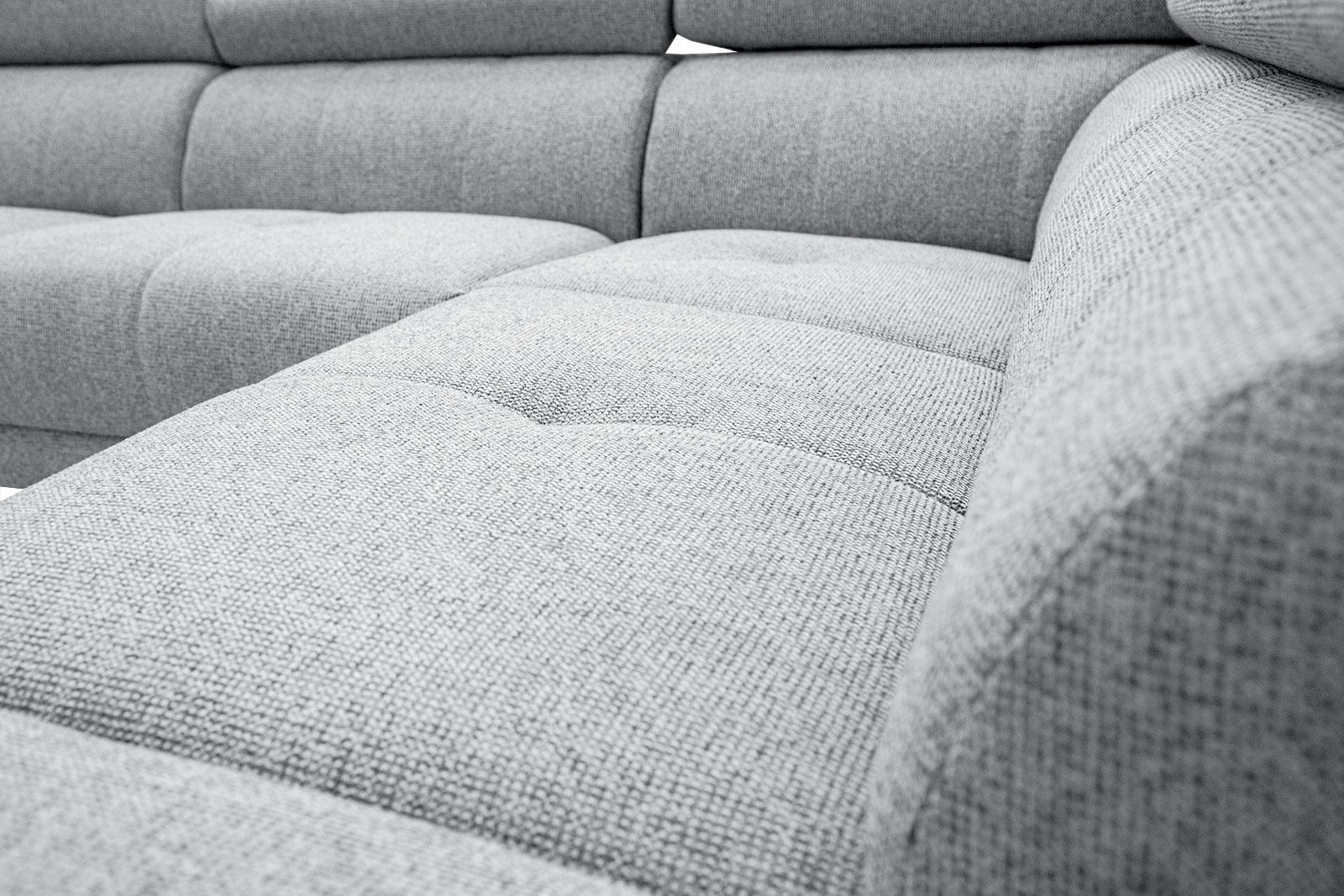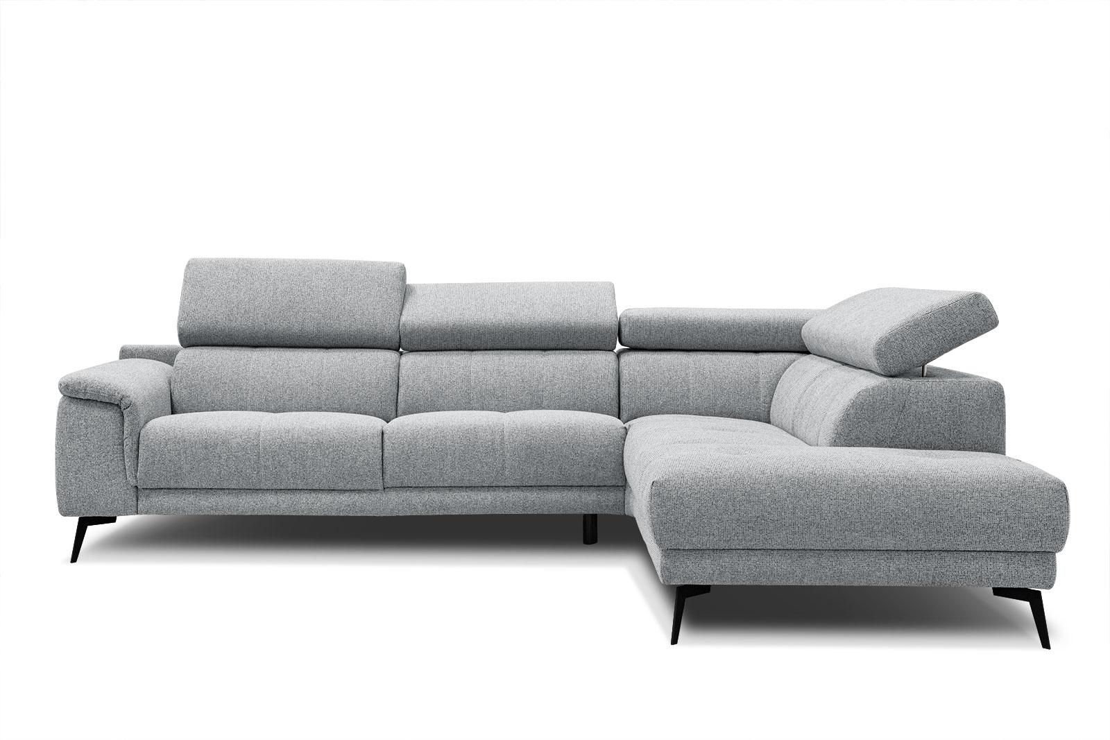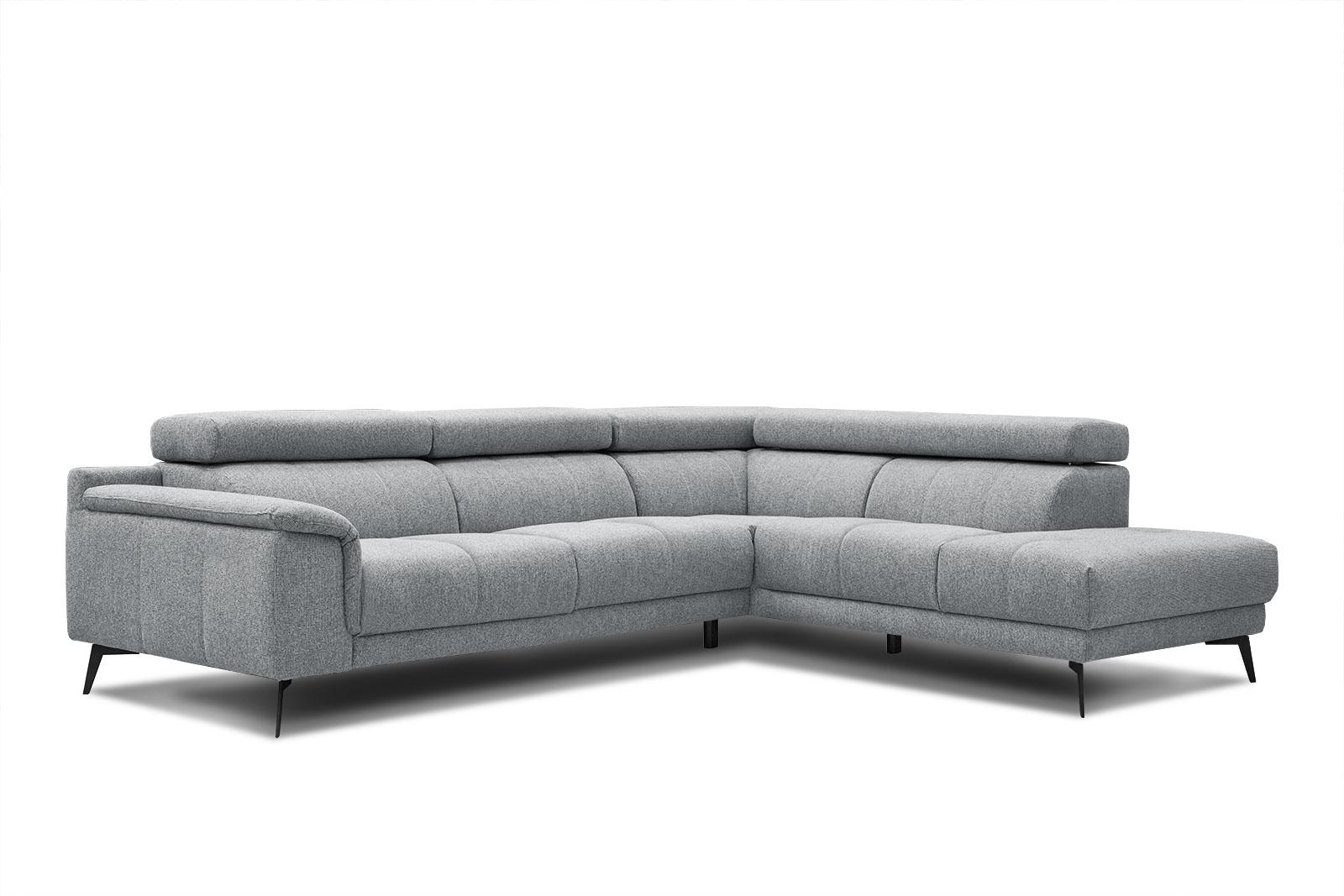 Canapé d'angle droit 5 places tissu gris clair - Fiero