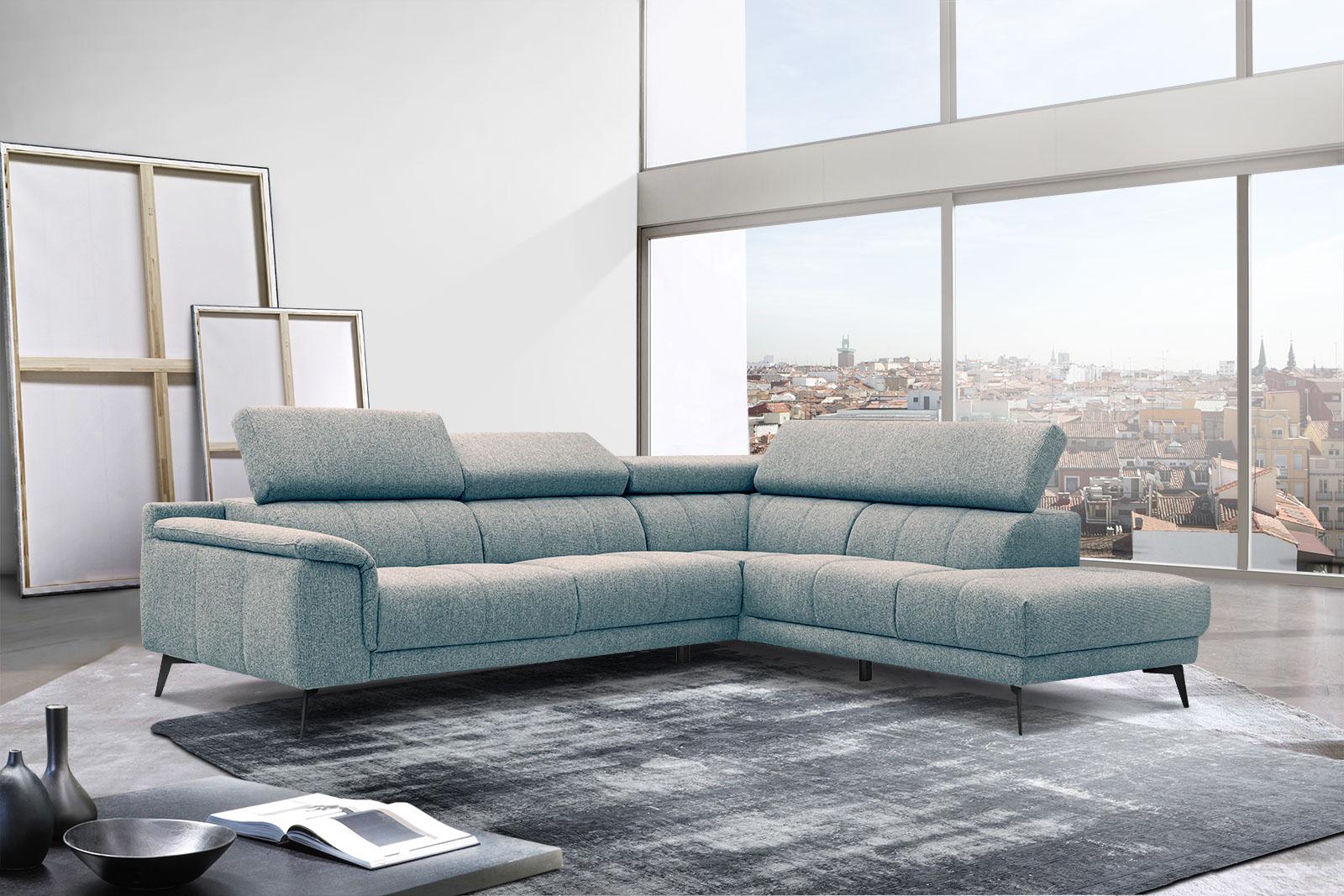 Canapé d'angle droit 5 places tissu vert marine - Fiero