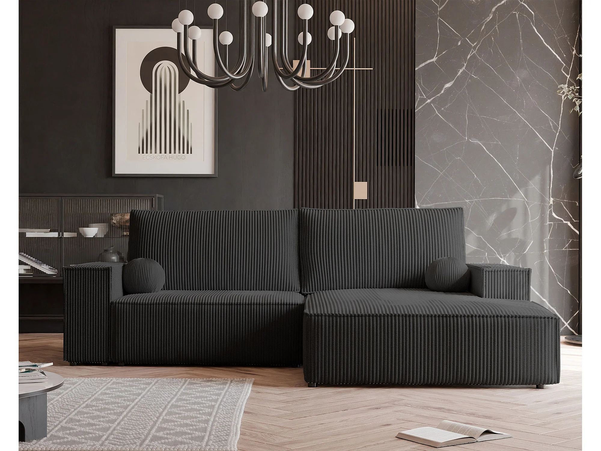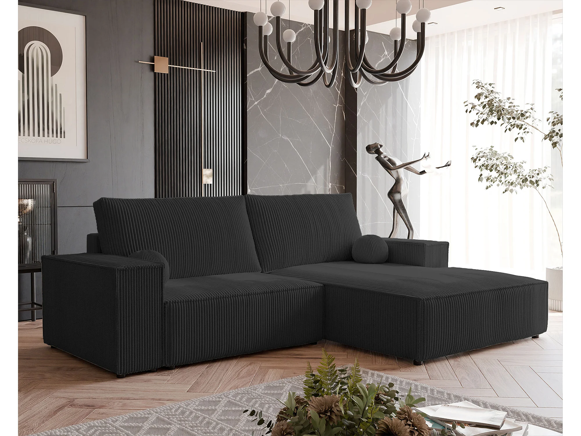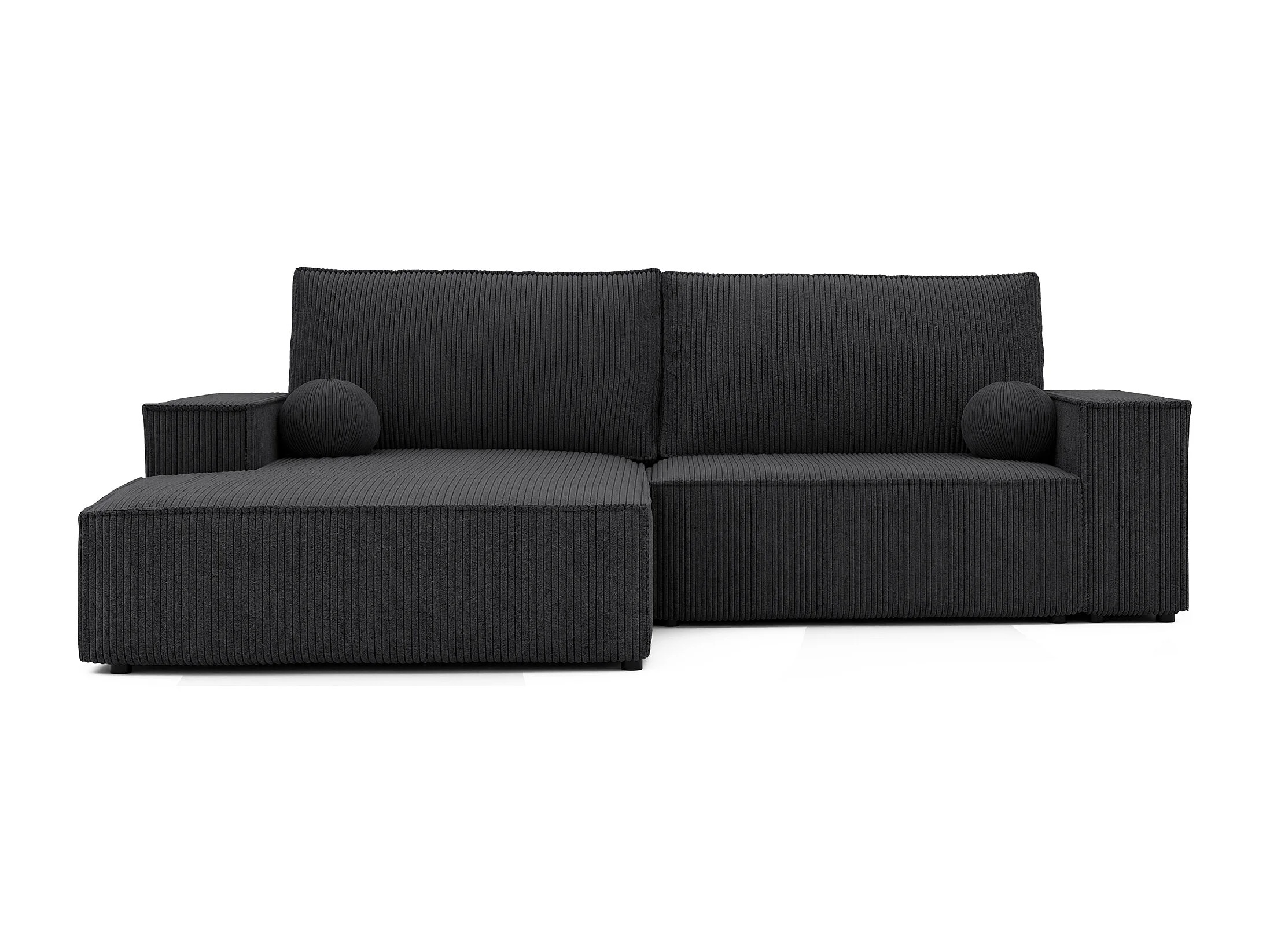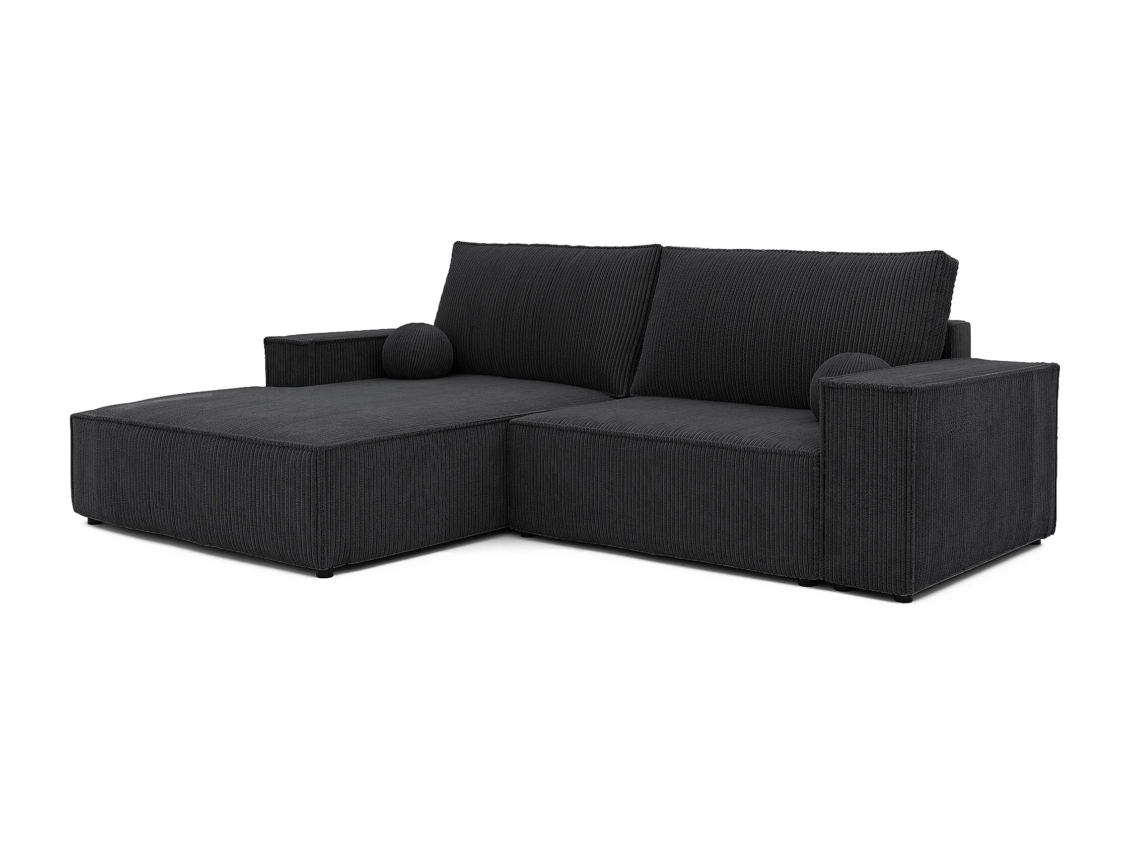 Canapé d'angle droit convertible en velours côtelé, noir