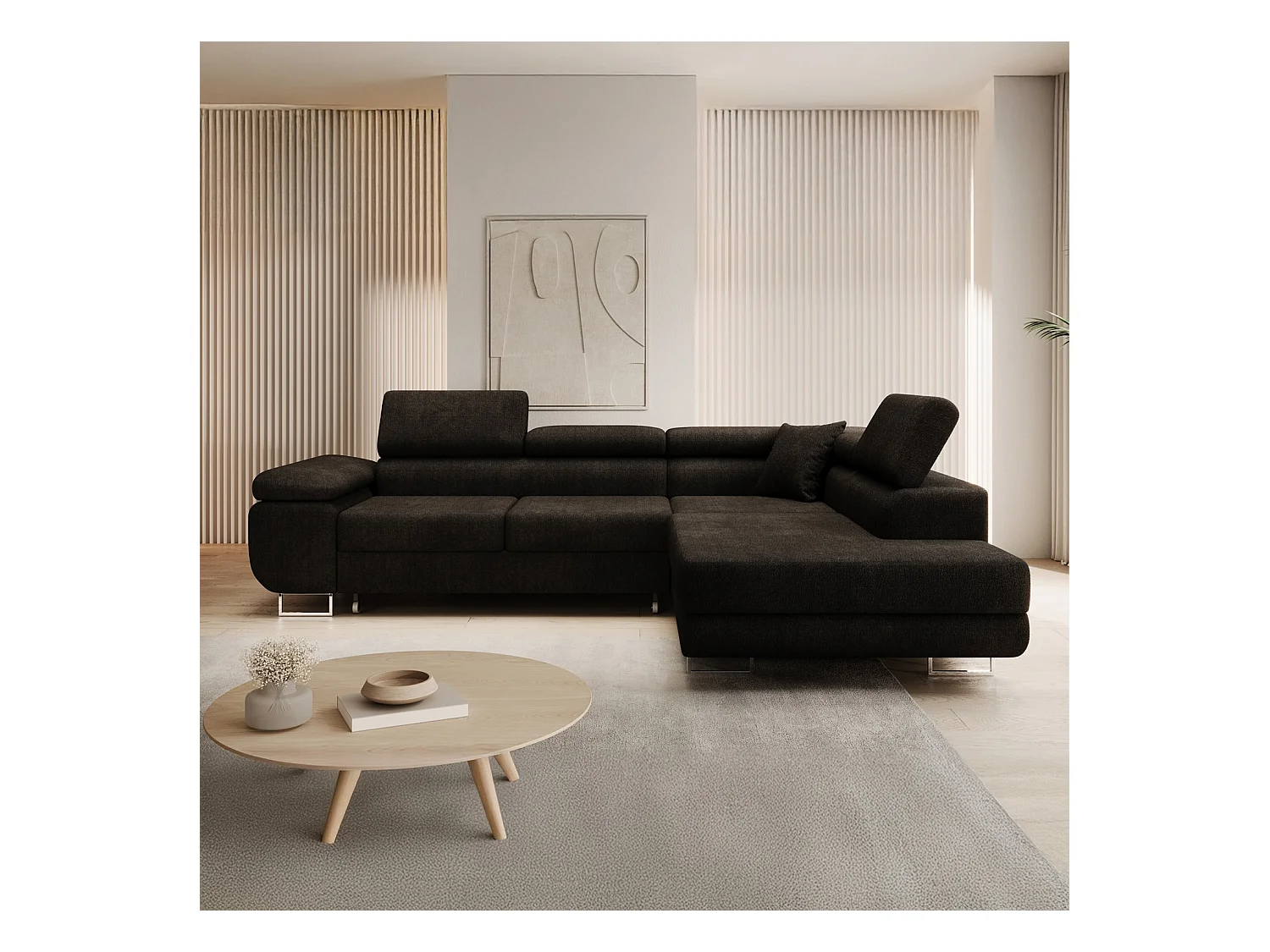 Canapé d'angle droit convertible Marius bouclette Noir