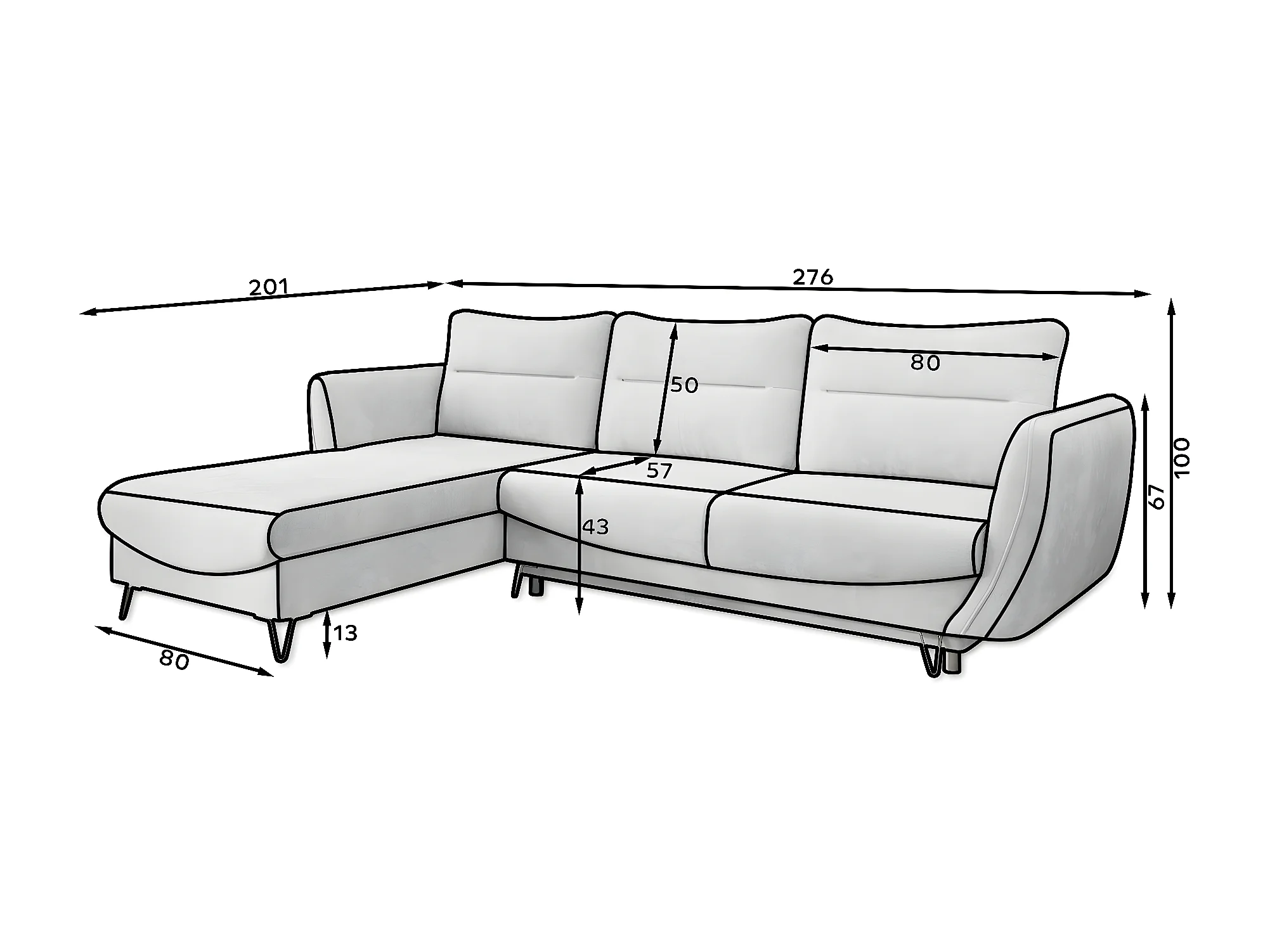Canapé d'angle droit convertible tissu vert épinard Zurik 276cm