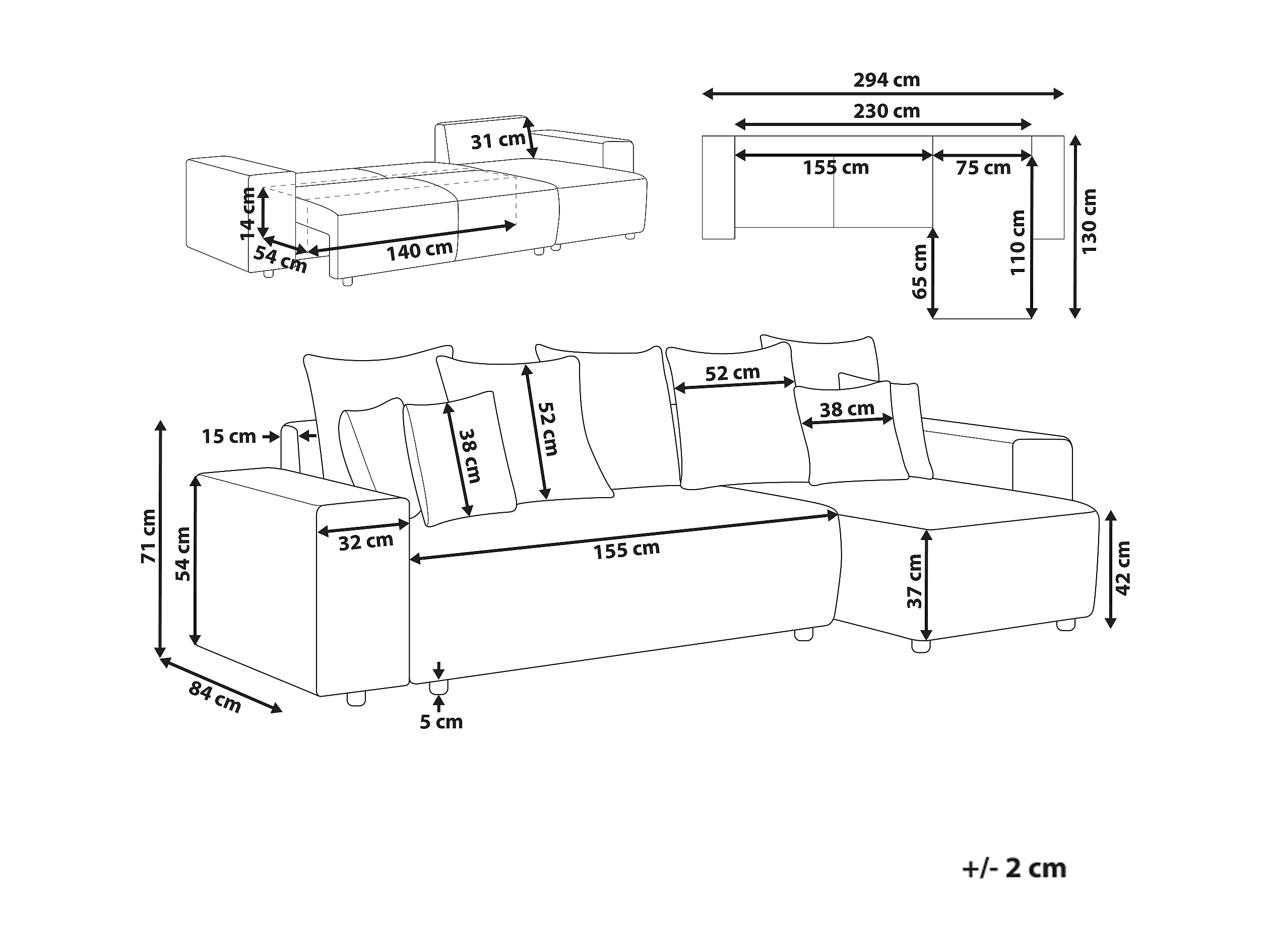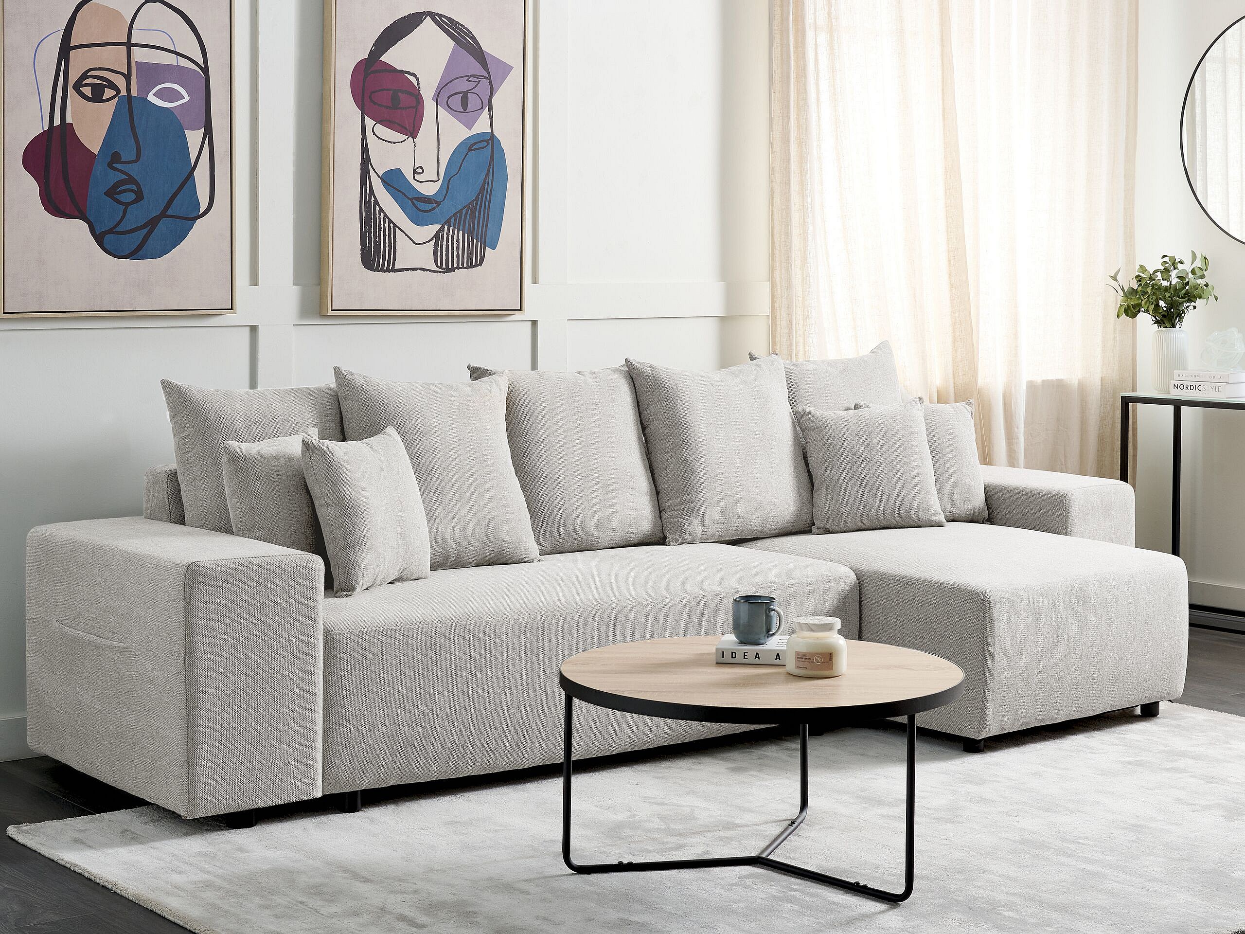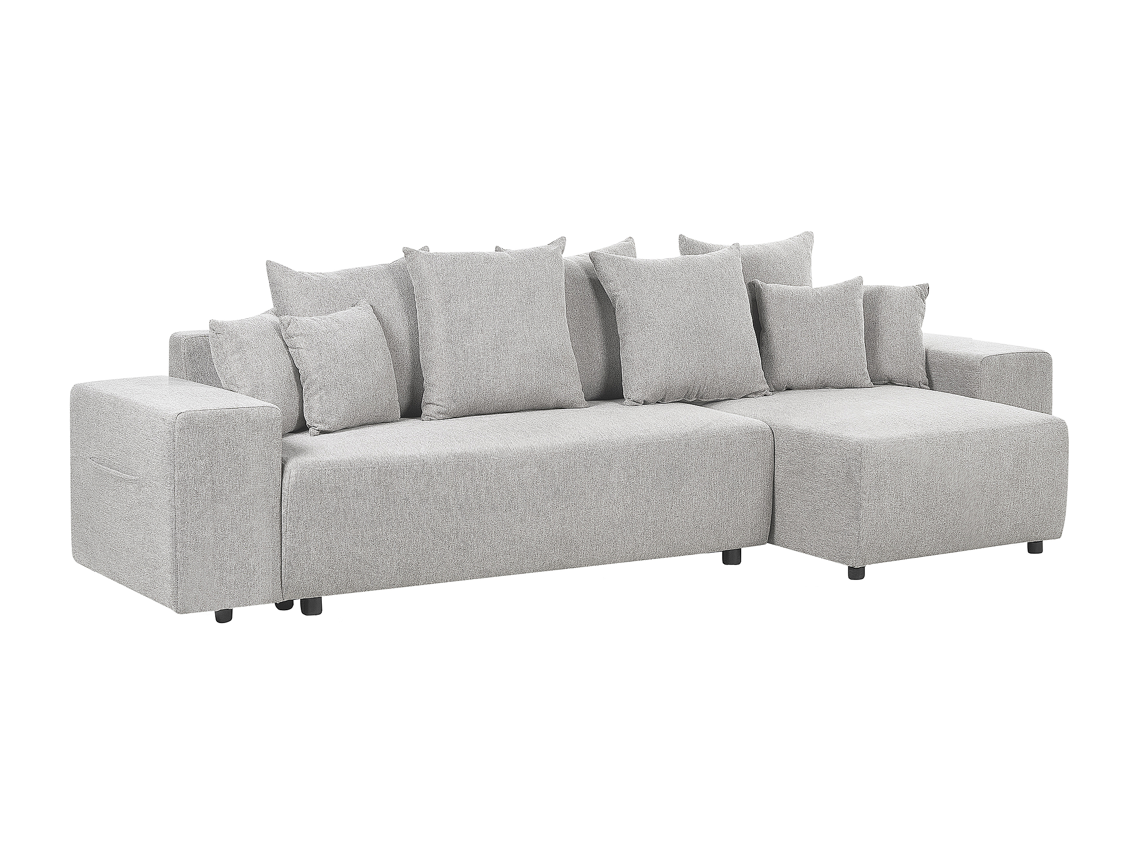 Canapé d'Angle droite Moderne avec Coussins et Rangement en Tissu Gris Clair Luspa