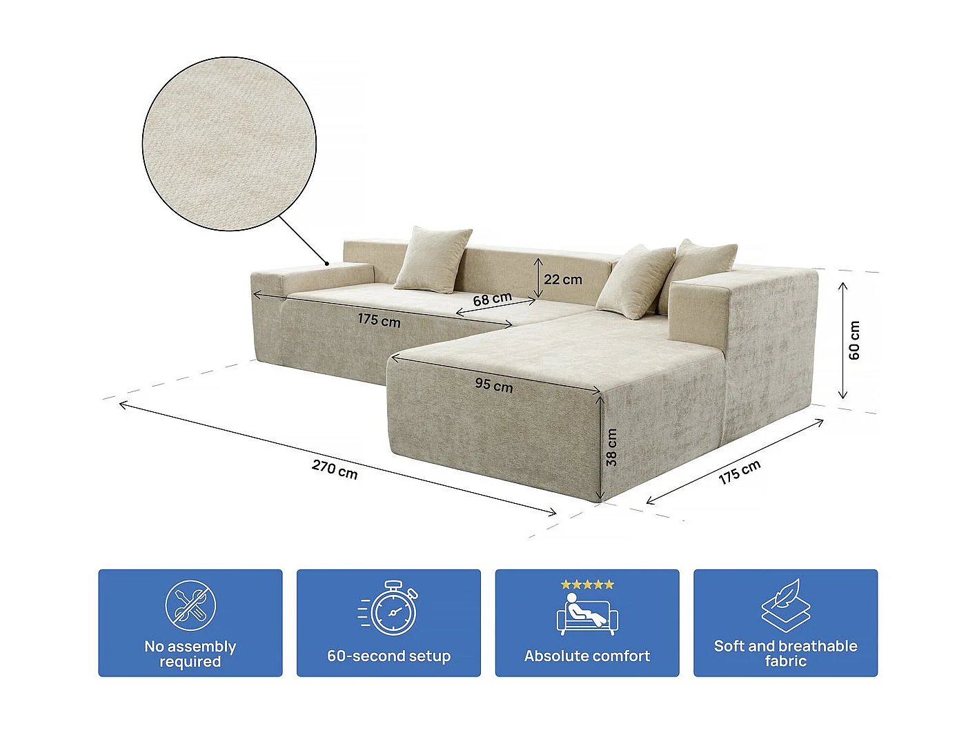 Canapé d'angle en tissu texturé "Tessaro" - 4 places - Beige