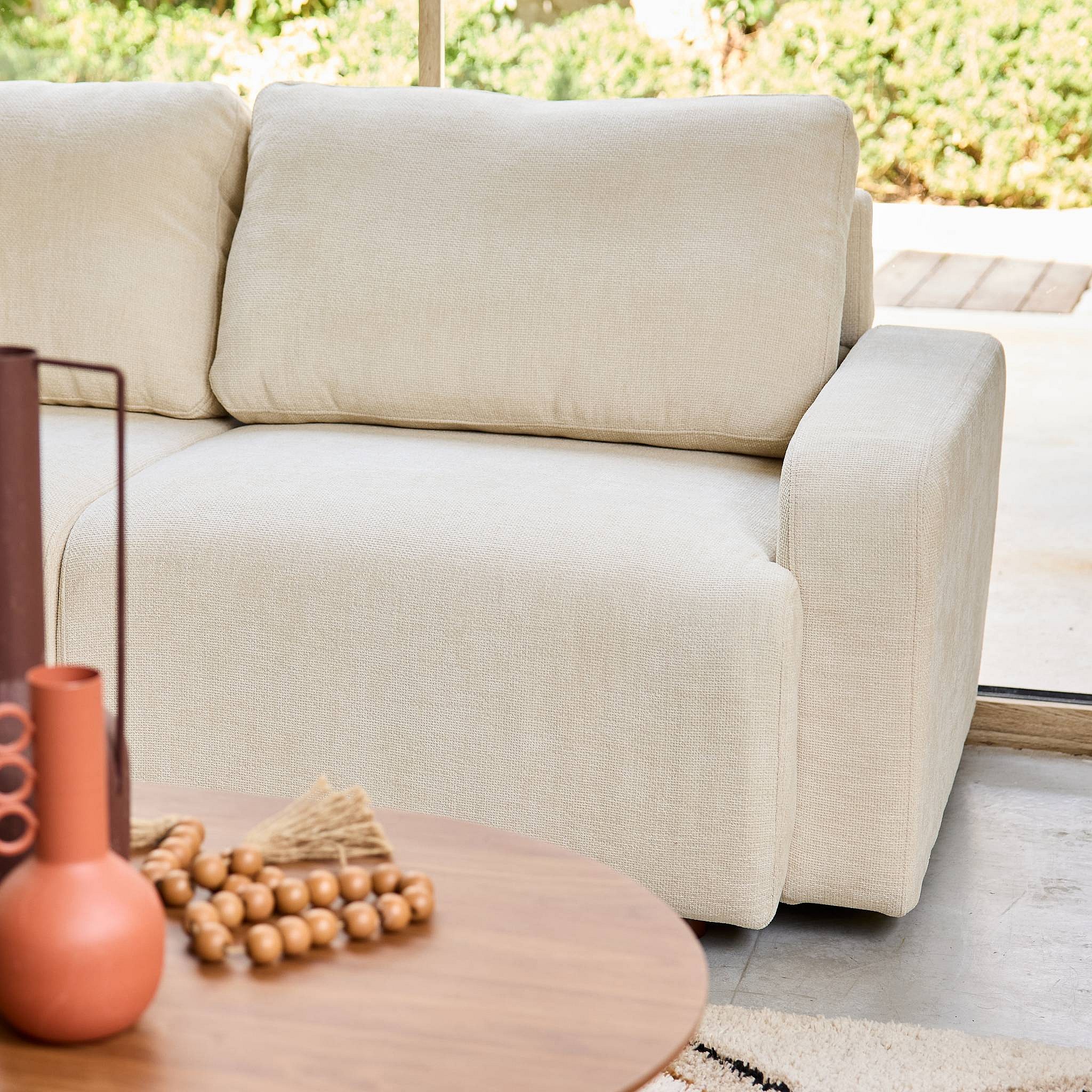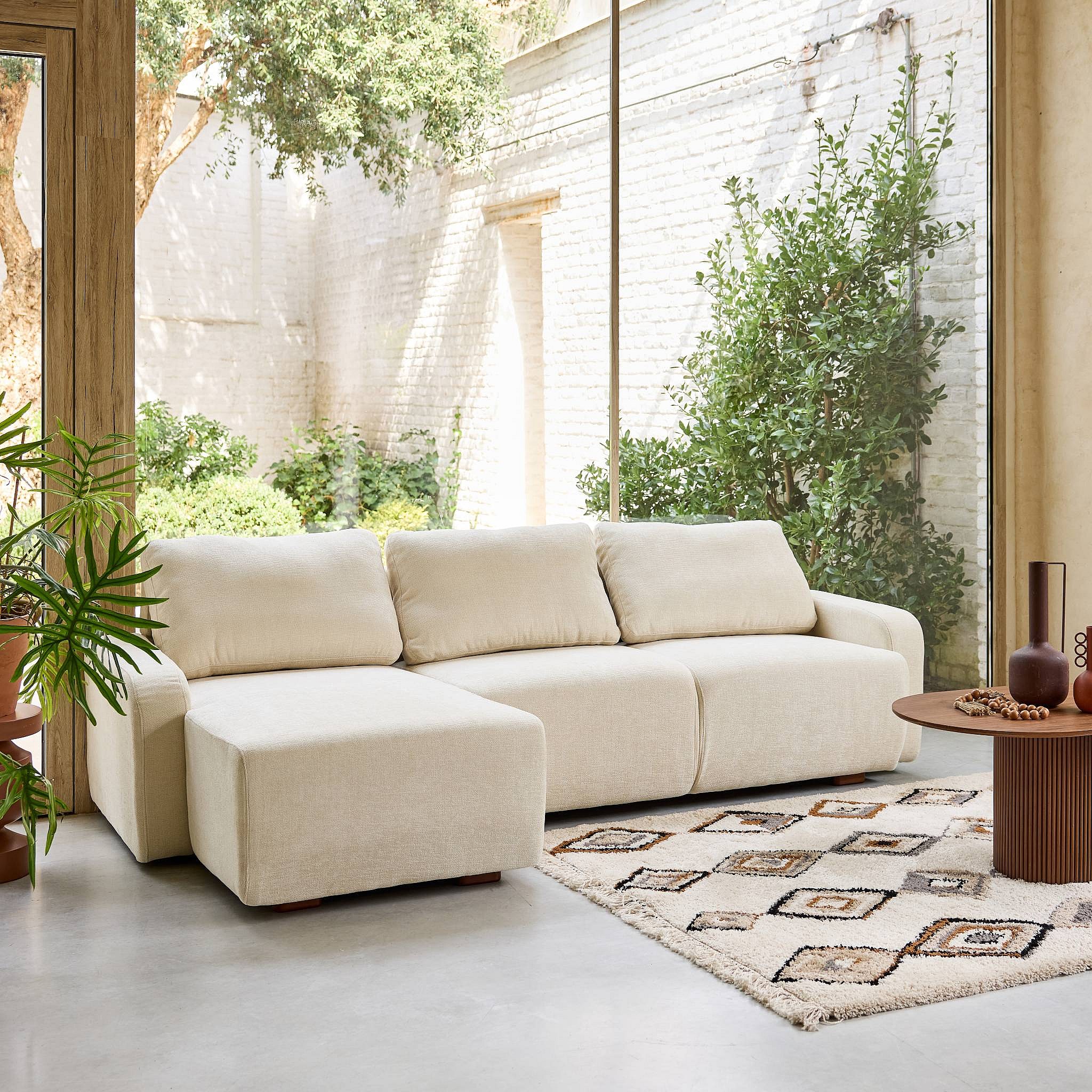 Canapé d'angle gauche 3 places tissu blanc cassé L 260 x P 88 / 139cm / x H 87cm - Dany