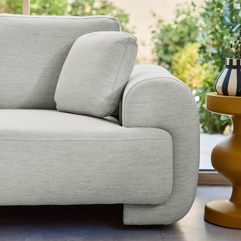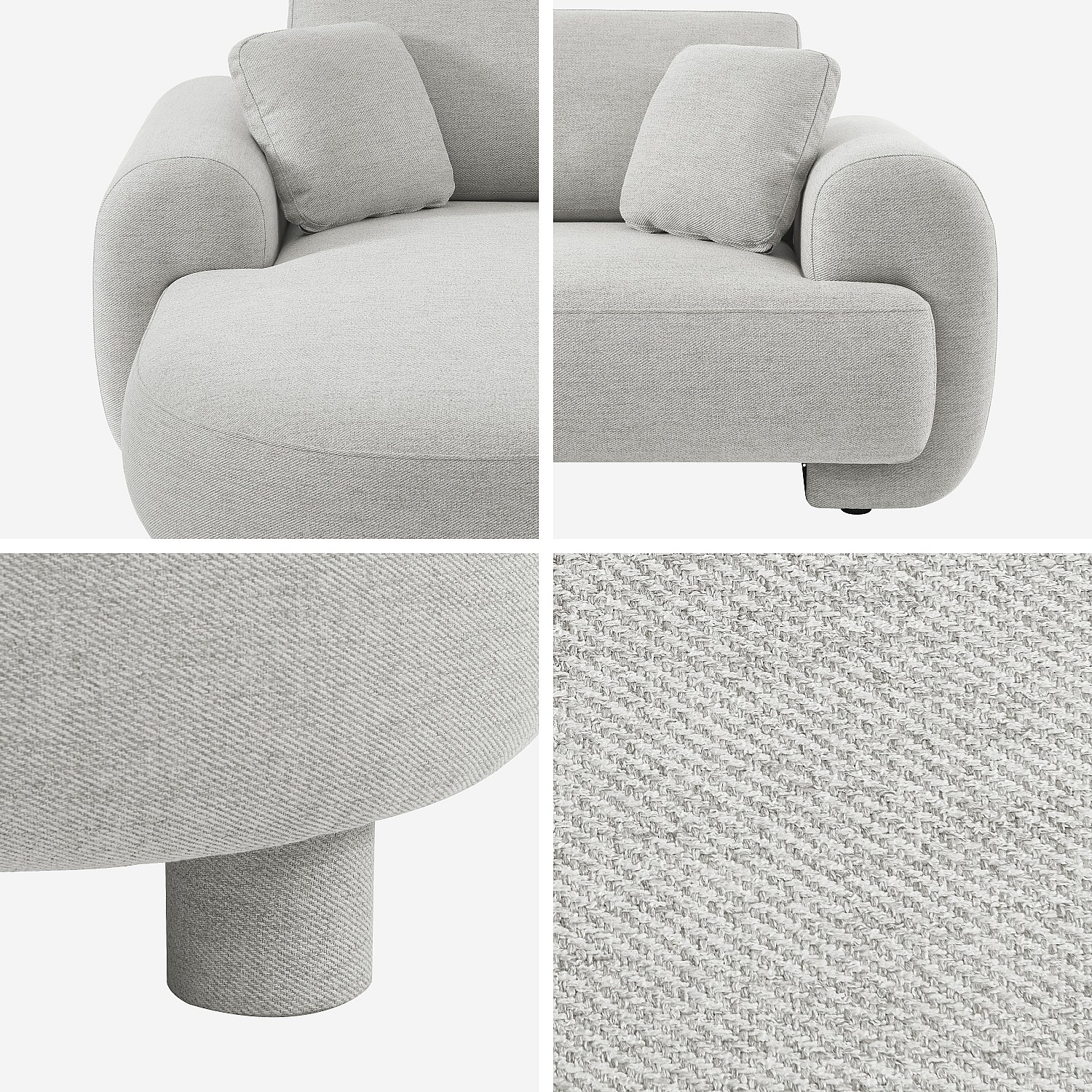 Canapé d'angle gauche 3 places tissu gris clair. pieds ronds L 231 x P 160 / 88 cm - Zenio