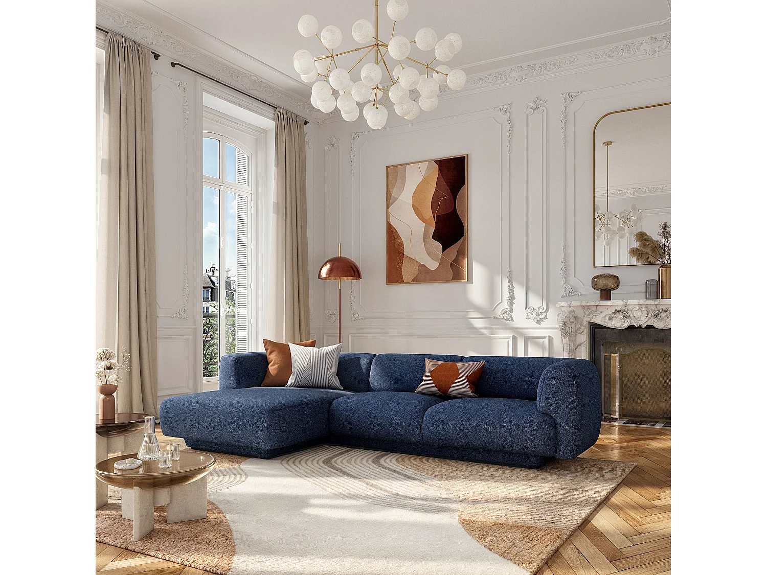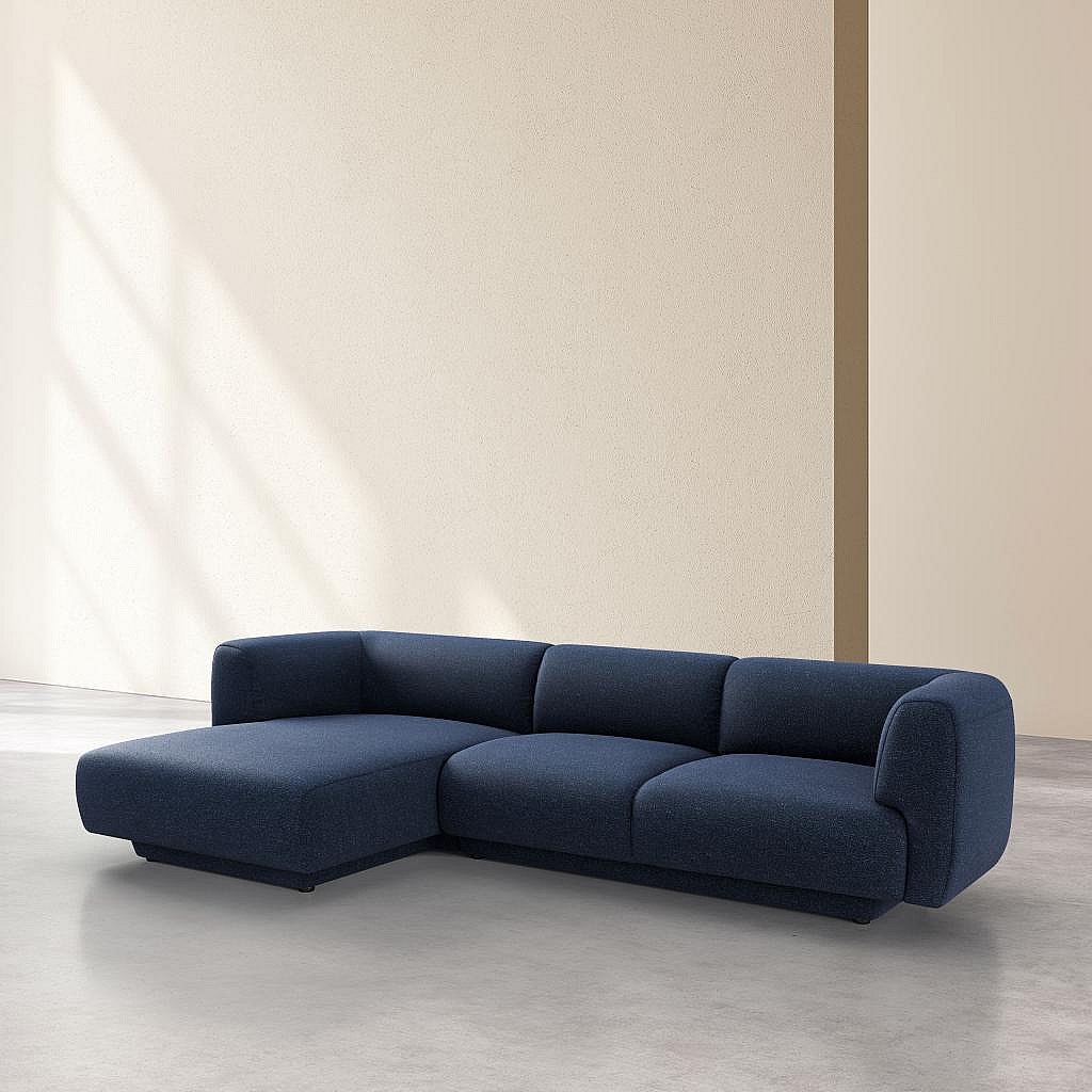 Habitat - Grand canapé d'angle gauche en tissu texturé - Bleu marine - Design by Federica Francini - Austin