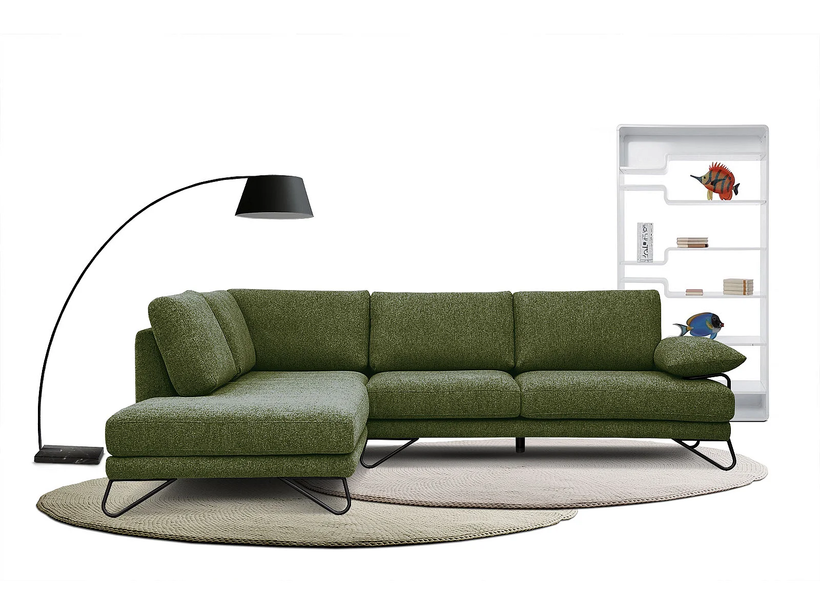 Canapé d'angle gauche 5 places tissu vert foncé - Lori