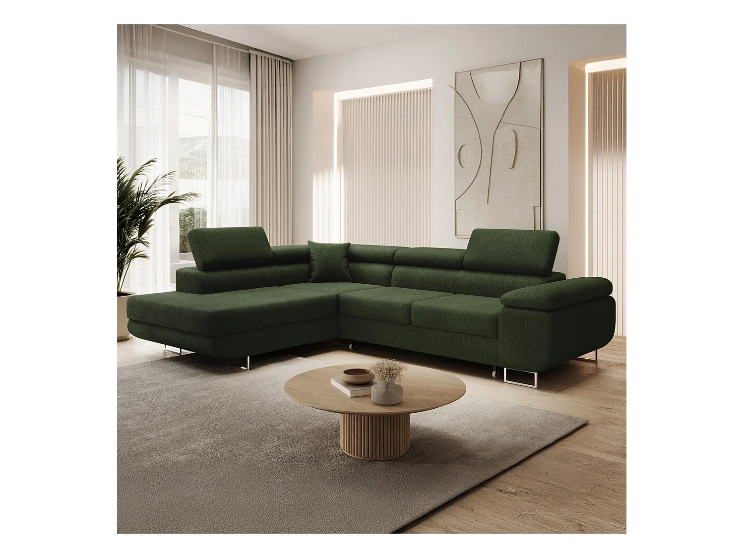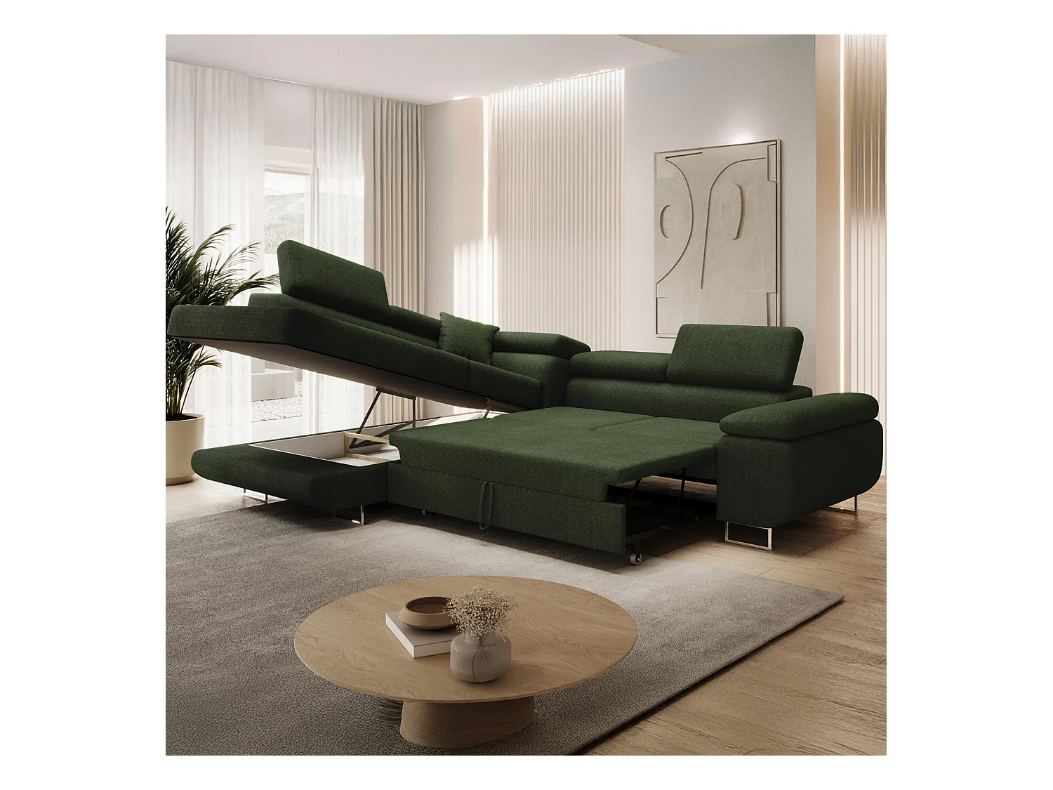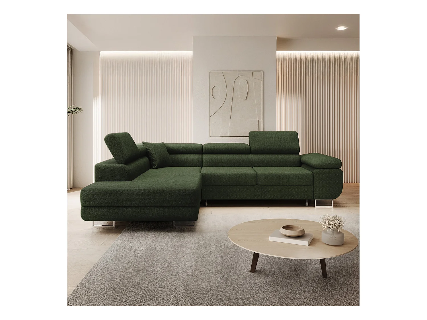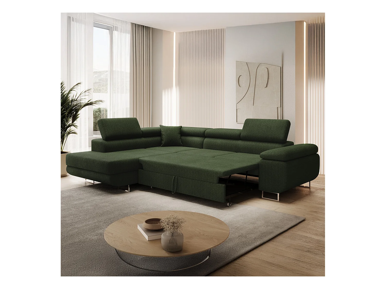 Canapé d'angle gauche convertible Marius bouclette Kaki