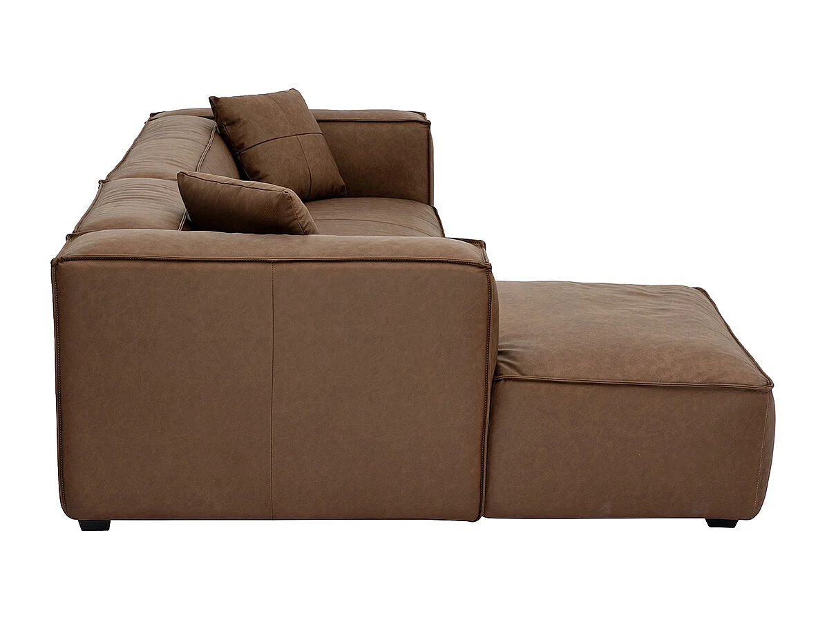 Canapé d'angle gauche vintage 4-5 places en cuir marron et bois noir COBAIN