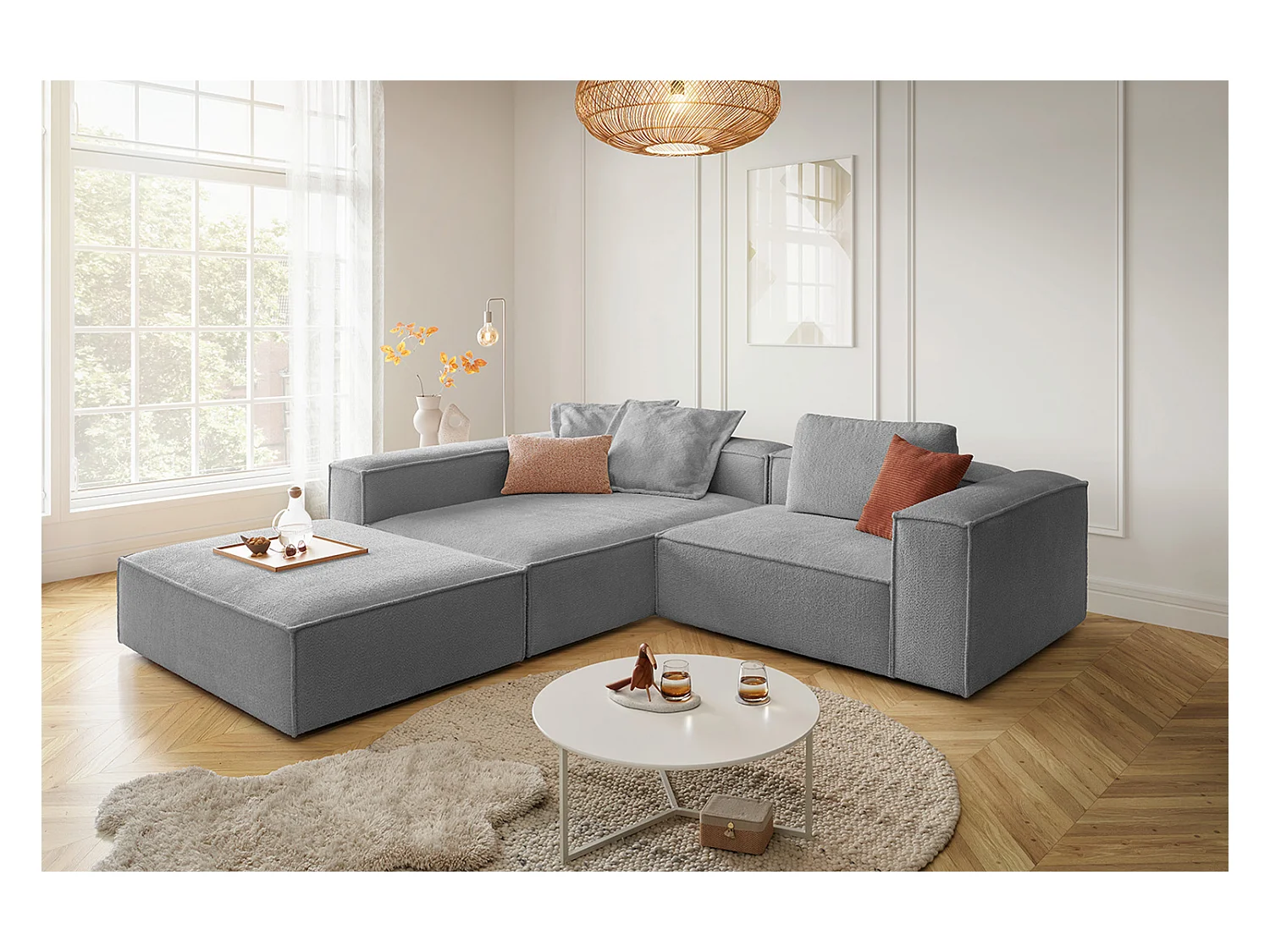 Canapé d'angle gauche 3 places tissu gris clair L 260 x P 88 / 139cm / x H 87cm - Dany