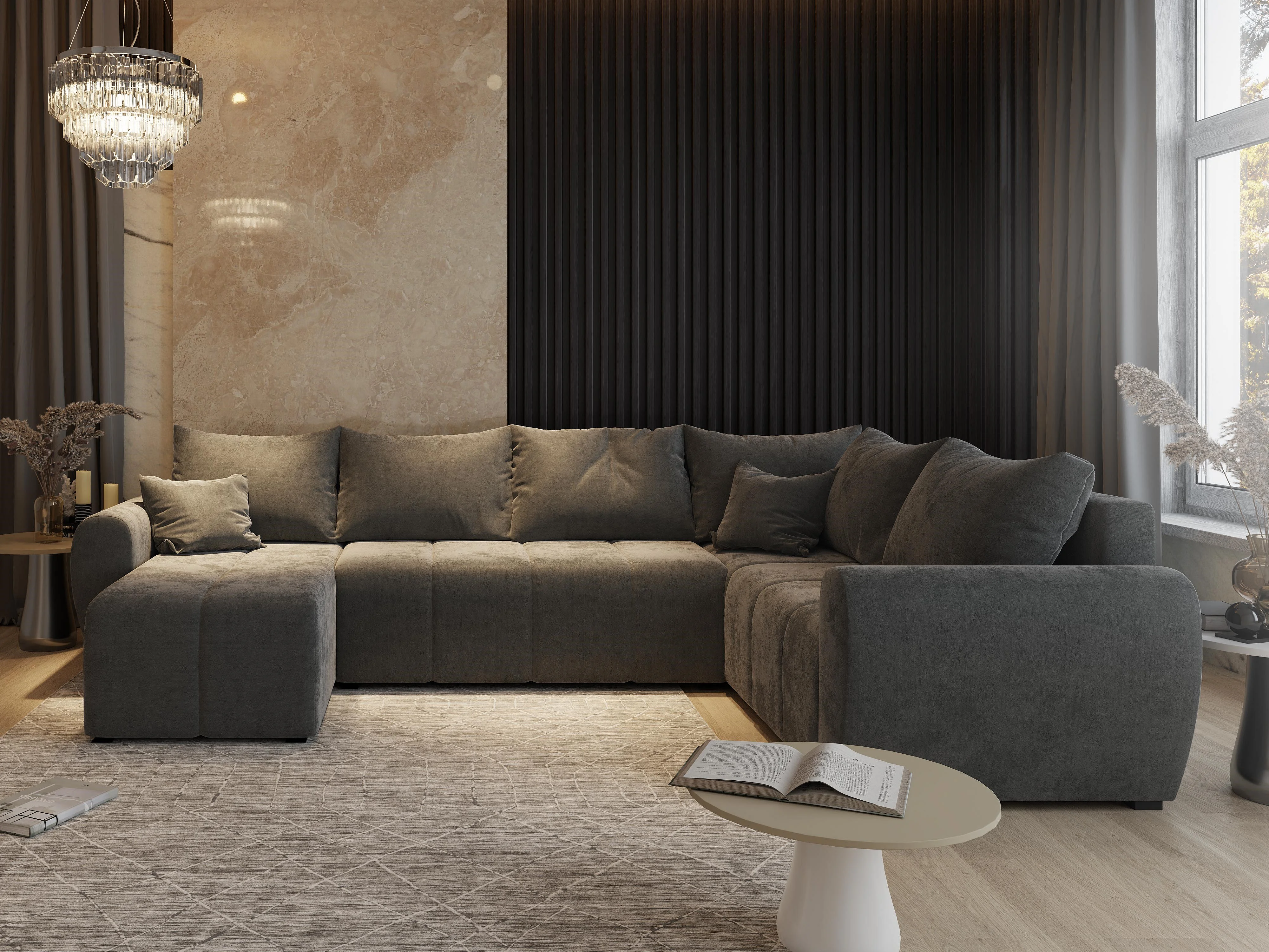 Canapé d'angle MADISON Noir en tissu texturé avec fonction de couchage