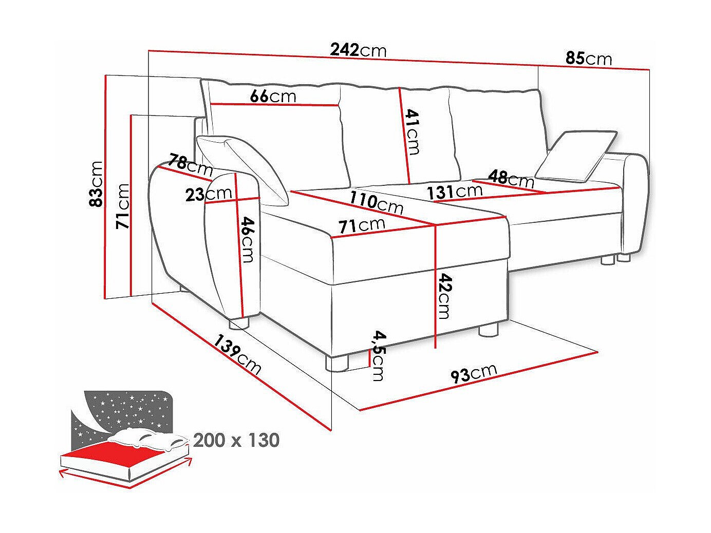 Canapé d'angle Memphis 123, Brun clair, Fonction de couchage, Boîte de literie, 242x139cm