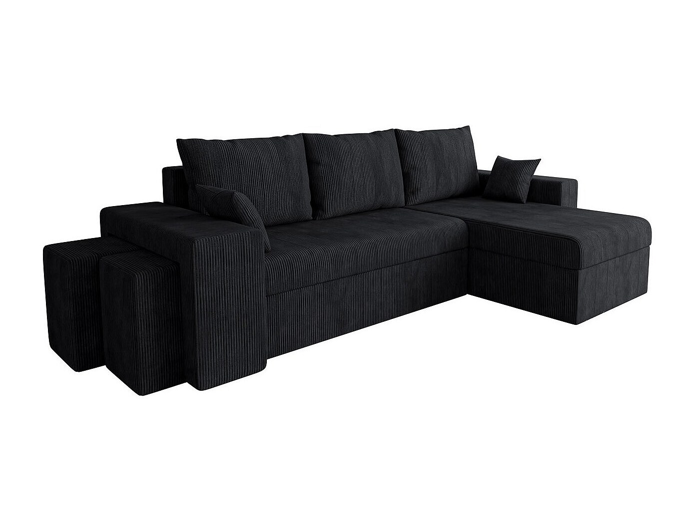 Canapé d'angle Memphis 138, Noir, Fonction de couchage, Boîte de literie, 256x139x80cm