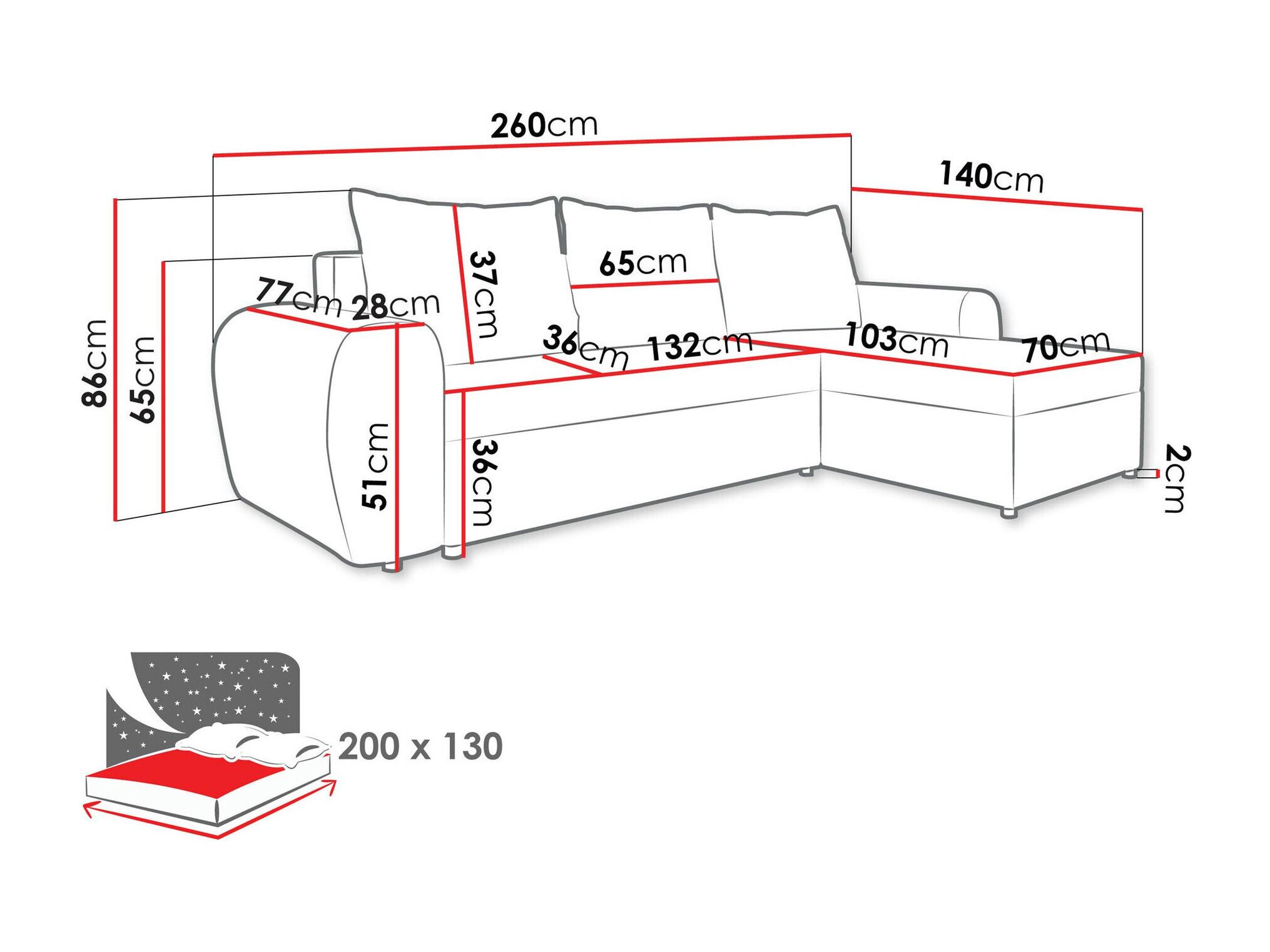 Canapé d'angle Memphis 148, Bleu, Fonction de couchage, Boîte de literie, 260x140x86cm