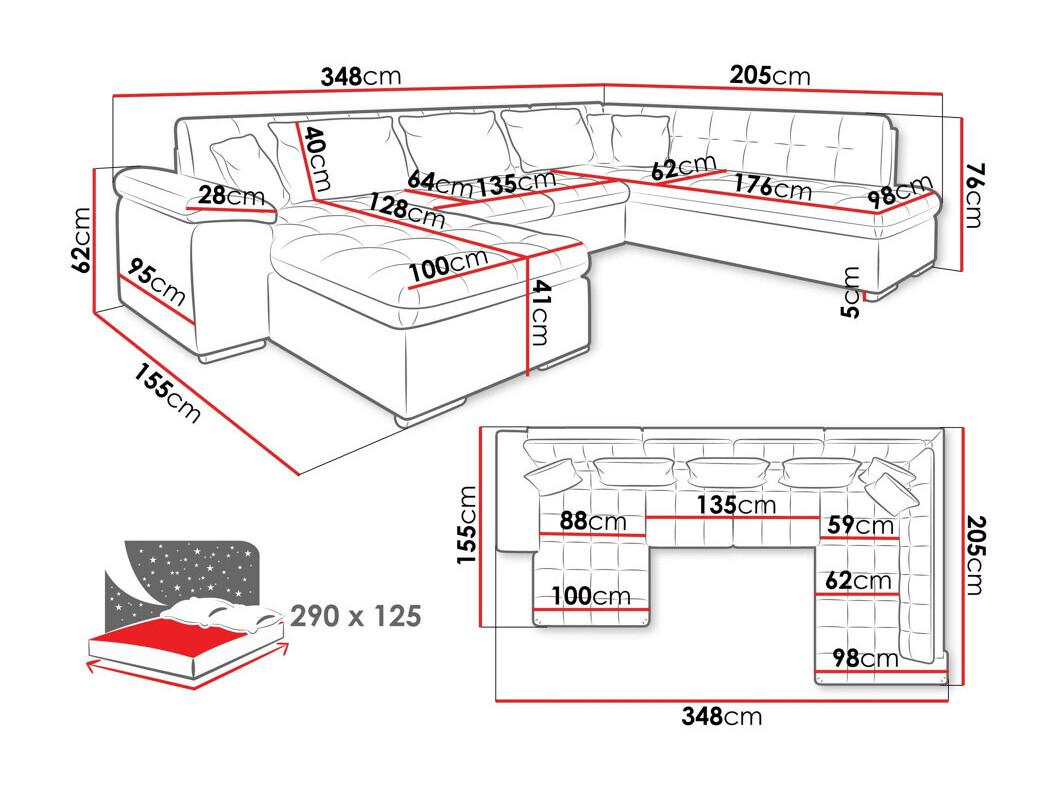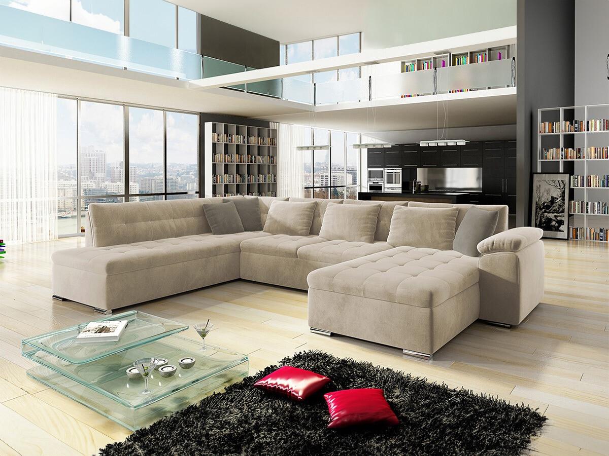 Canapé d'angle Comfivo 128, Brun clair, Fonction de couchage, 348x205x76cm
