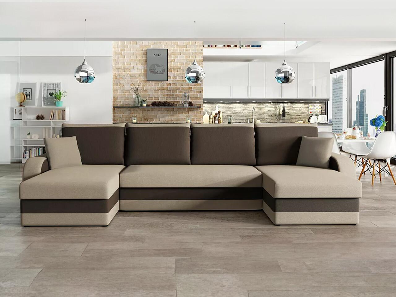 Canapé d'angle Comfivo 233, Brun clair, Fonction de couchage, Boîte de literie, 304x140cm