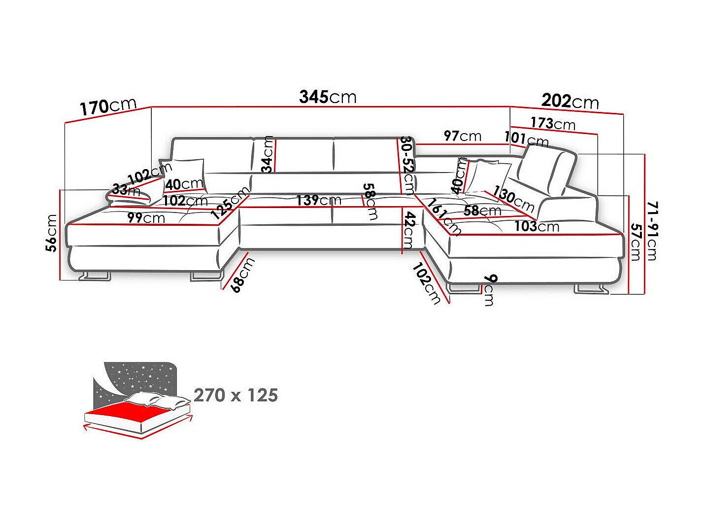 Canapé d'angle Comfivo 138, Marron, Fonction de couchage, Boîte de literie, 345x202x71cm