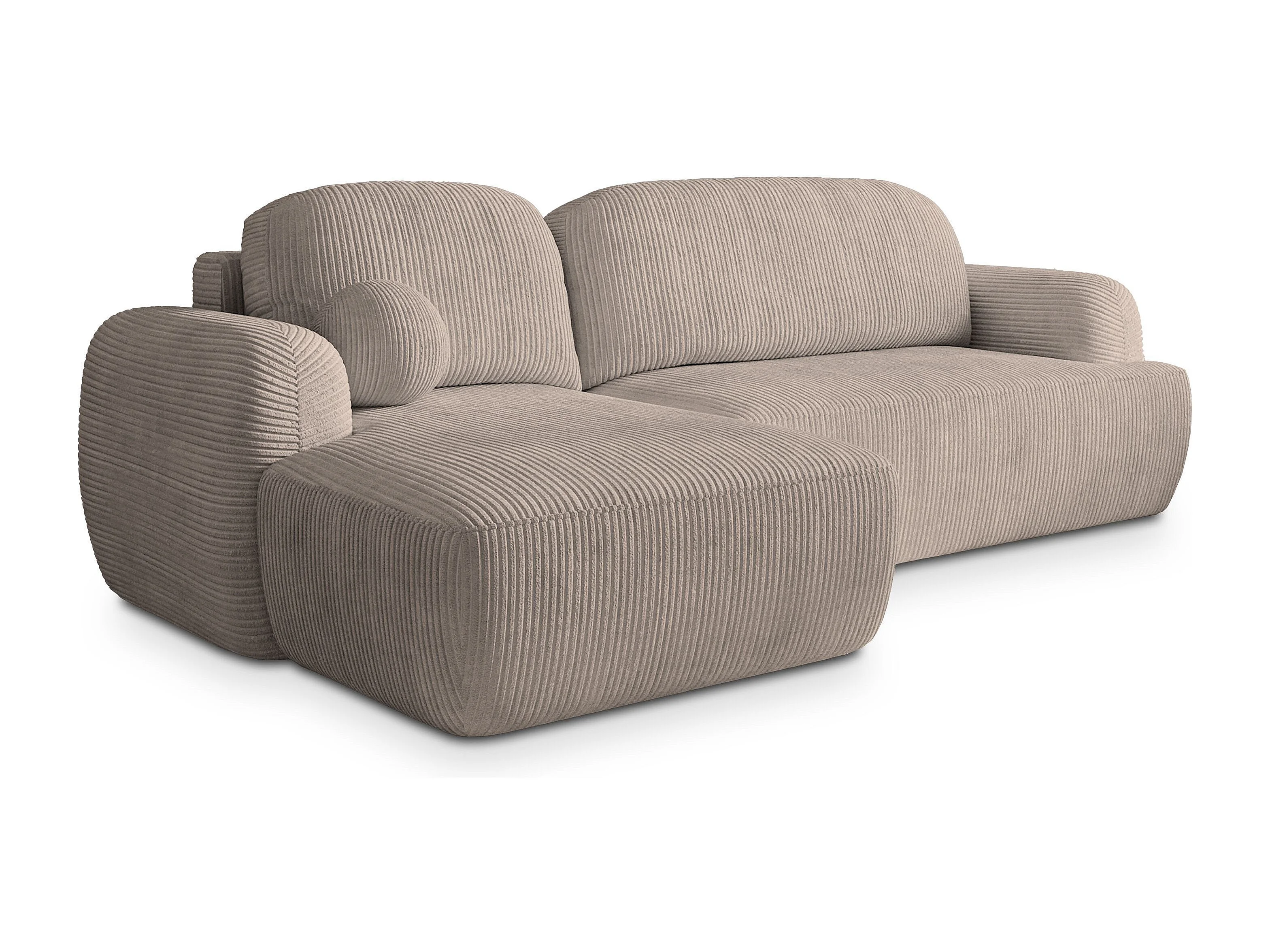 Canapé d'angle MODENZA Beige en velours côtelé avec fonction de couchage