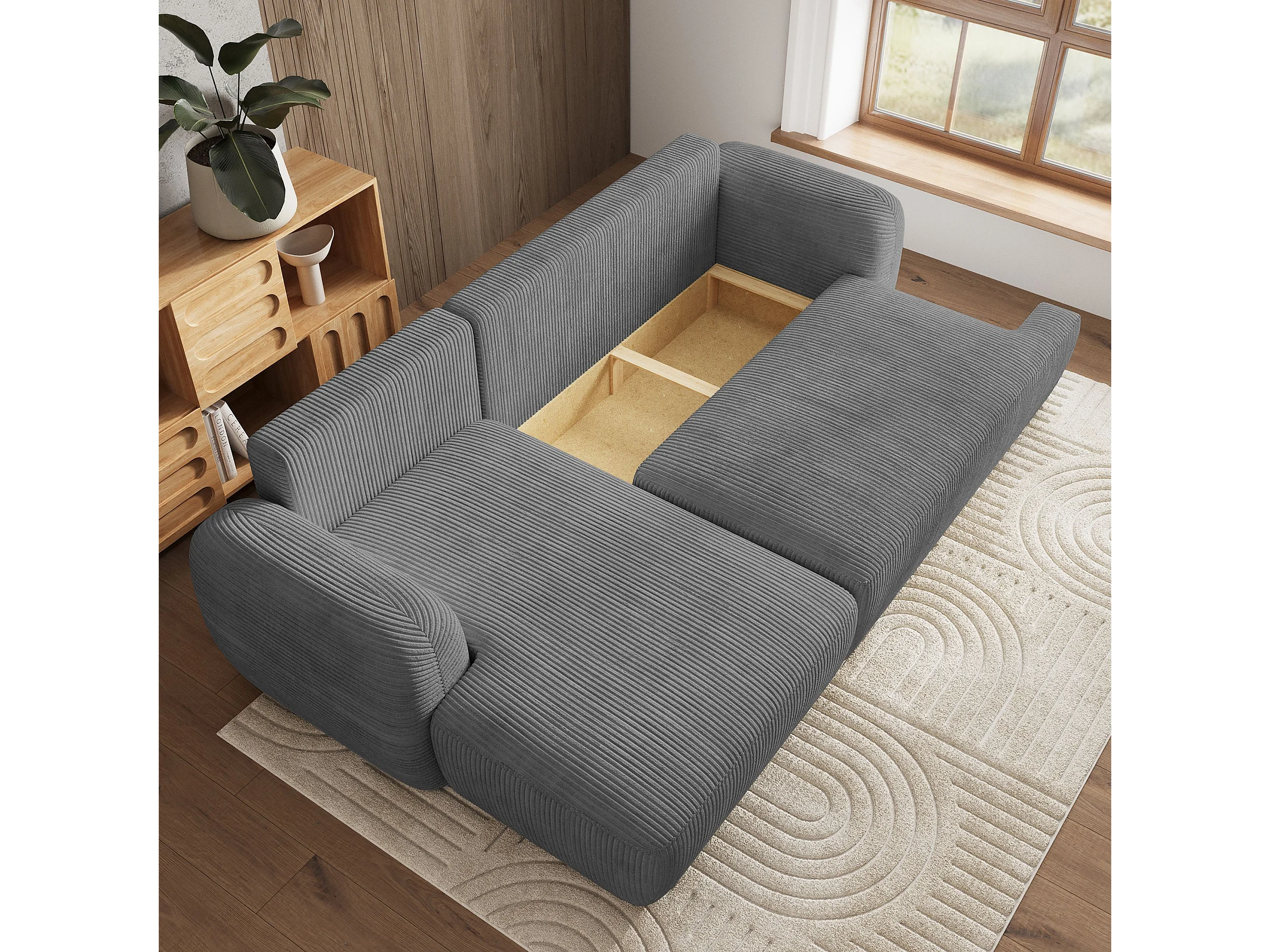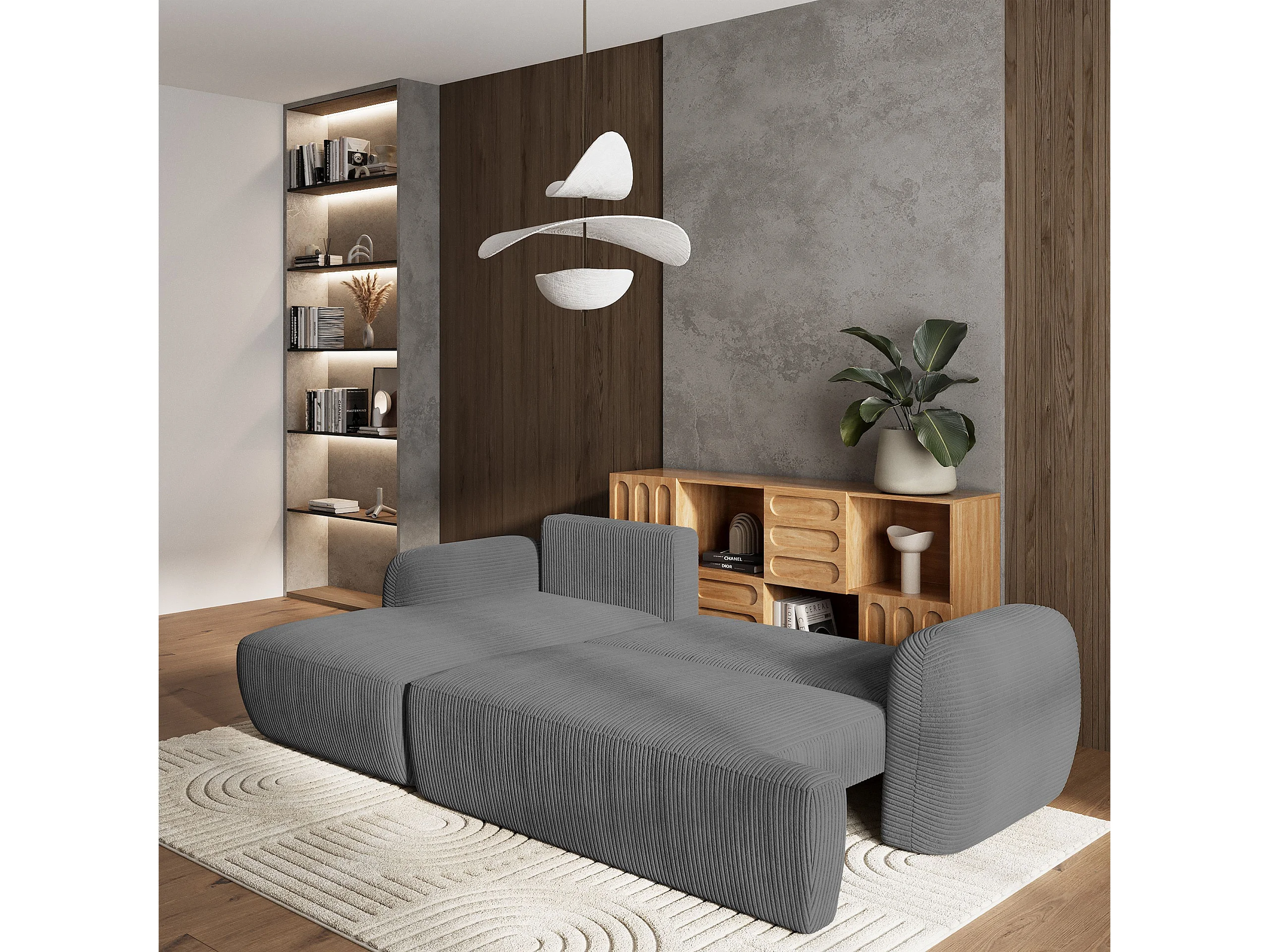 Canapé d'angle MODENZA Gris en velours côtelé avec fonction de couchage