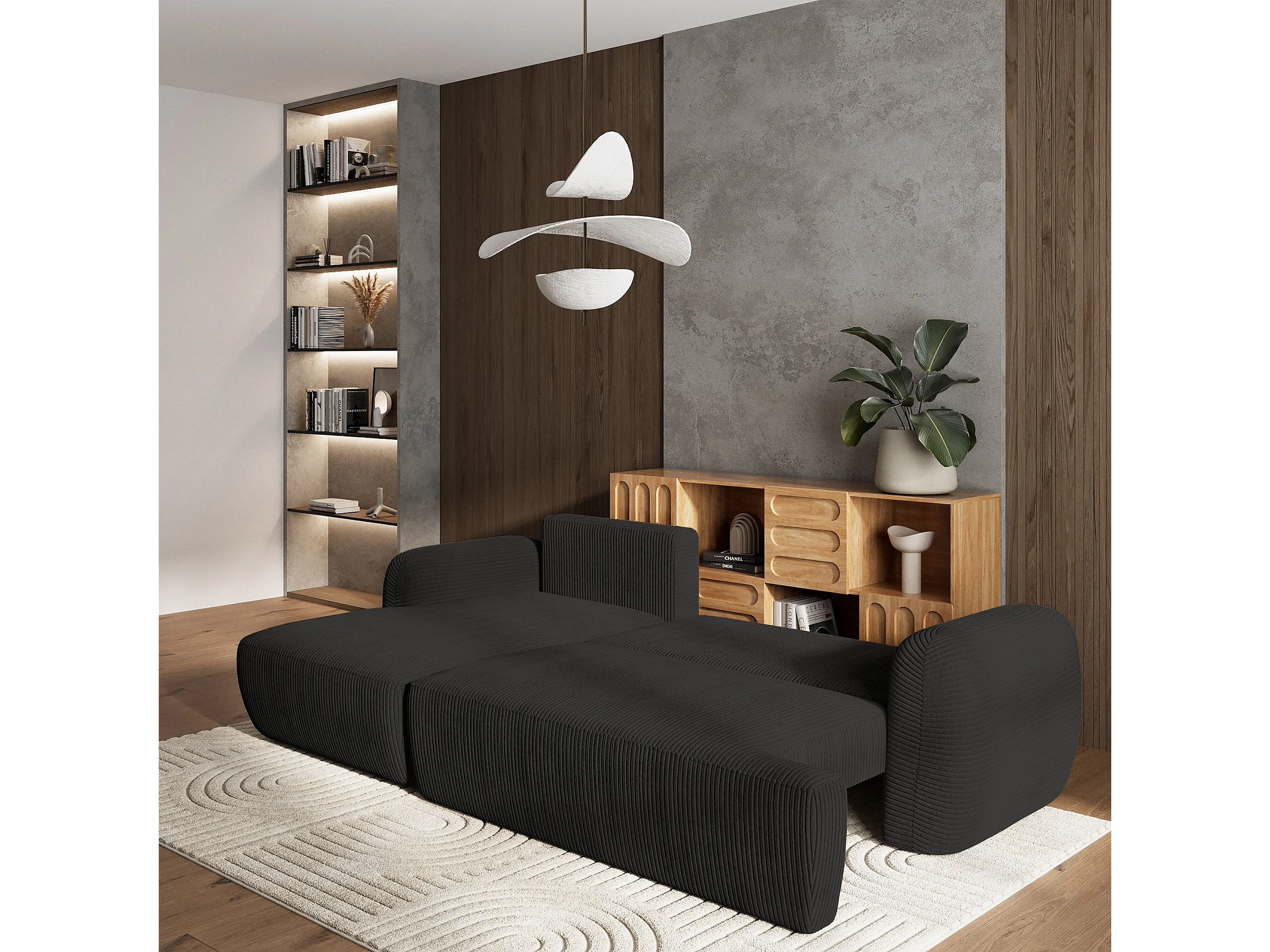 Canapé d'angle MODENZA Noir en velours côtelé avec fonction de couchage