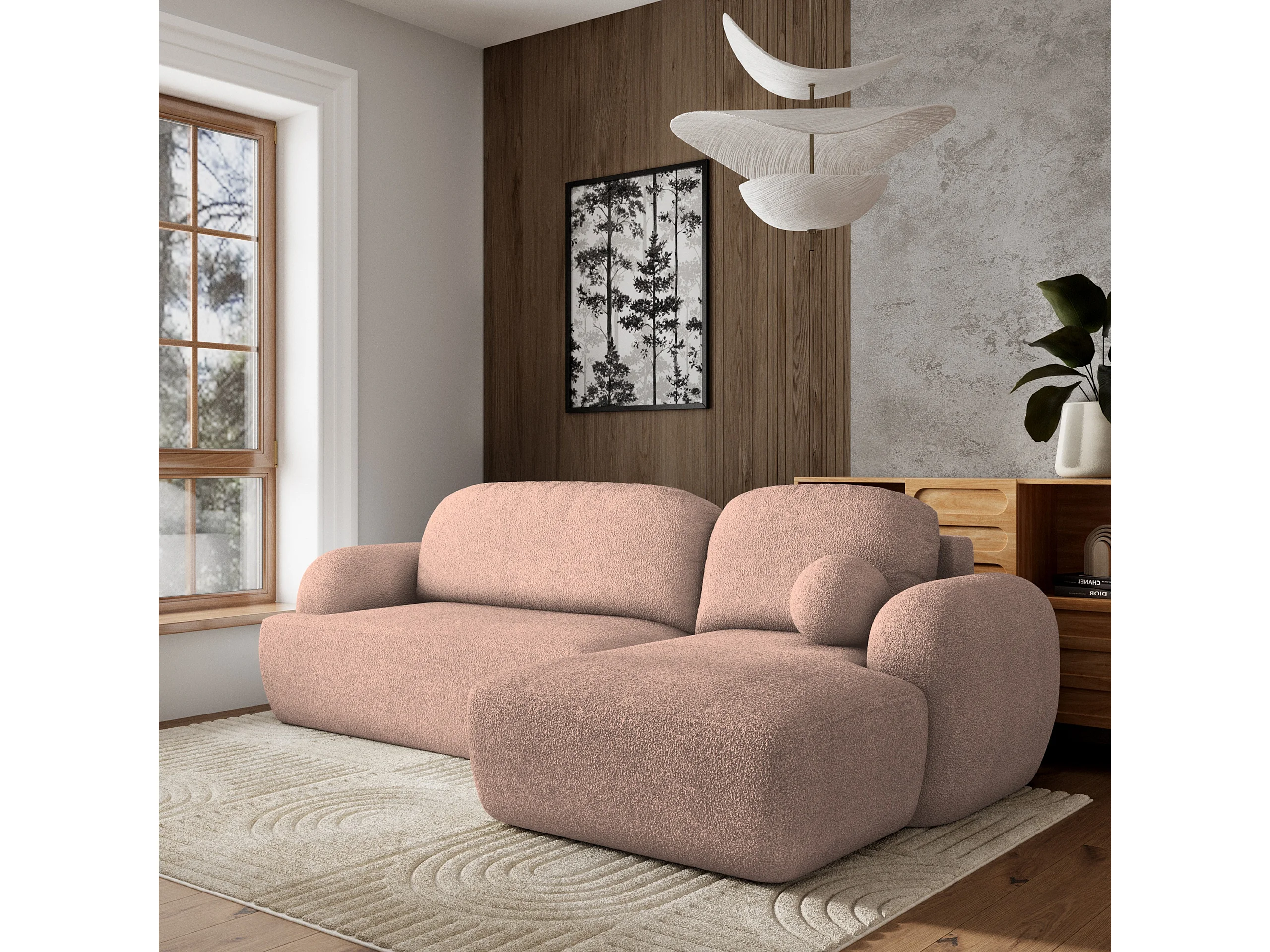 Canapé d'angle MODENZA Rose poudré en bouclé avec fonction de couchage