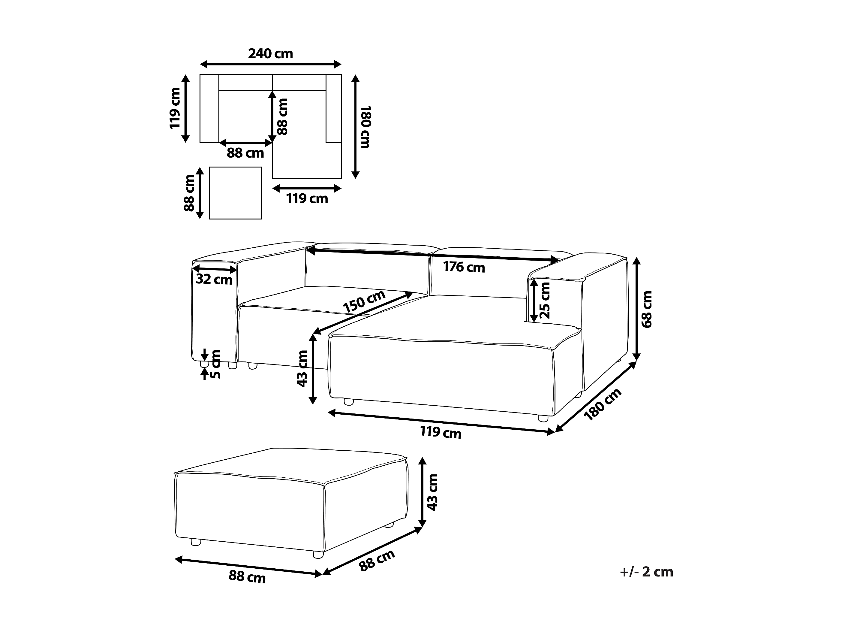 Canapé d'angle modulable 3 places ARDAL Velours côtelé Blanc cassé Côté droite