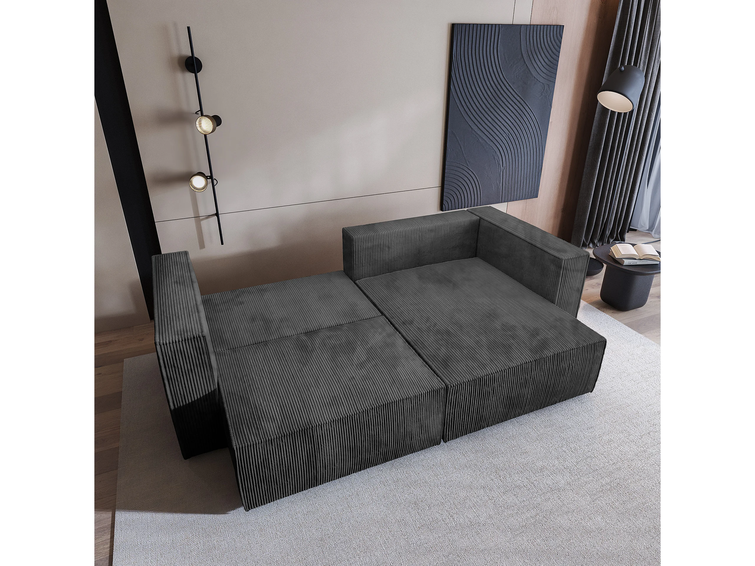 Canapé d'angle NERIO Gris anthracite en velours côtelé avec fonction de couchage