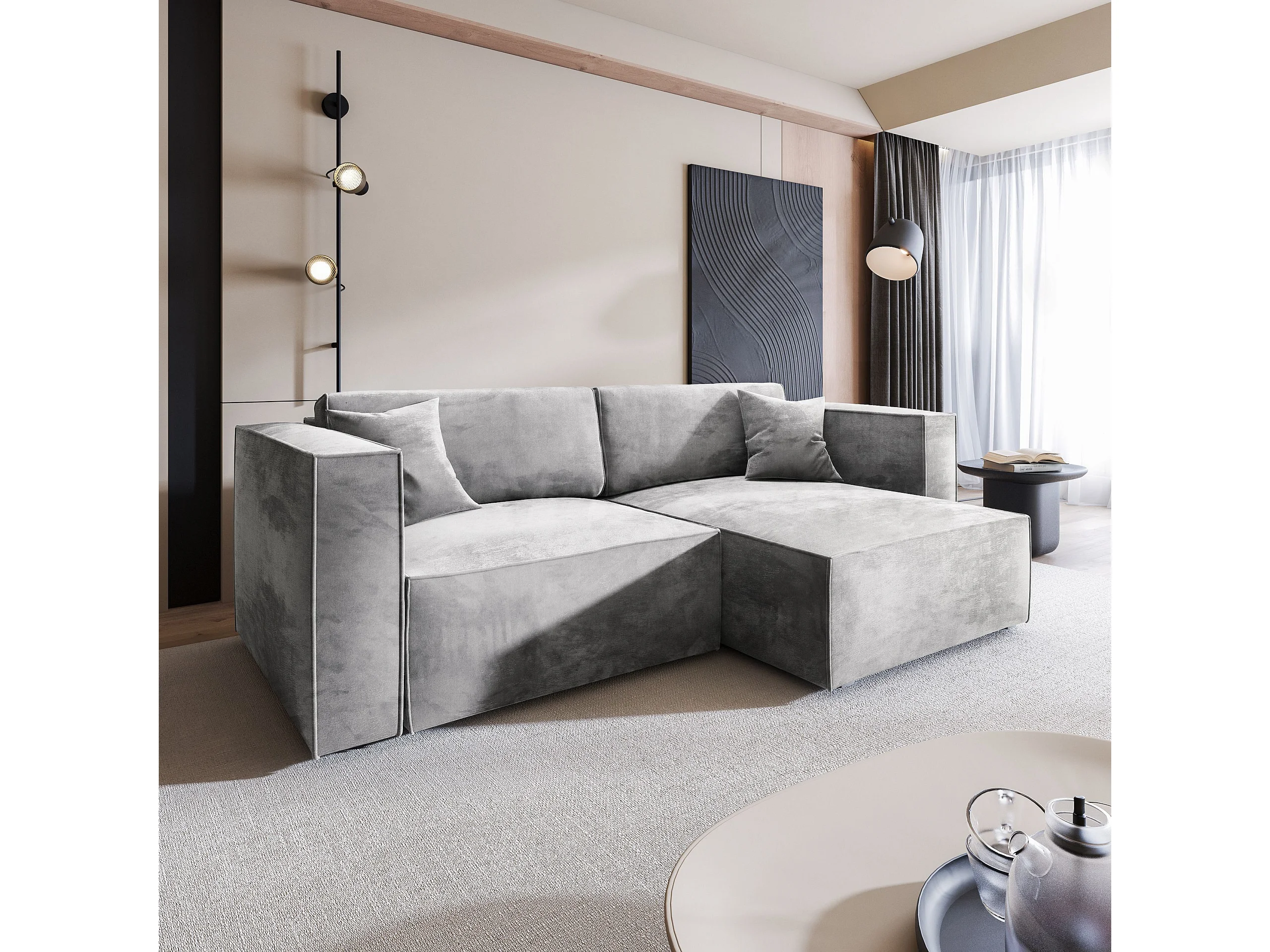 Canapé d'angle NERIO Gris clair en velours avec fonction de couchage