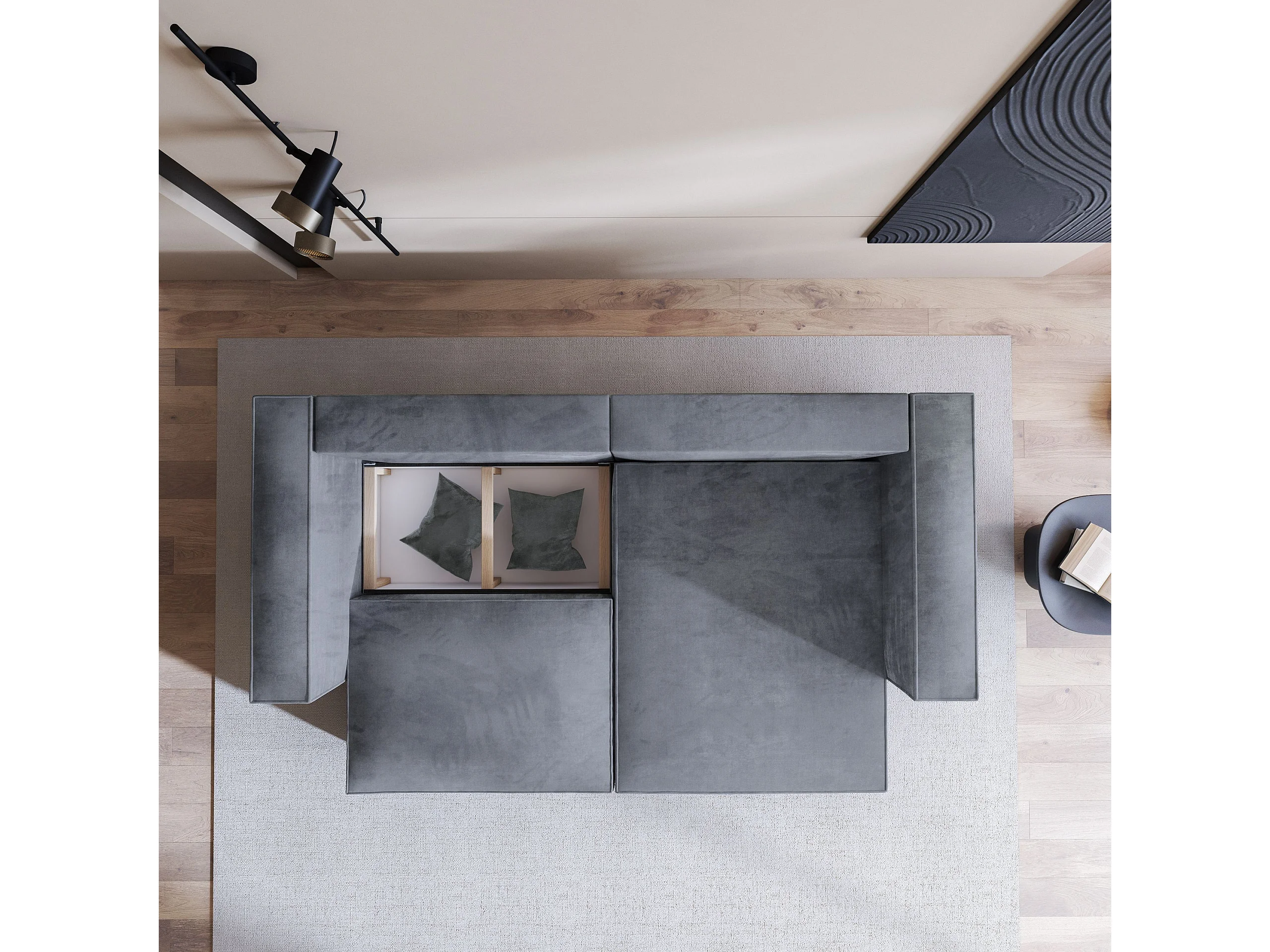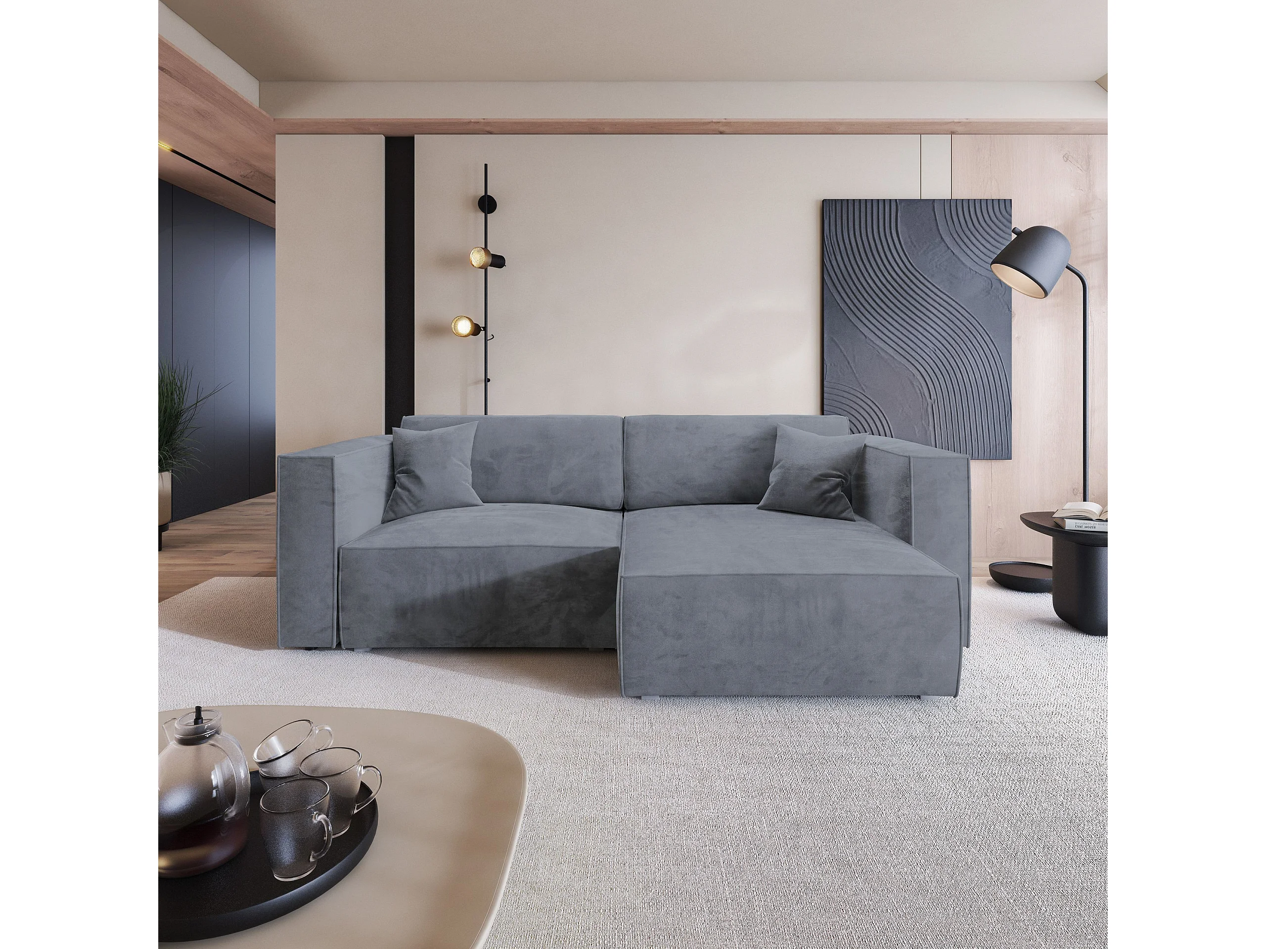Canapé d'angle NERIO Gris en velours avec fonction de couchage