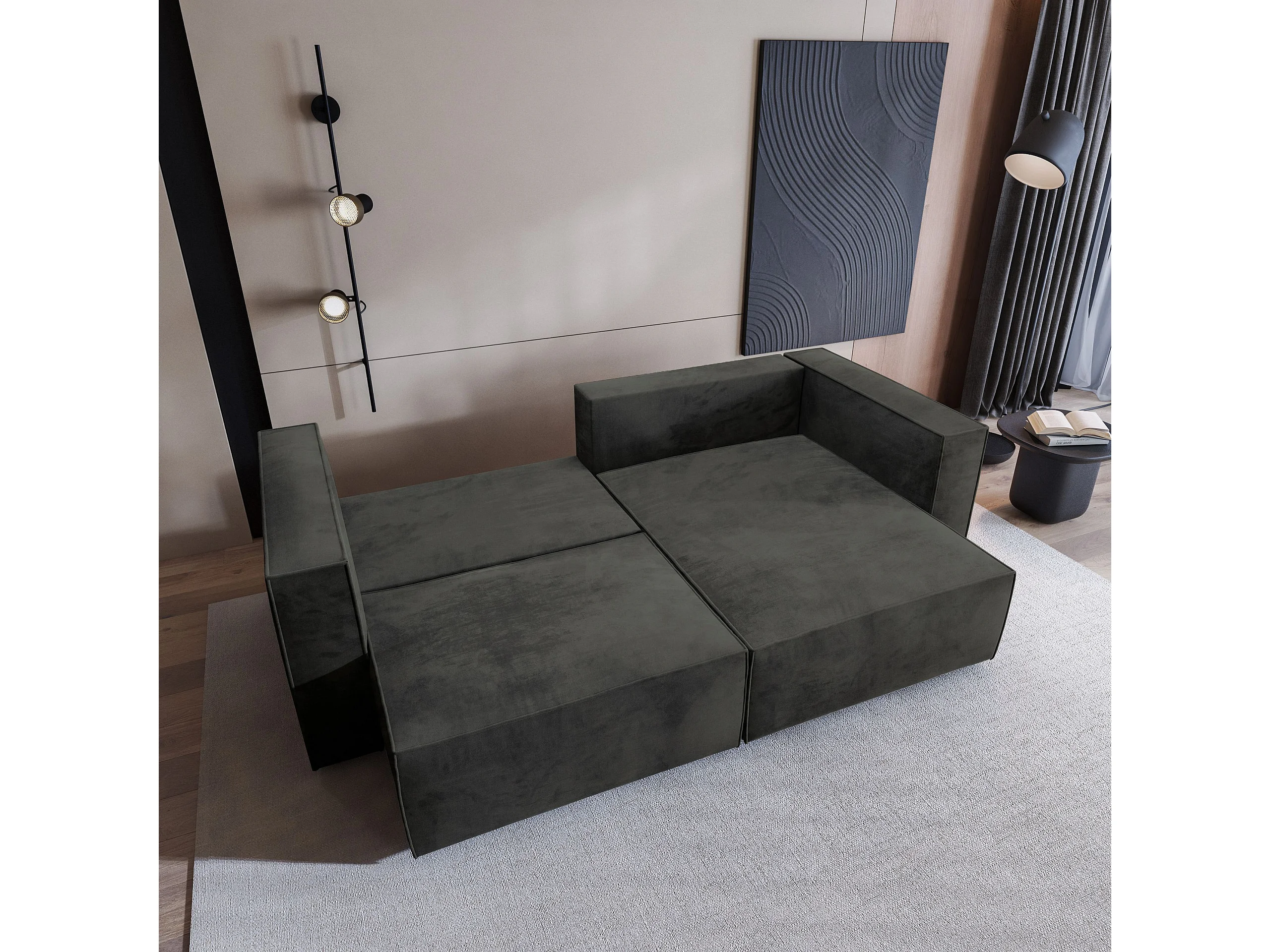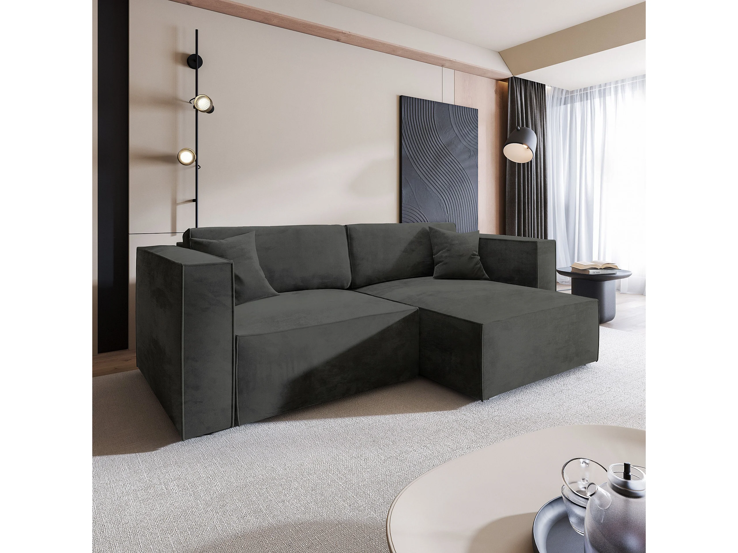 Canapé d'angle NERIO Noir en velours avec fonction de couchage