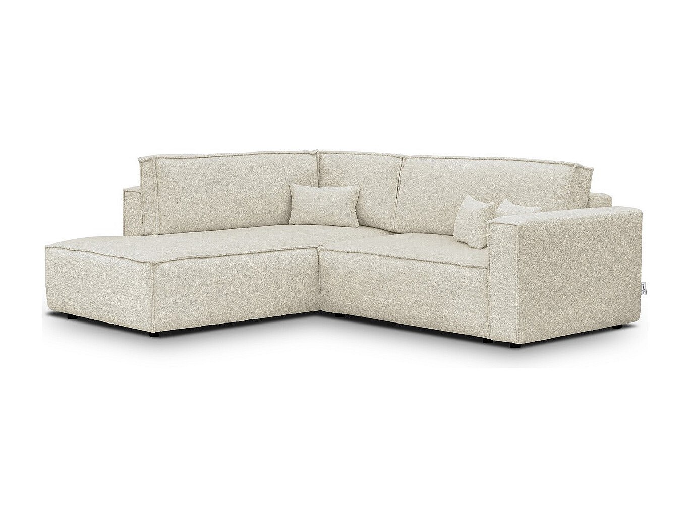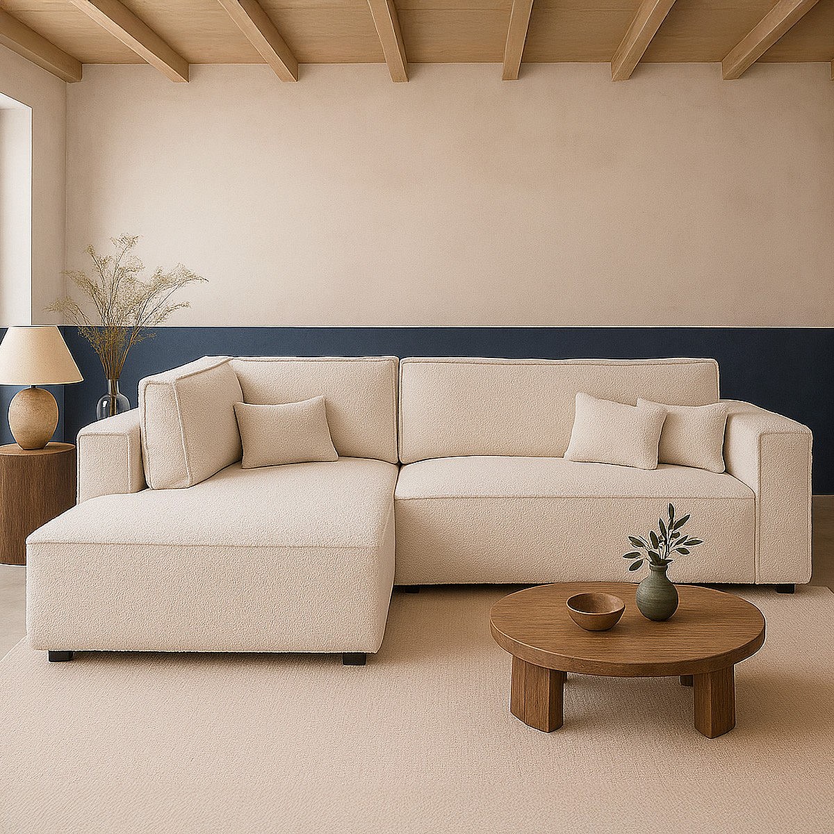Canapé d'angle ouvert à gauche convertible 3 places en tissu bouclé beige - Emma