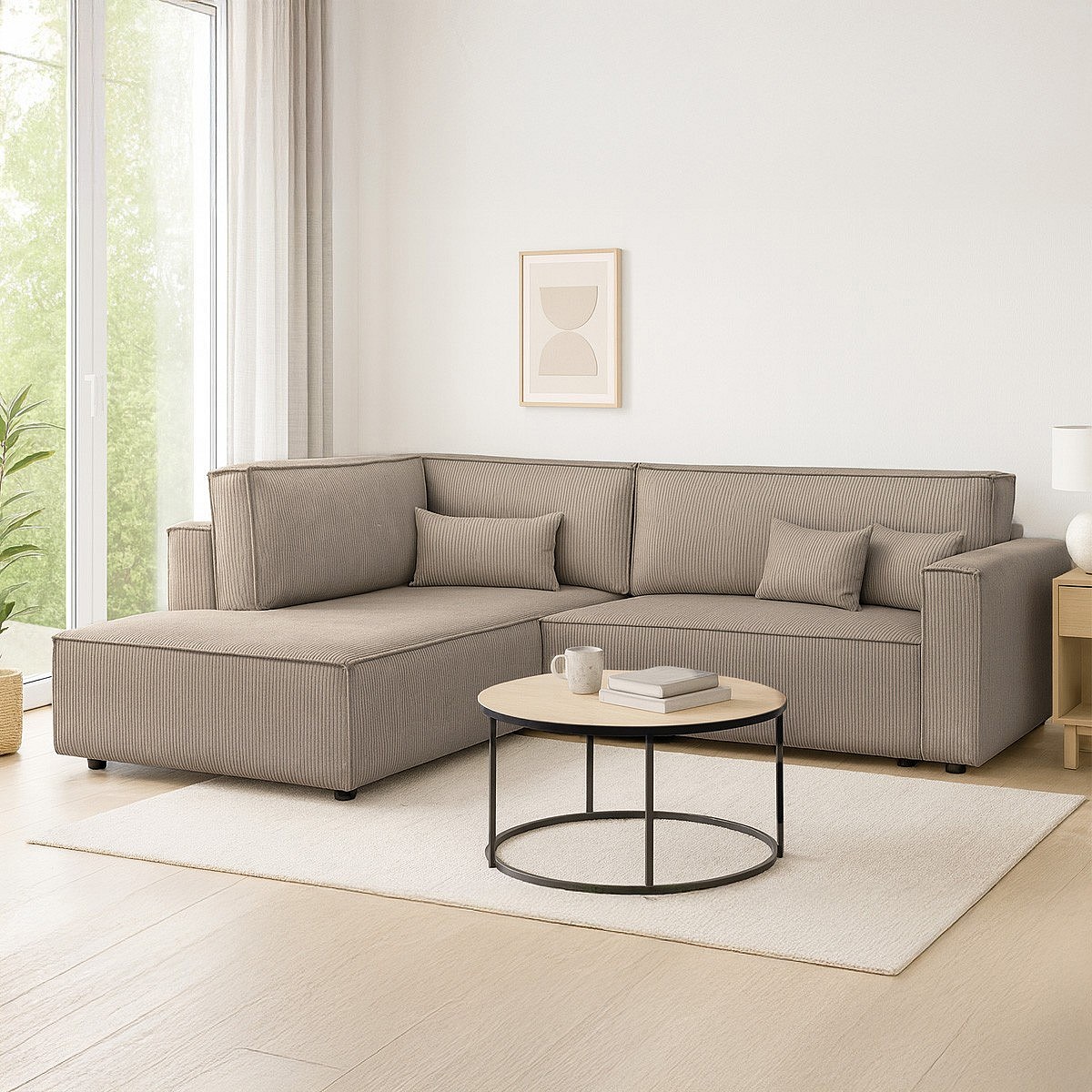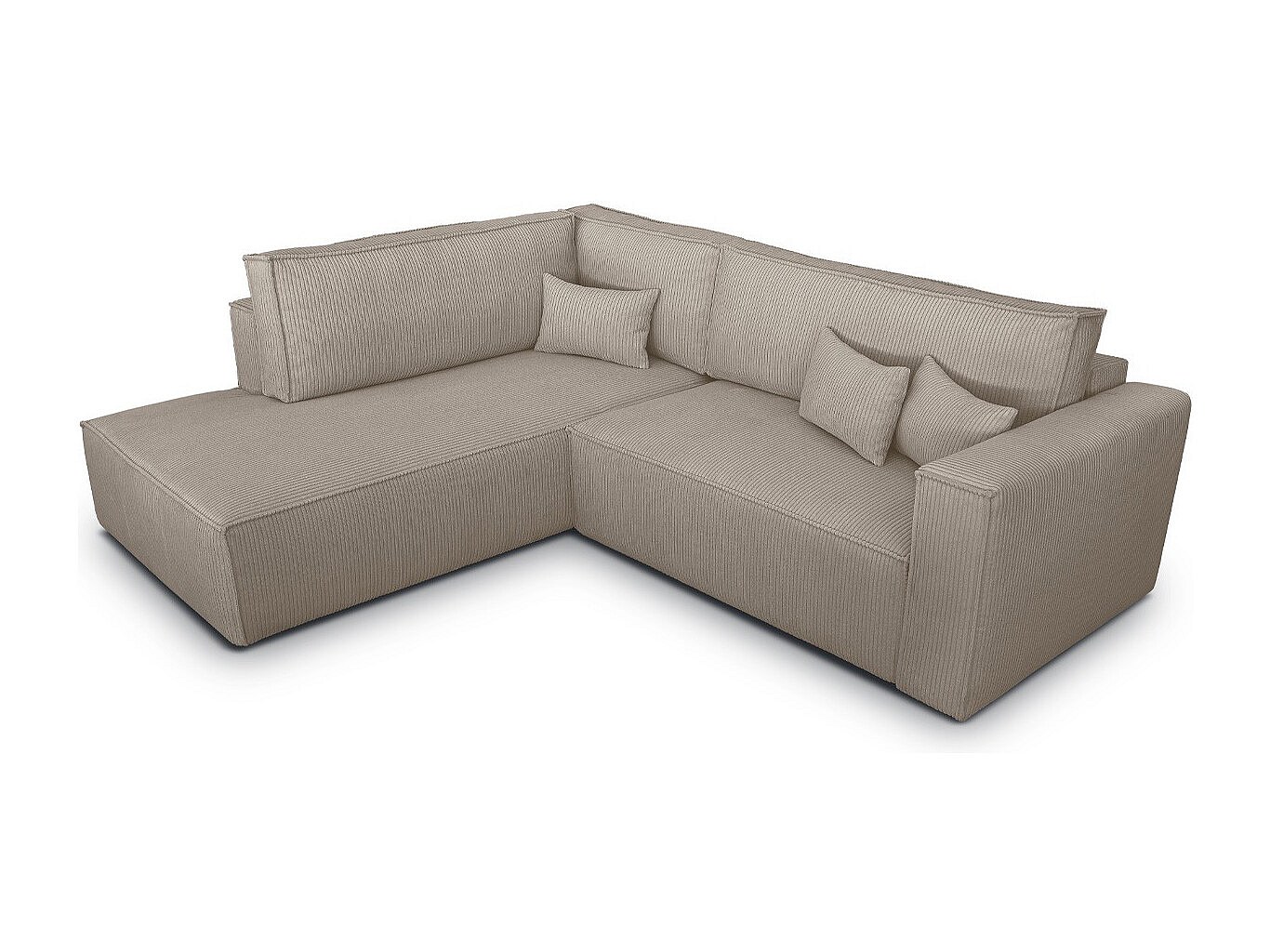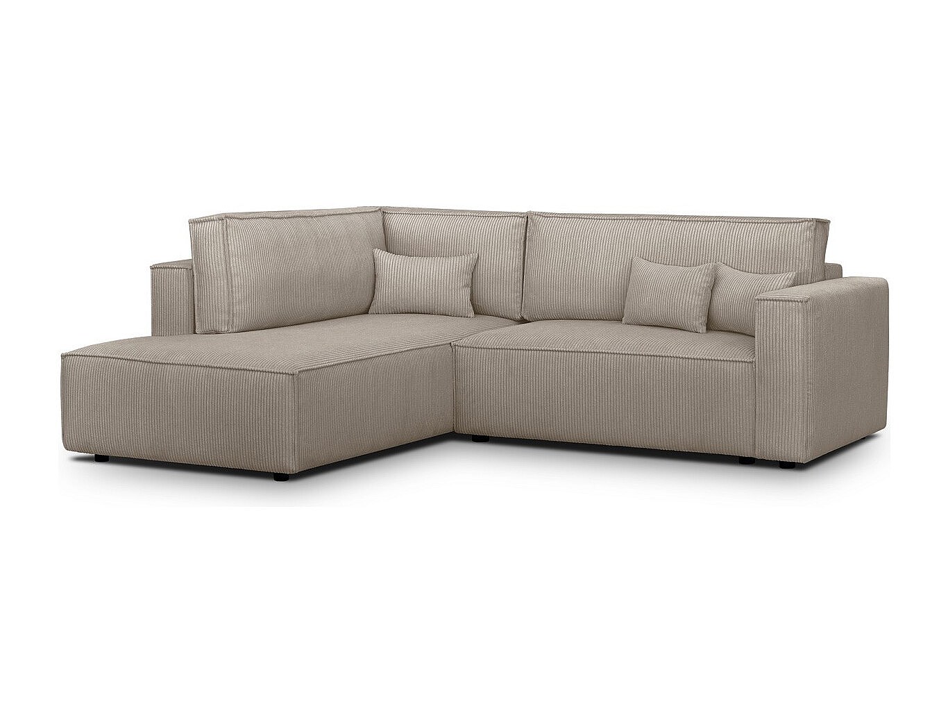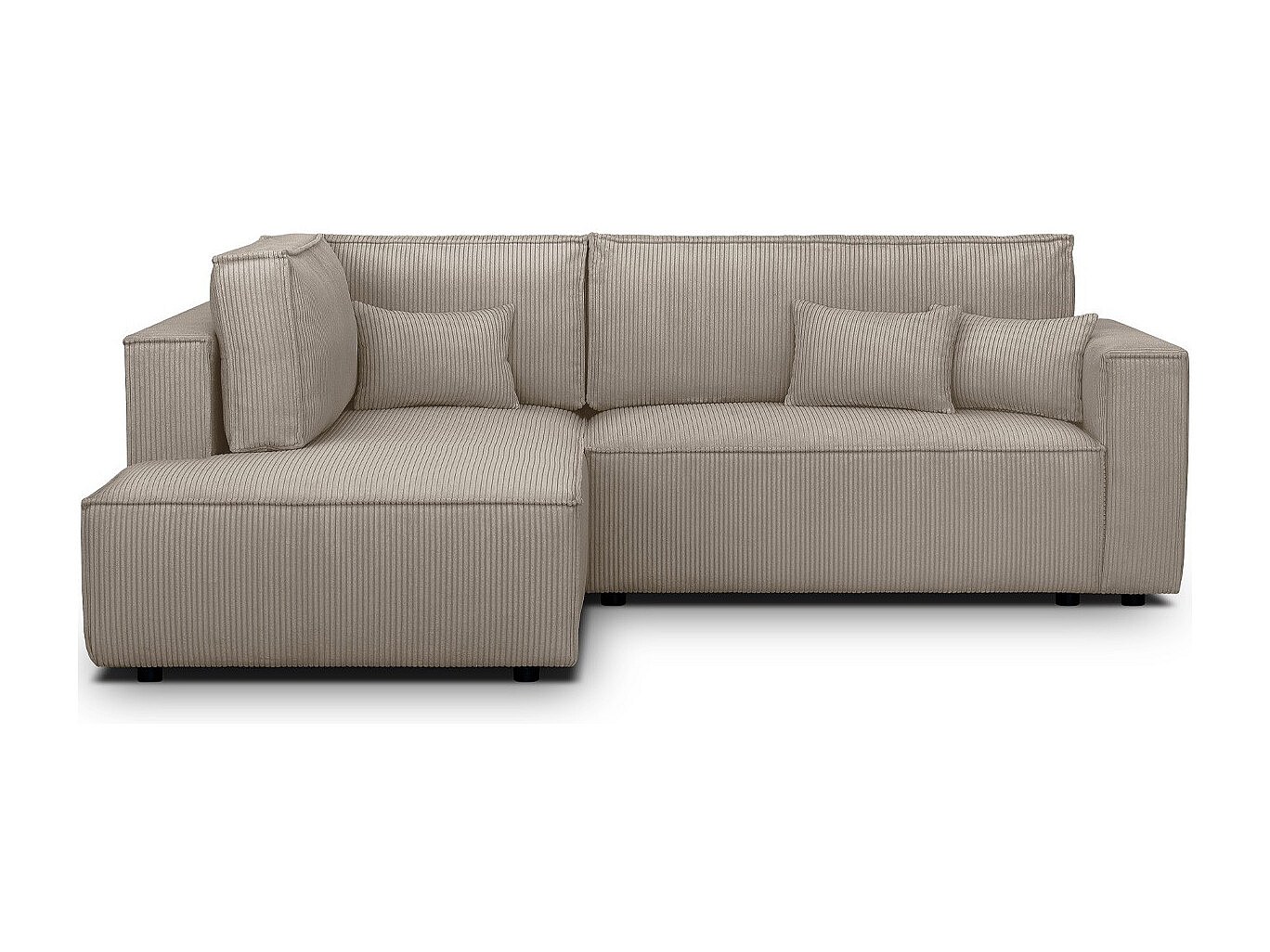 Canapé d'angle ouvert à gauche convertible 3 places en velours côtelé taupe - Emma
