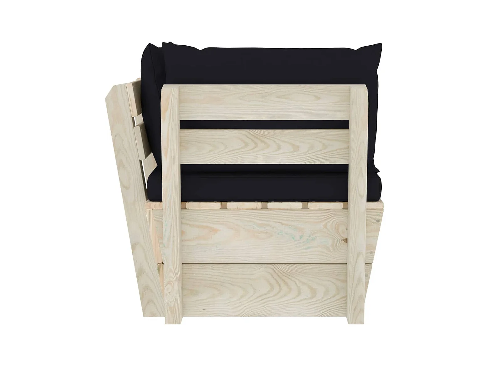 Canapé d'angle de jardin avec coussins Noir Bois de pin massif FR81890