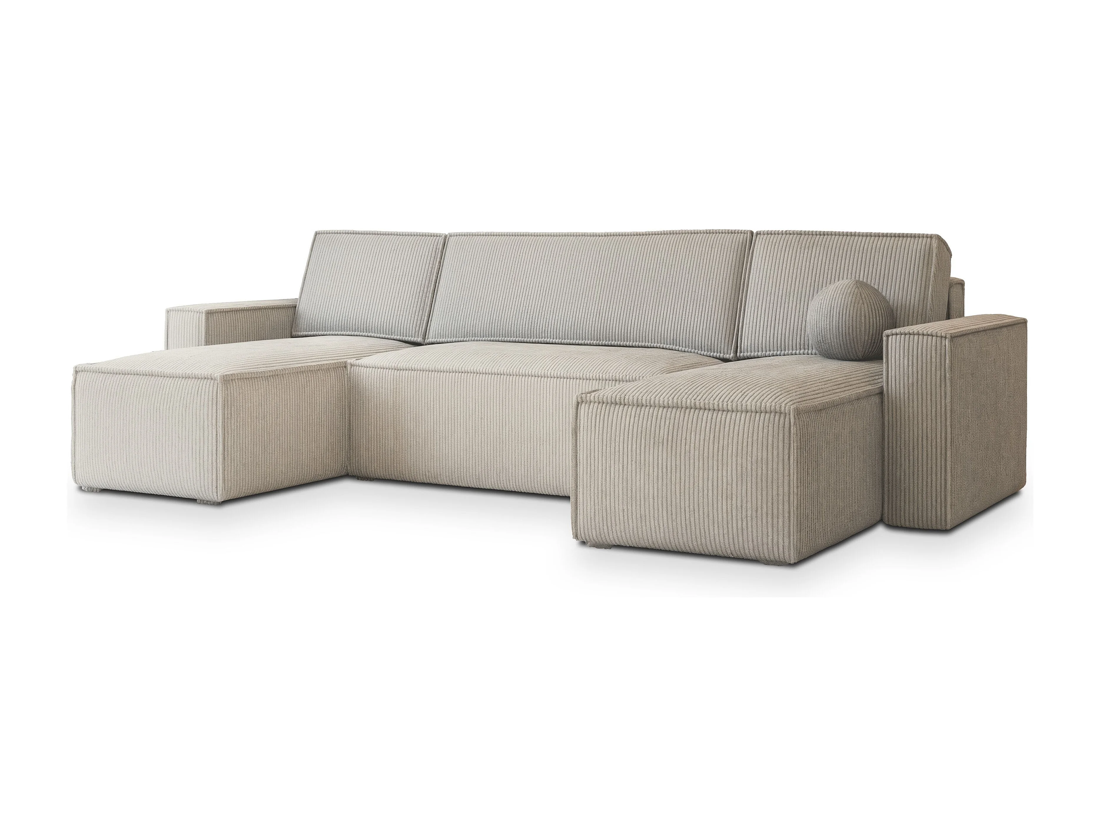 Canapé d'angle PESANO Crème en velours côtelé avec fonction de couchage