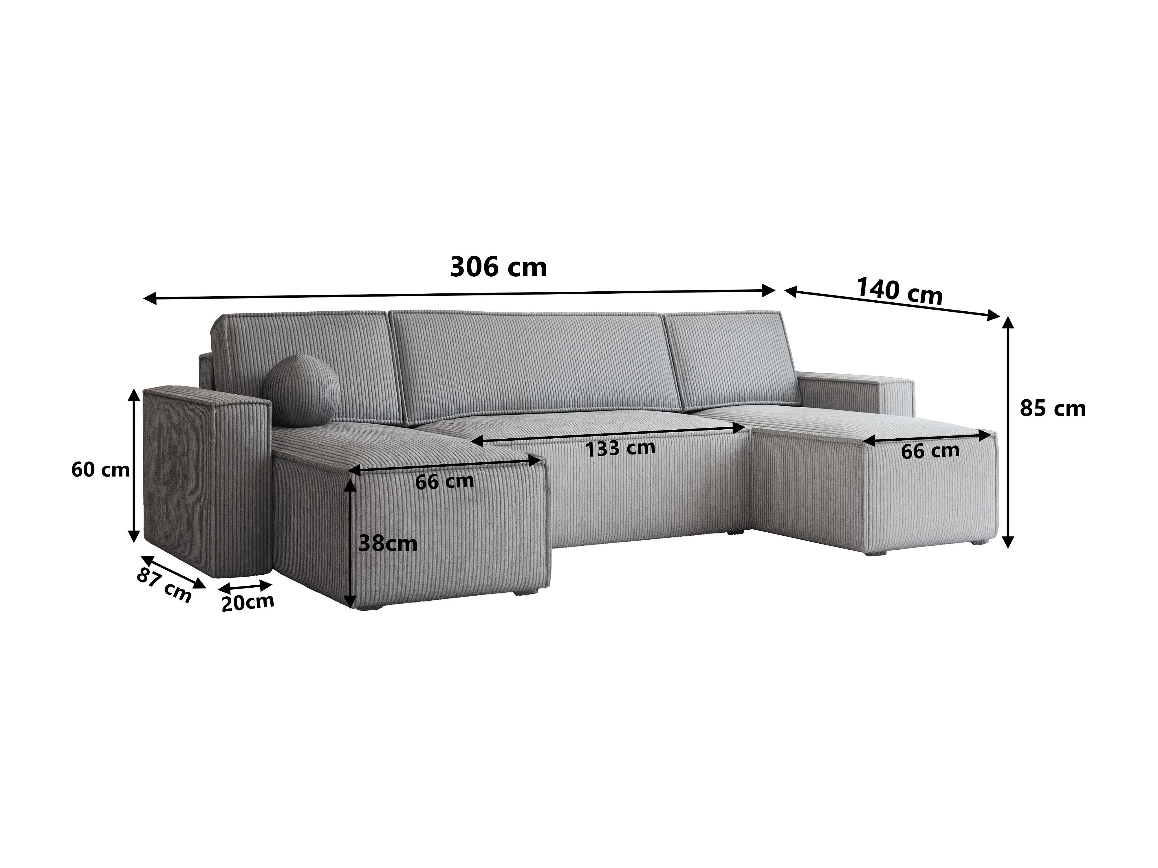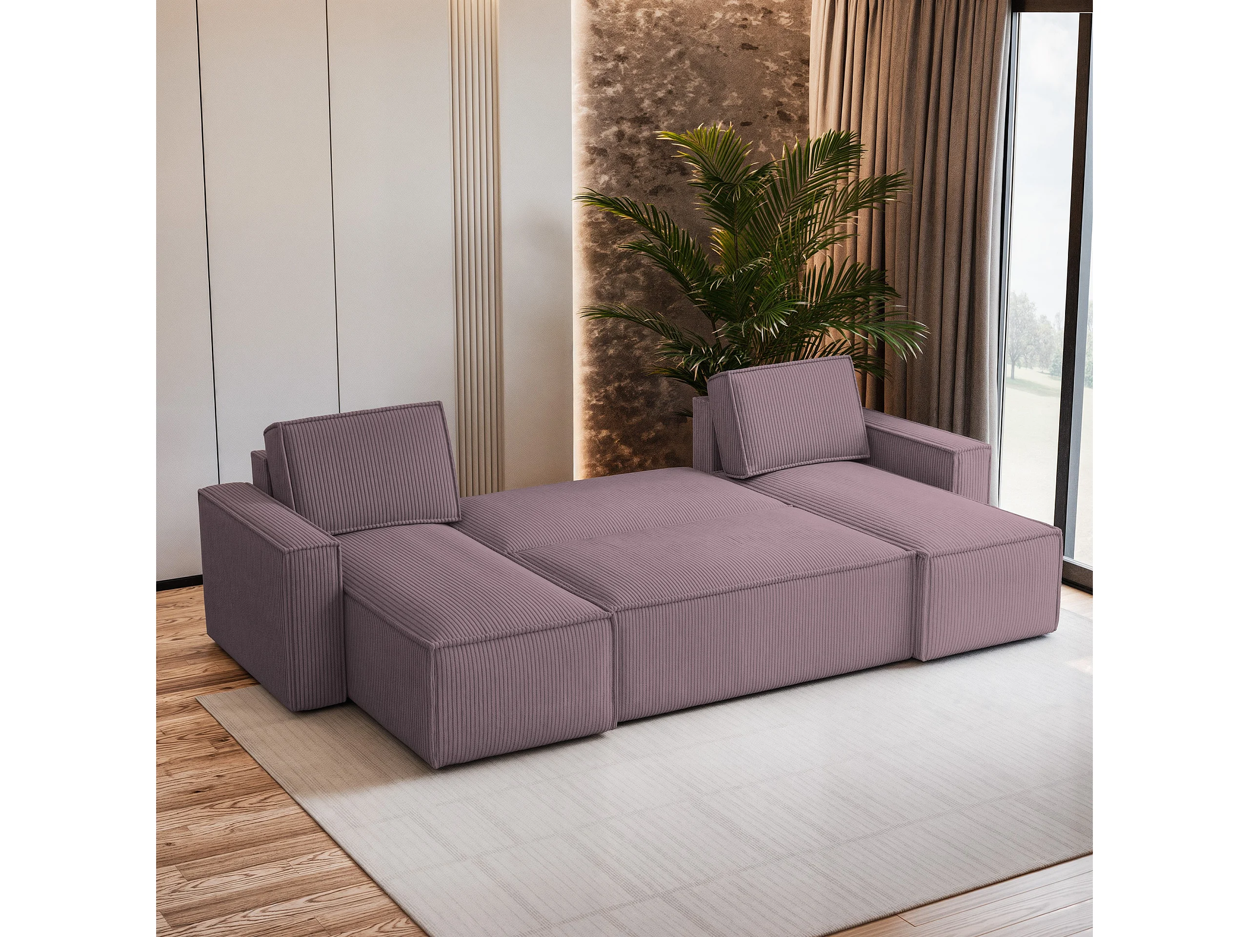 Canapé d'angle PESANO Parme en velours côtelé avec fonction de couchage