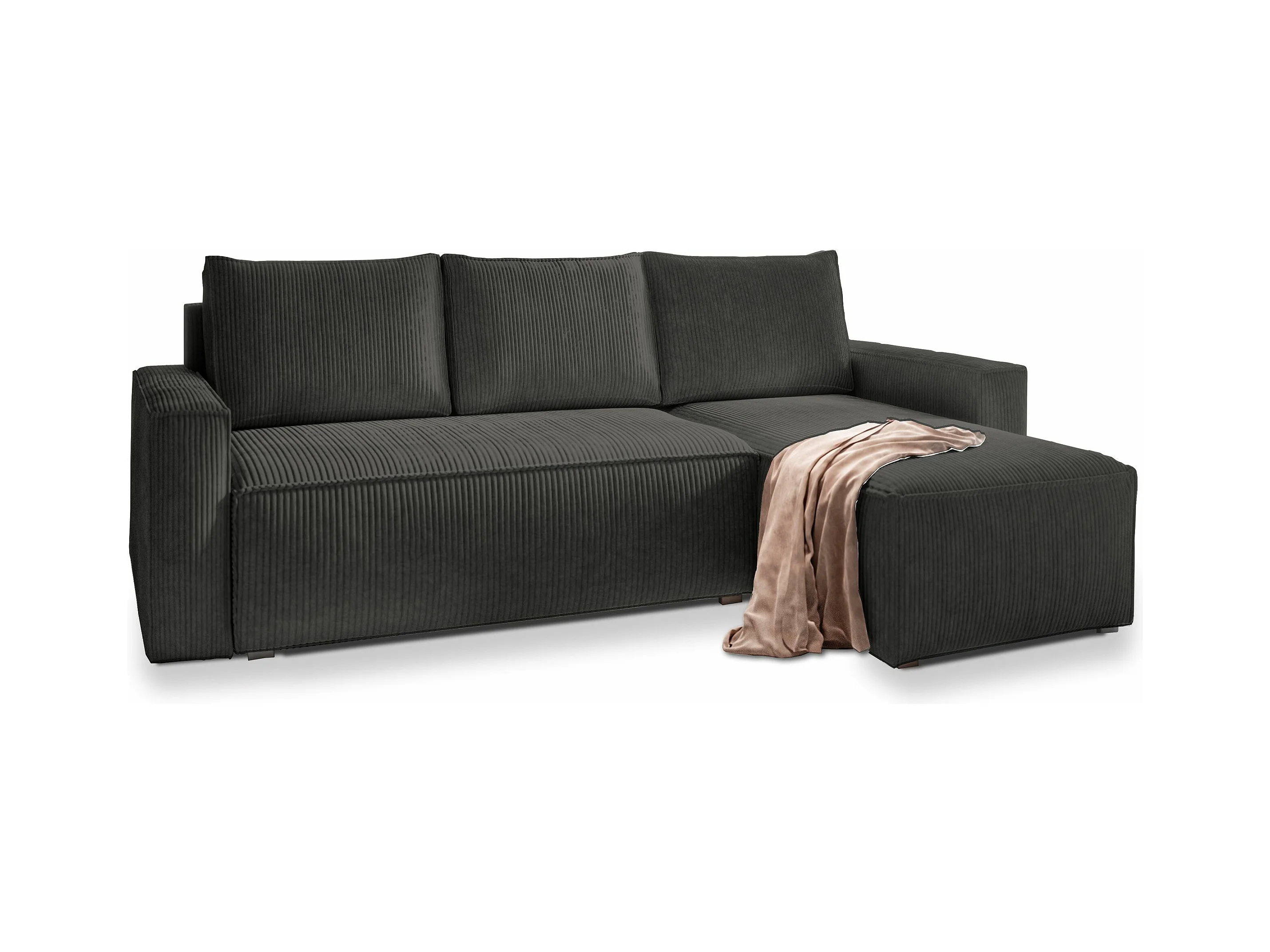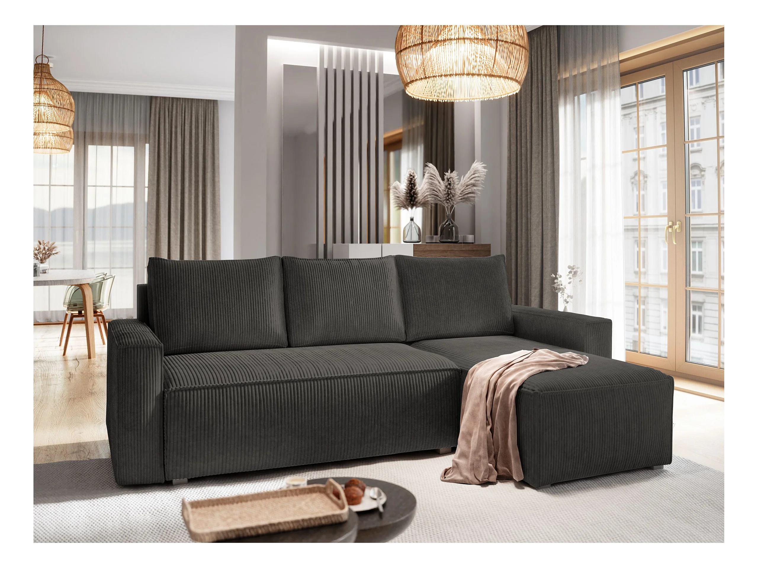 Canapé d'angle POTARO Gris anthracite en velours côtelé avec fonction de couchage