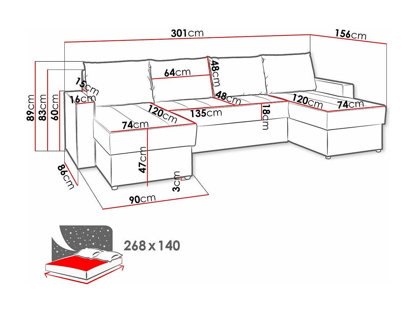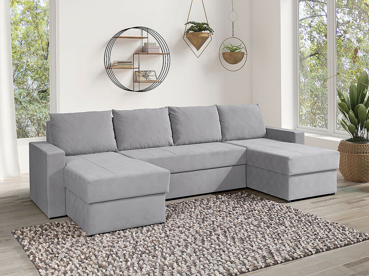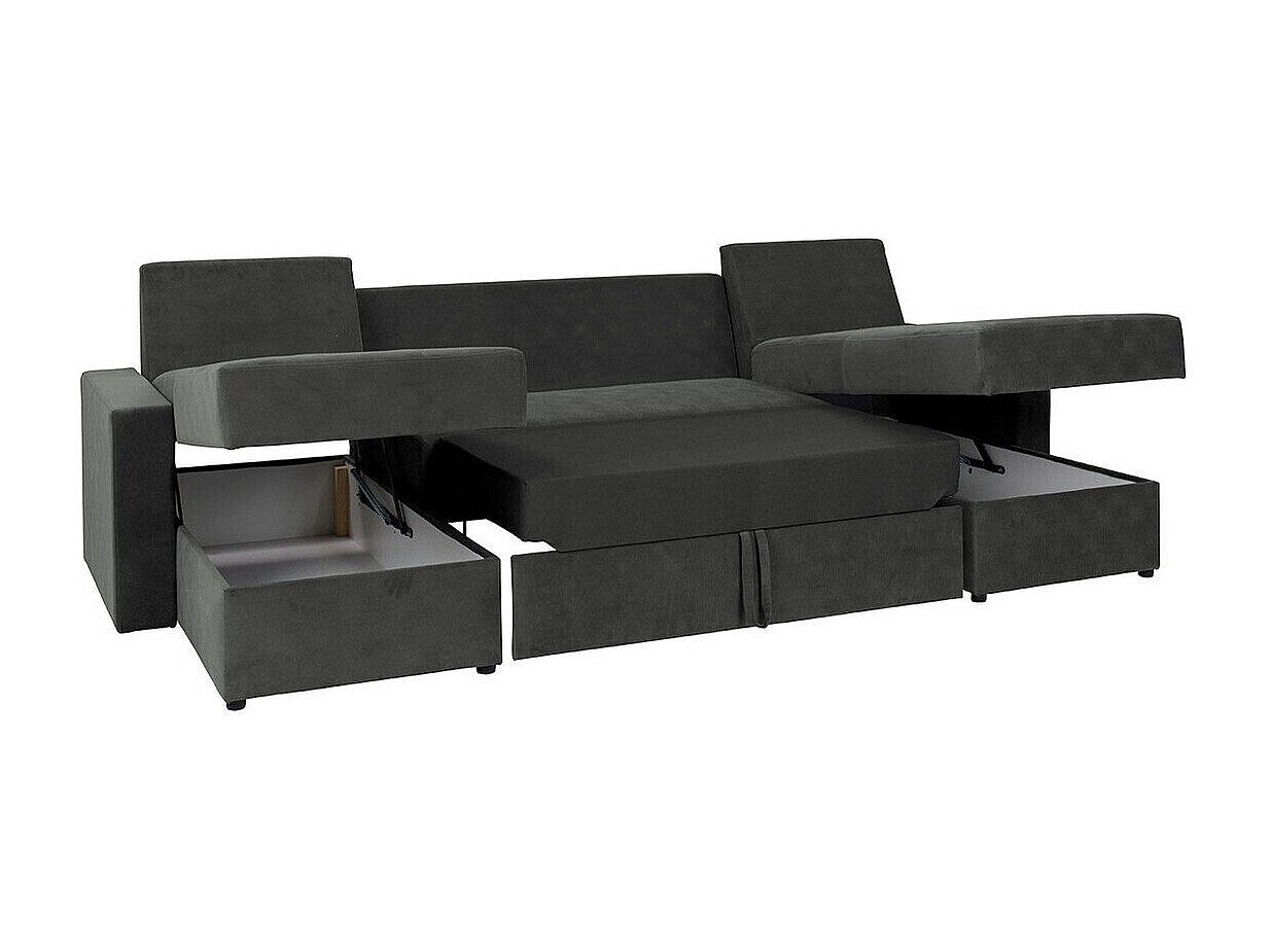 Canapé d'angle Providence 143, Gris, Fonction de couchage, Boîte de literie, 301x156x89cm