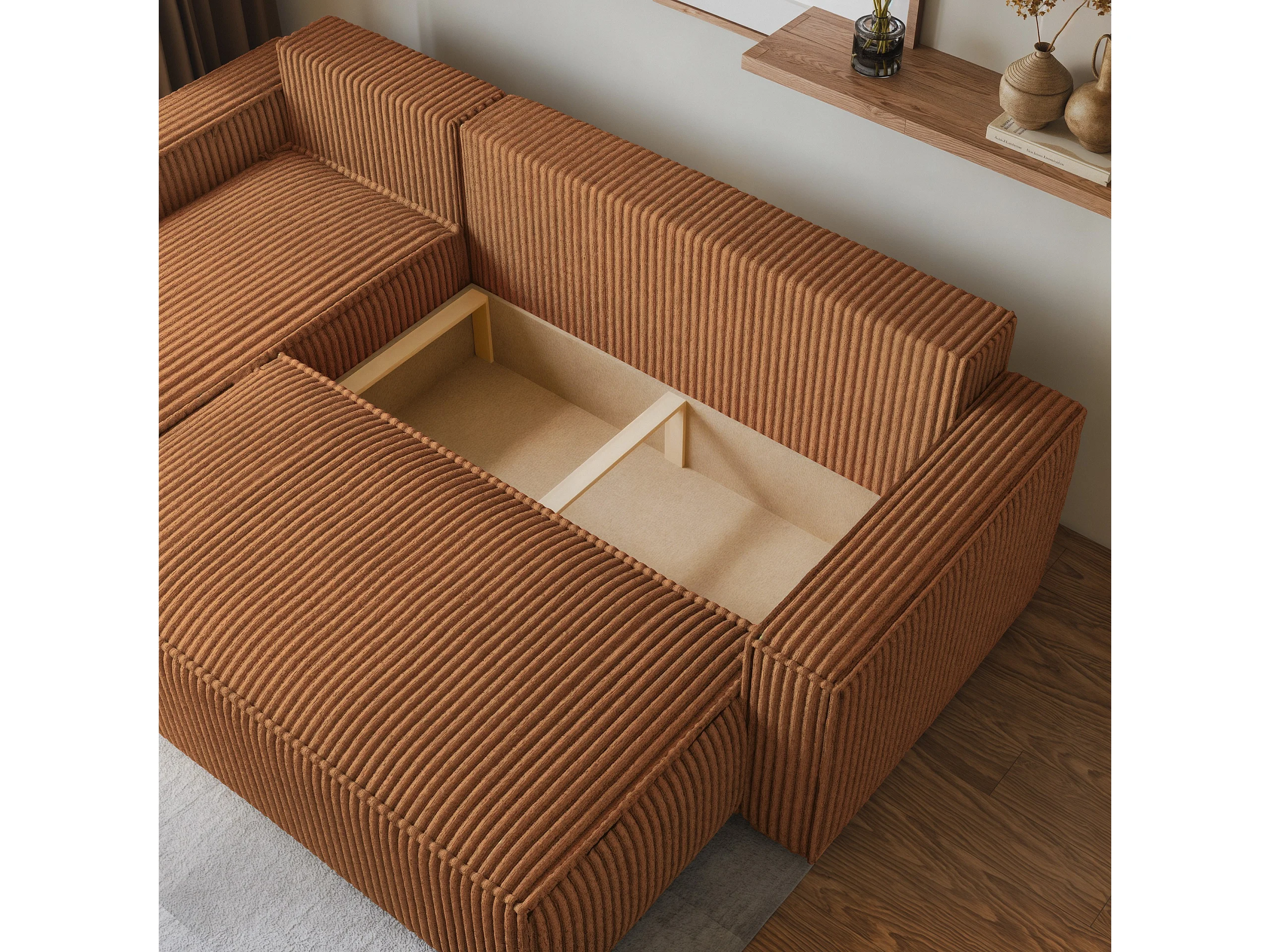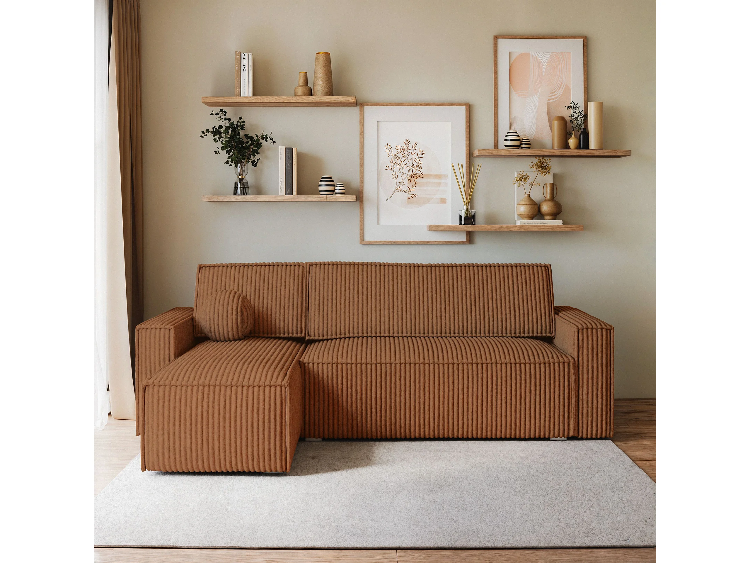 Canapé d'angle RAVELO Cuivré en velours côtelé avec fonction de couchage