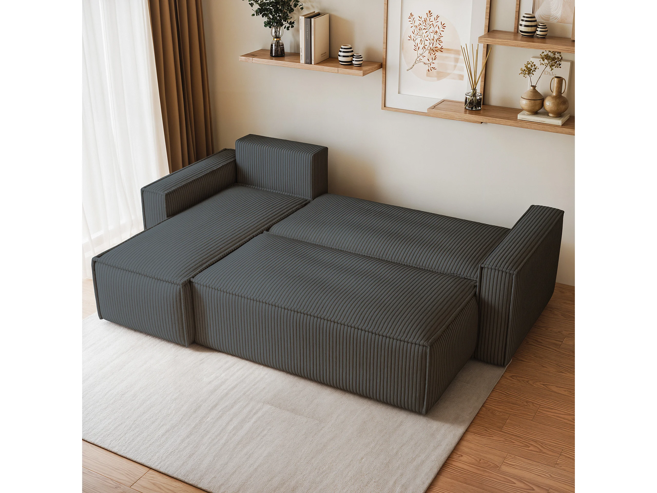 Canapé d'angle RAVELO Gris anthracite en velours côtelé avec fonction de couchage