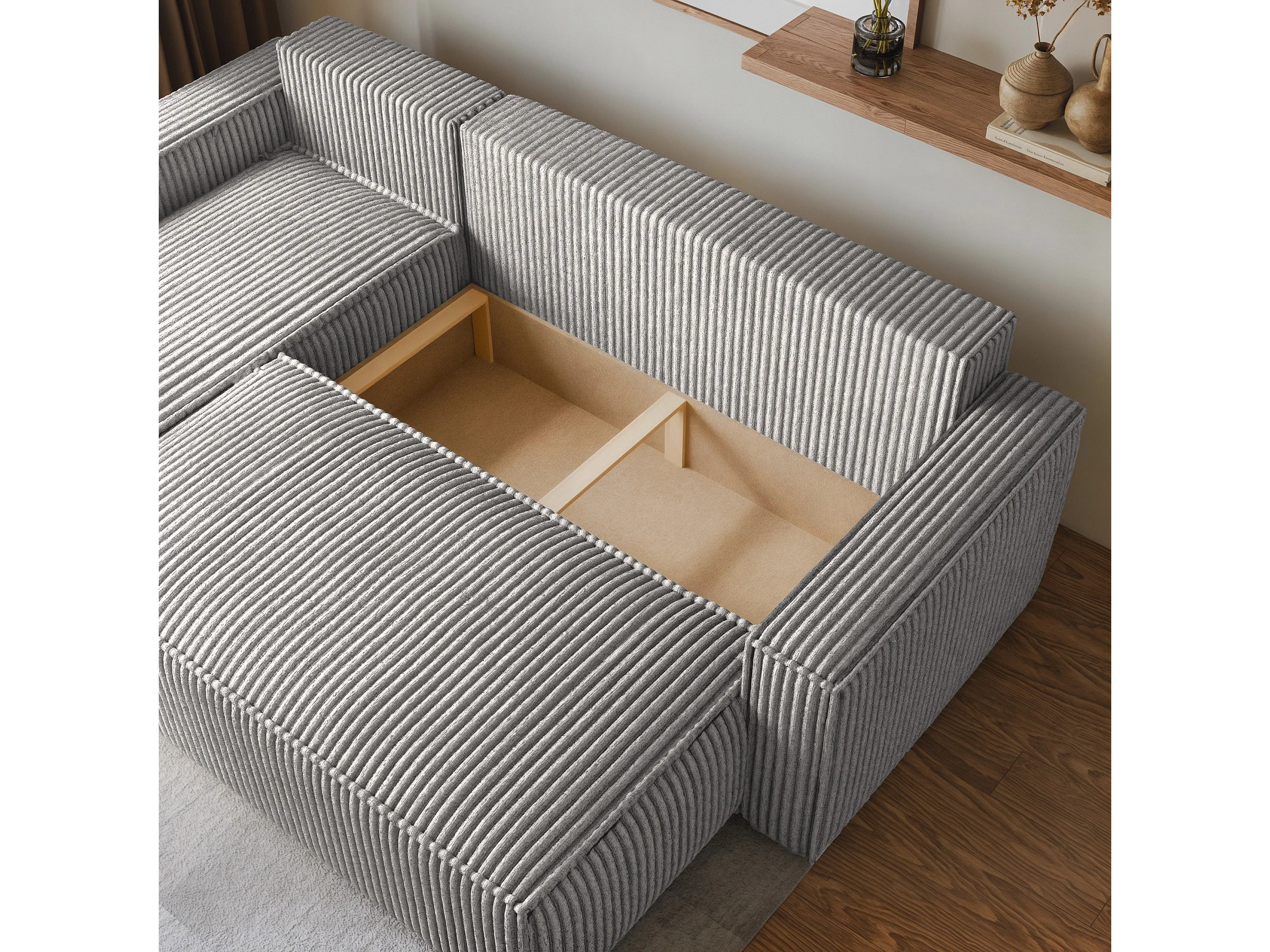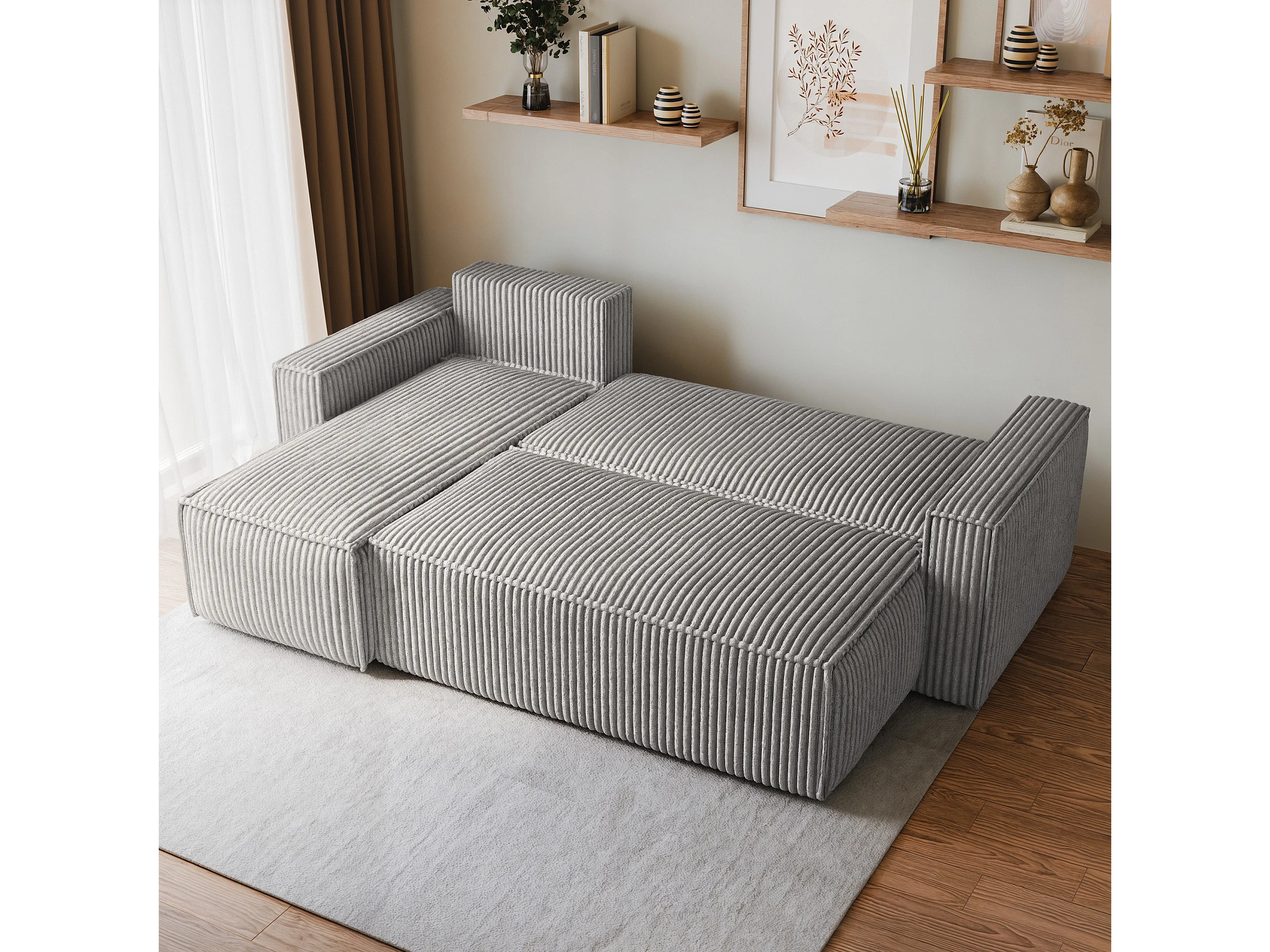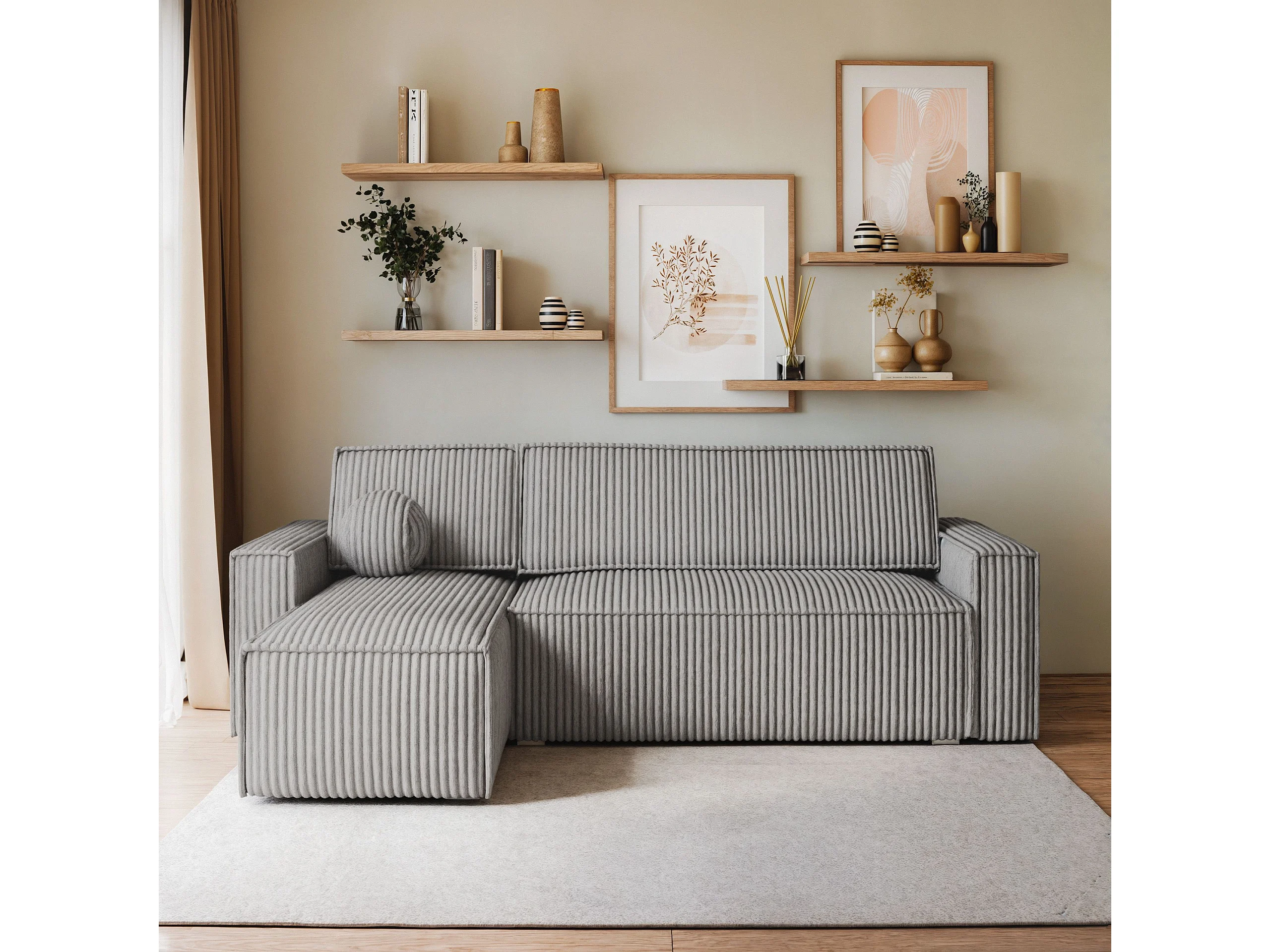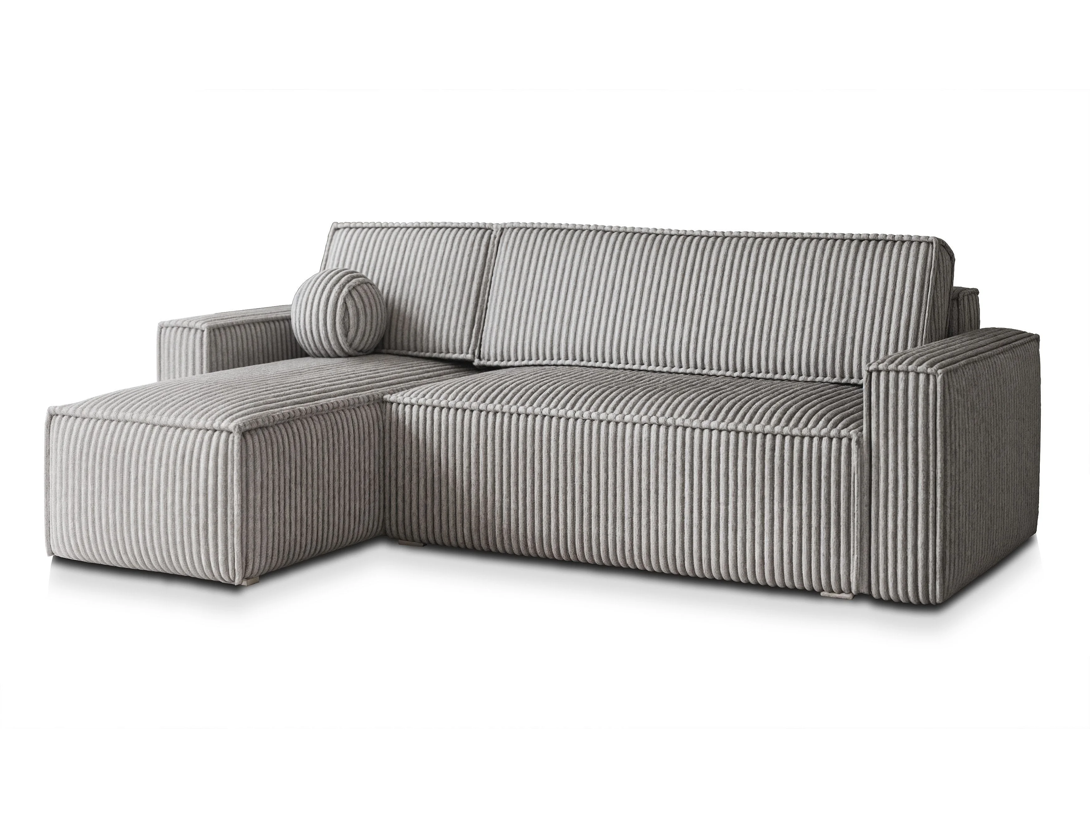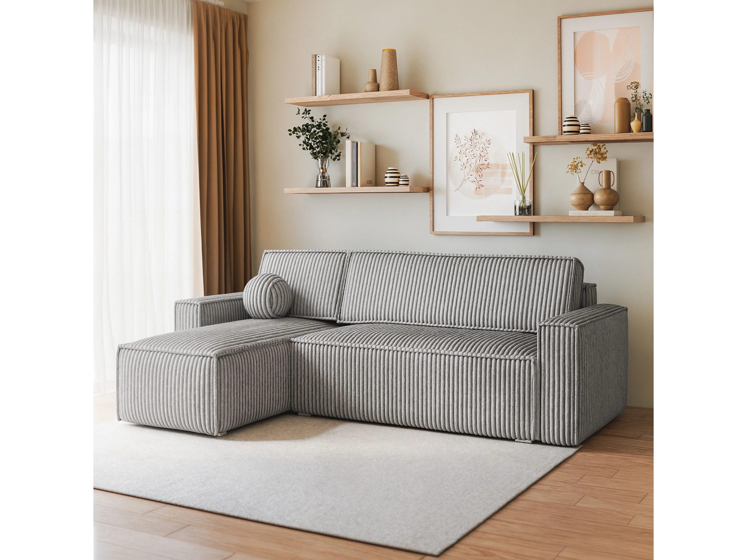 Canapé d'angle RAVELO Gris clair en velours côtelé avec fonction de couchage