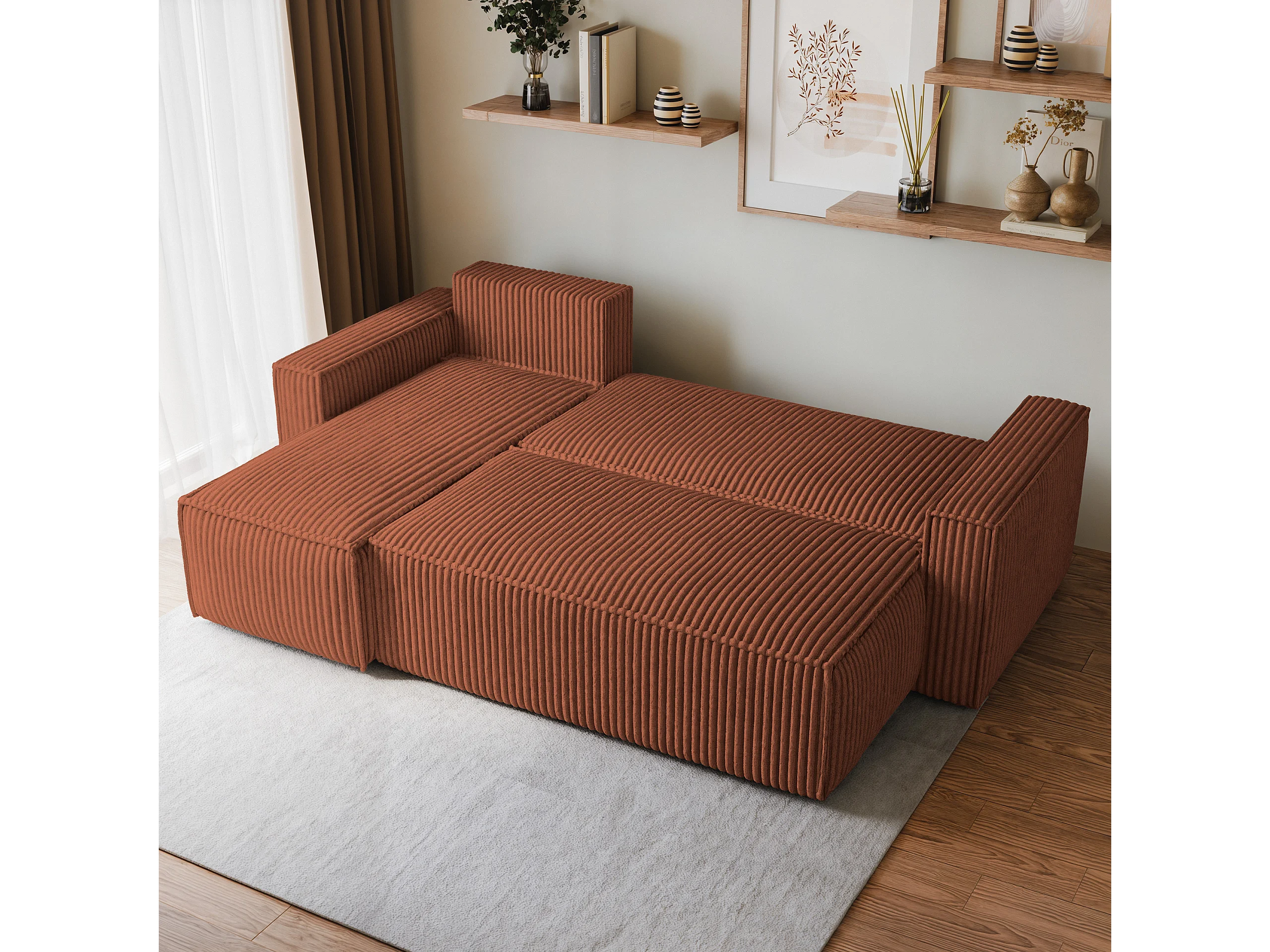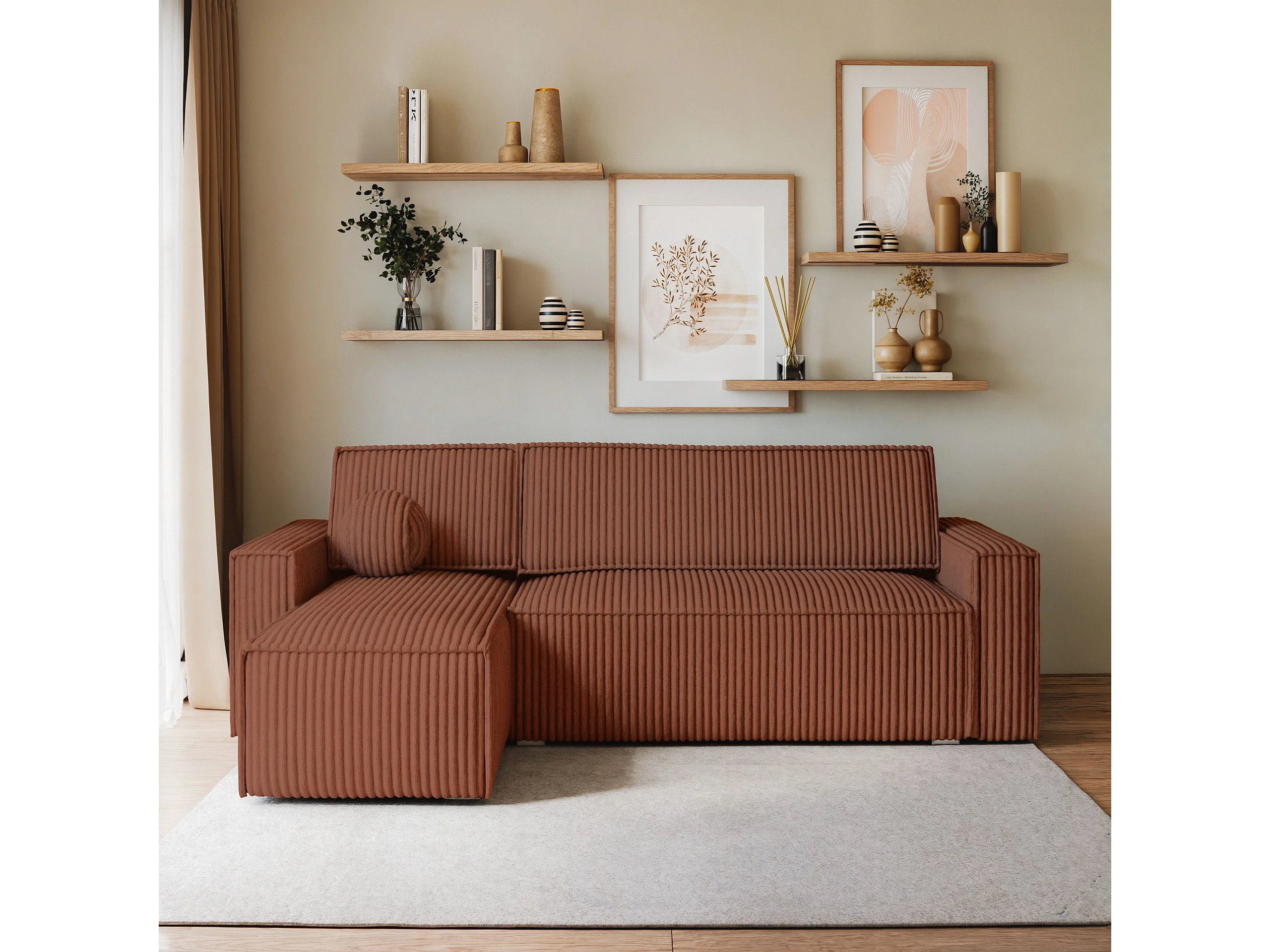Canapé d'angle RAVELO Marron en velours côtelé avec fonction de couchage