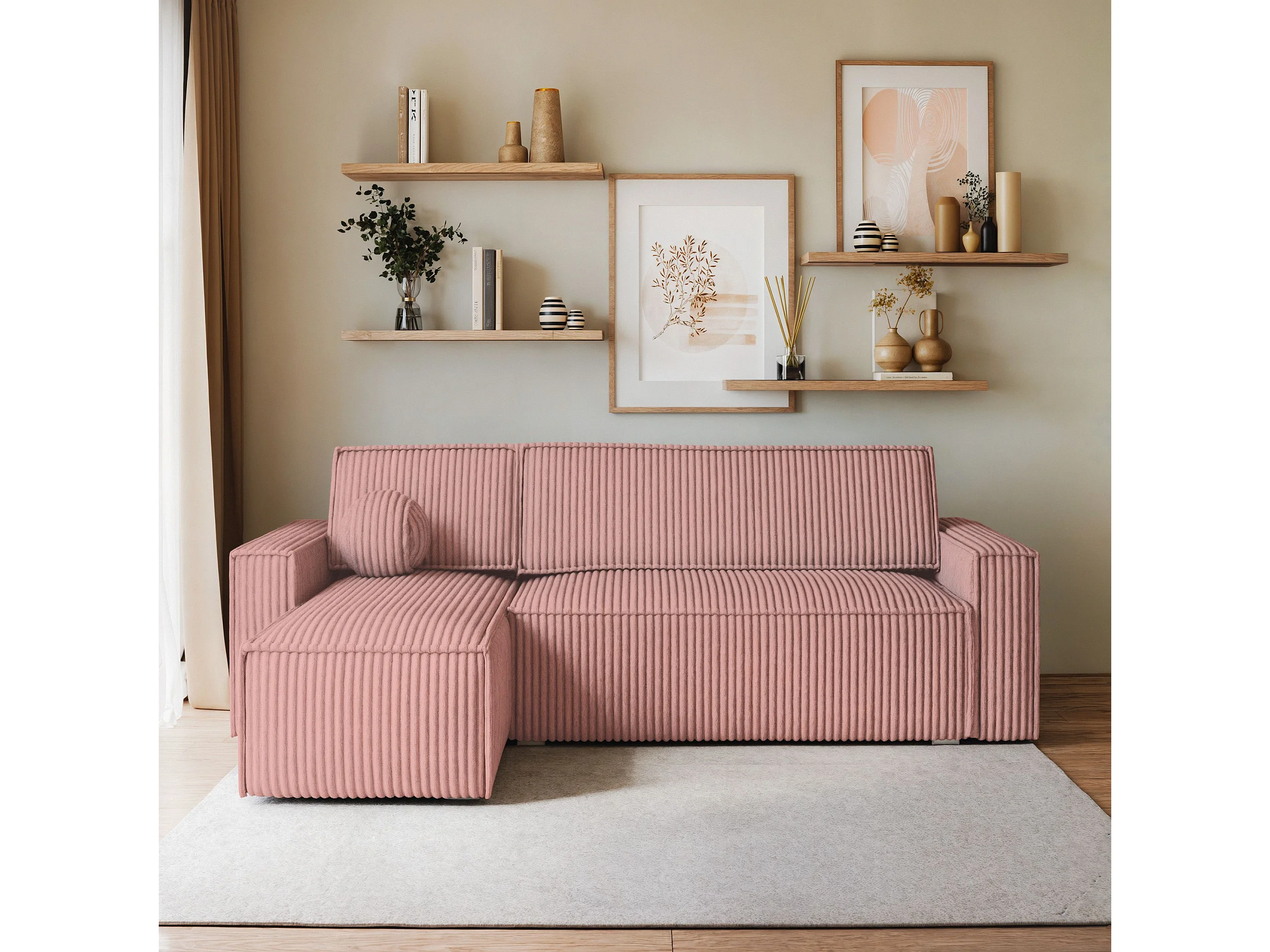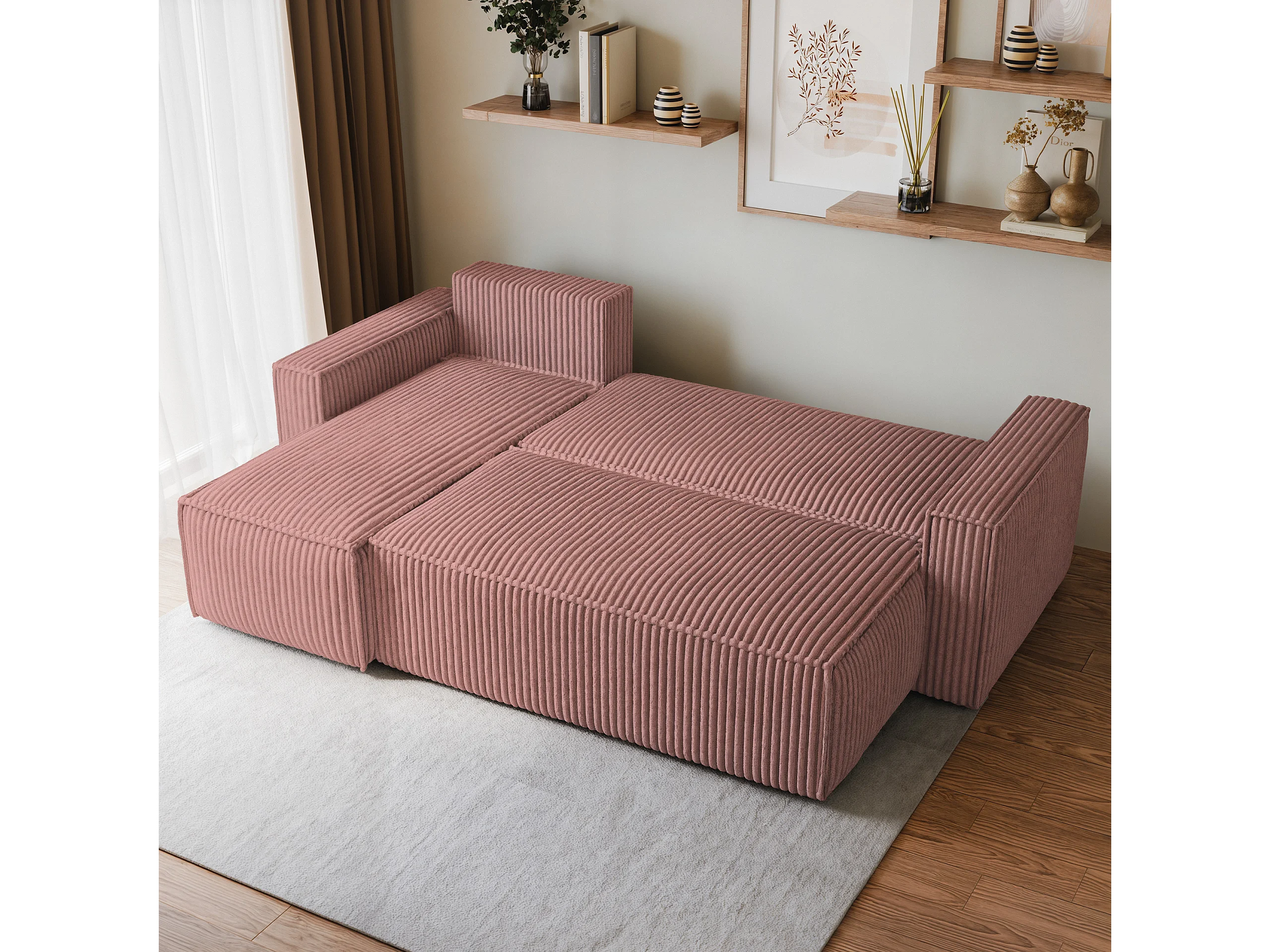 Canapé d'angle RAVELO Rose poudré en velours côtelé avec fonction de couchage