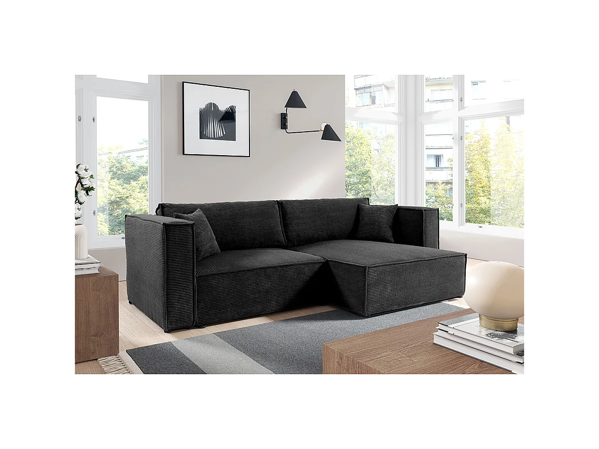 Canapé d'angle réversible convertible 3 places Jimmy velours côtelé Noir