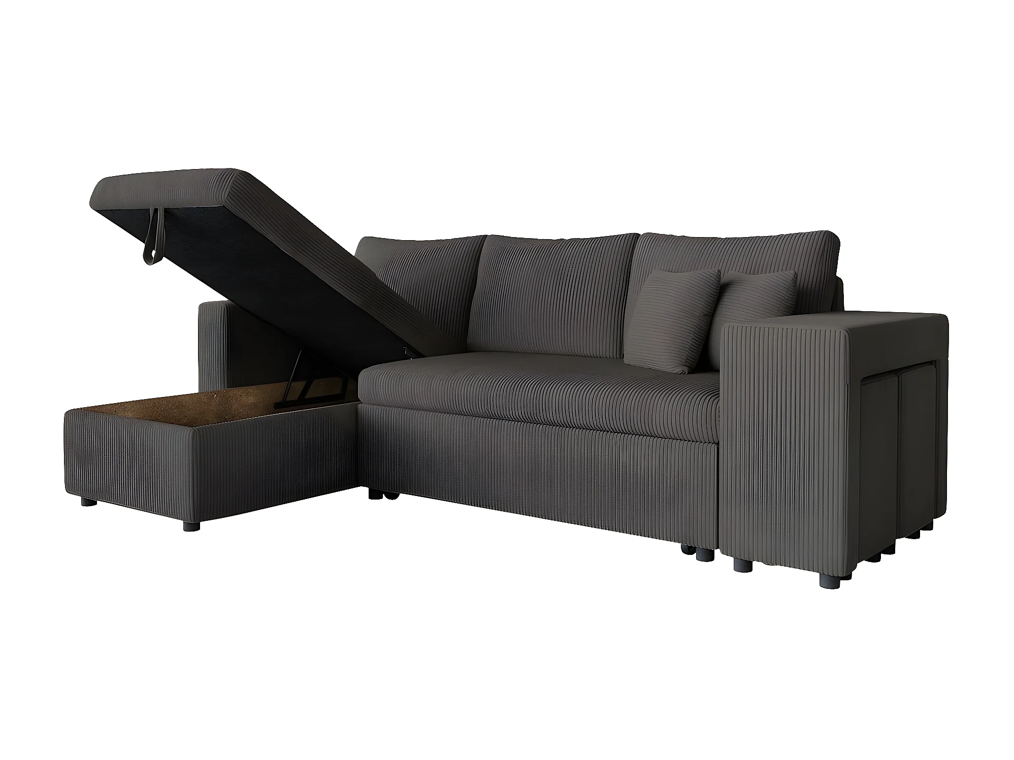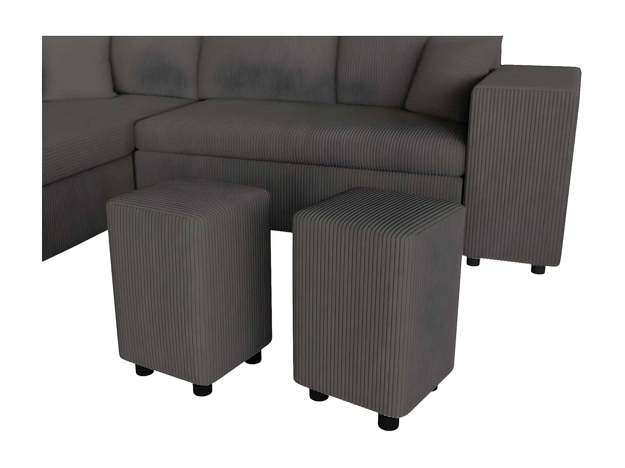 Canapé d'angle réversible convertible Oslo coffre 2 poufs à droite en velours côtelé Gris anthracite - L241 x P146 x H81cm - Loungitude