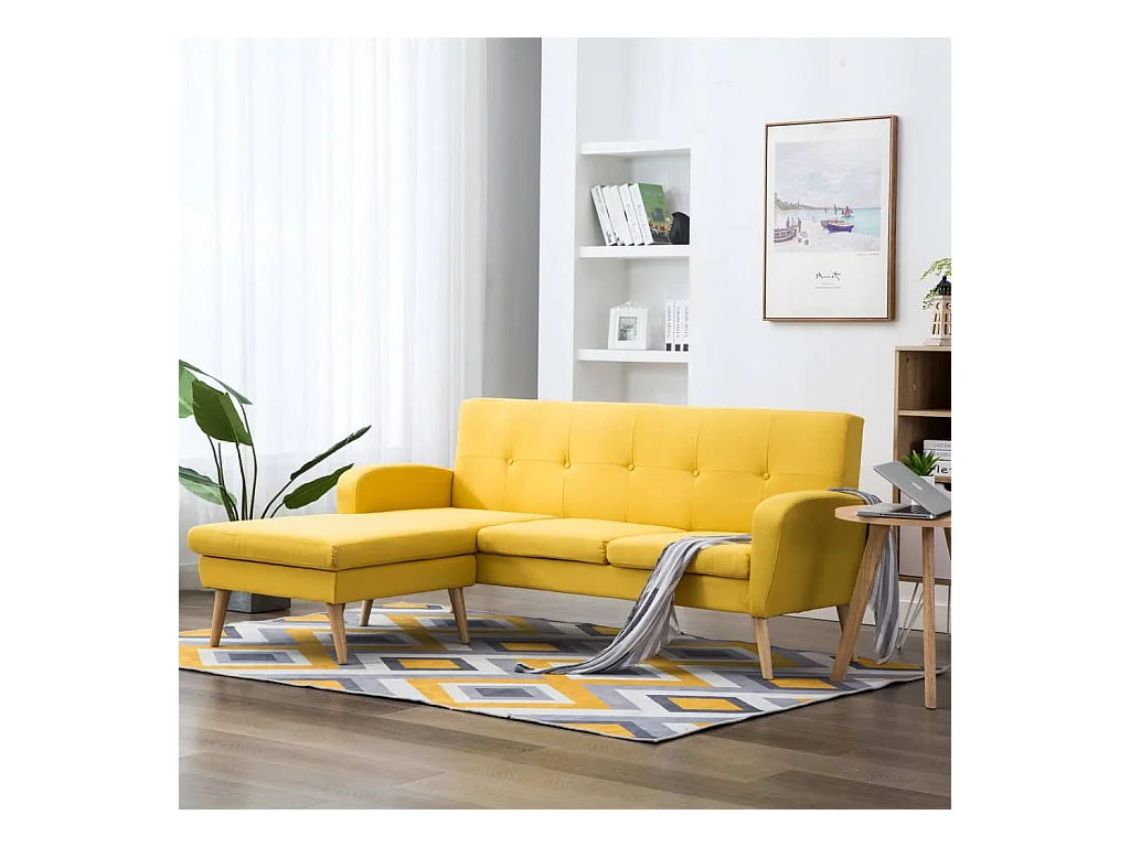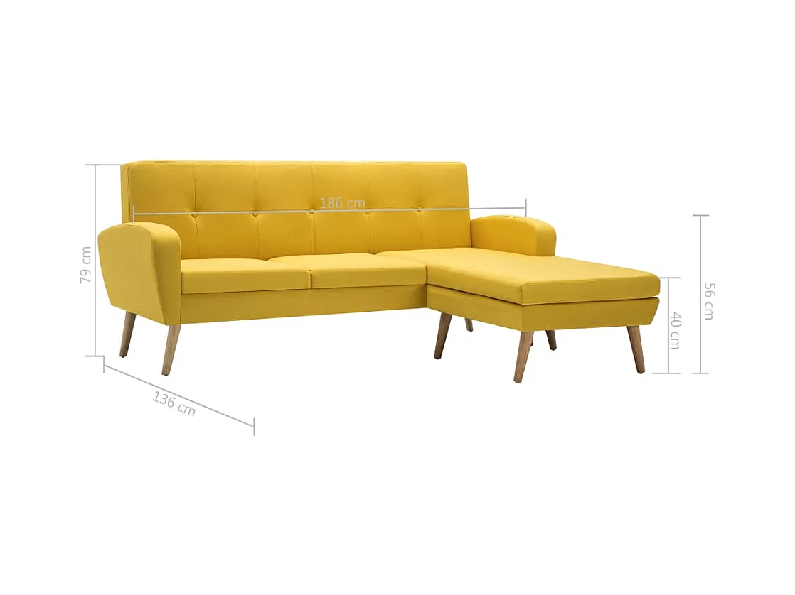 Canapé en forme de L revêtement en tissu 186x136x79 cm jaune