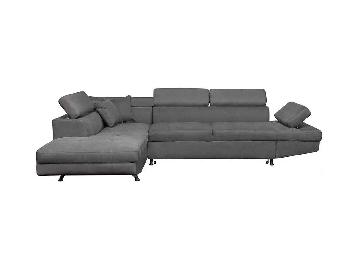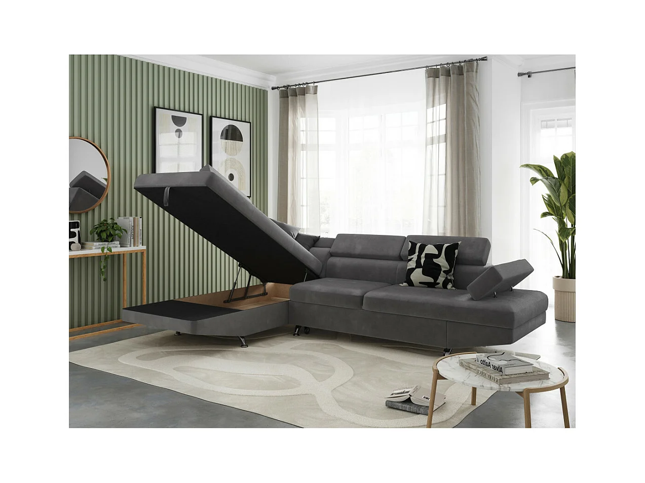 Canapé d'angle gauche 5 places Rio Convertible avec coffre en microfibre - Gris - L271 x P192 x H70cm - Loungitude