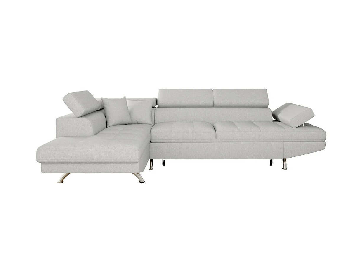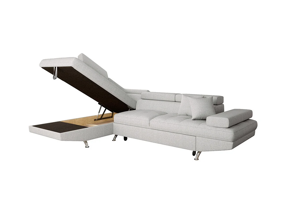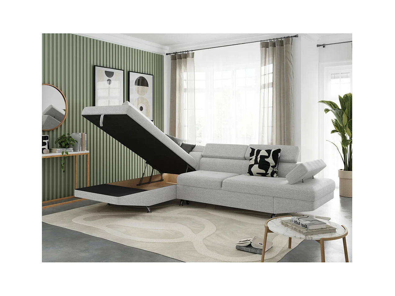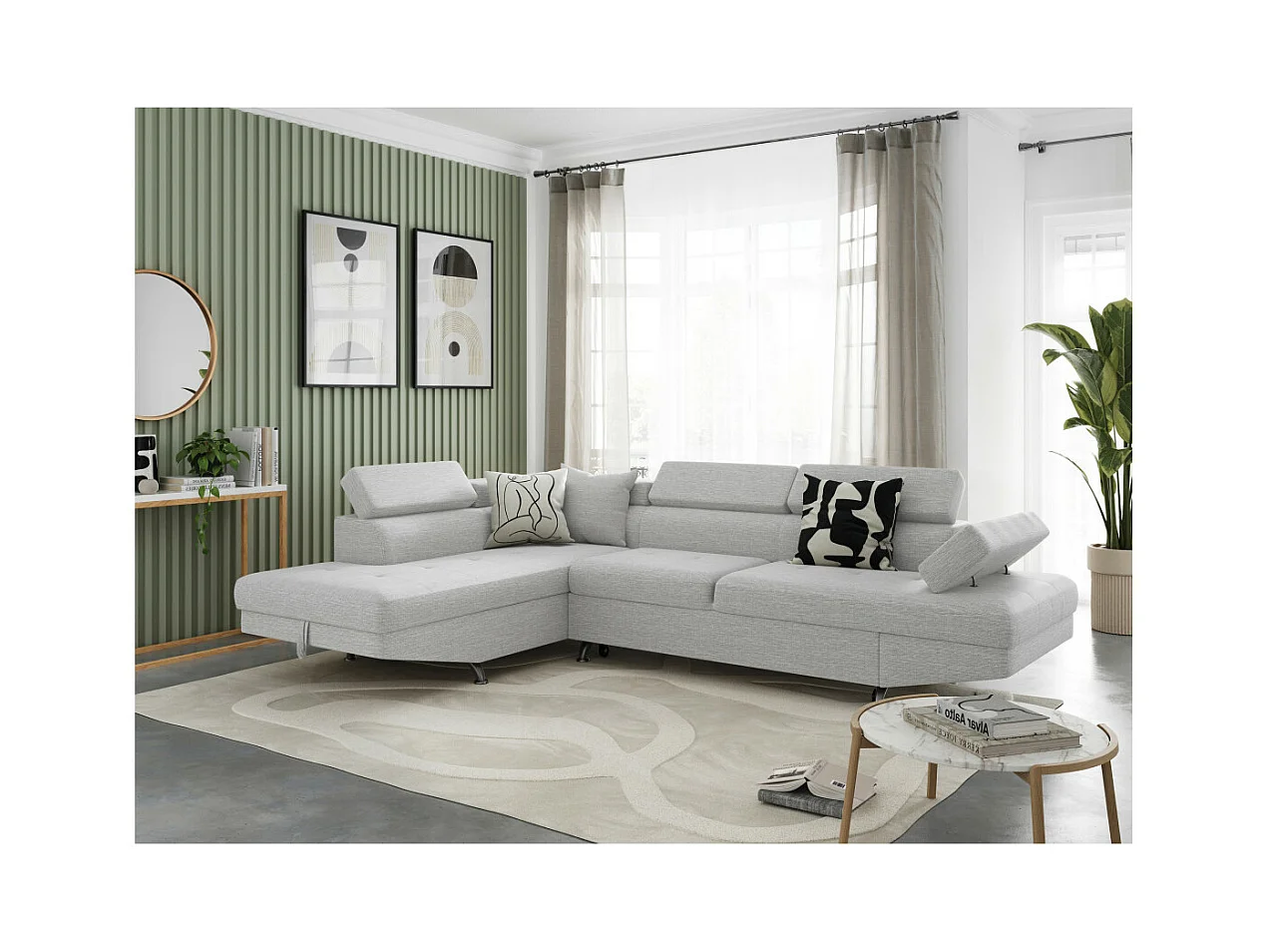 Canapé d'angle gauche 5 places Rio Convertible avec coffre en tissu - Gris perle - L271 x P192 x H70cm - Loungitude