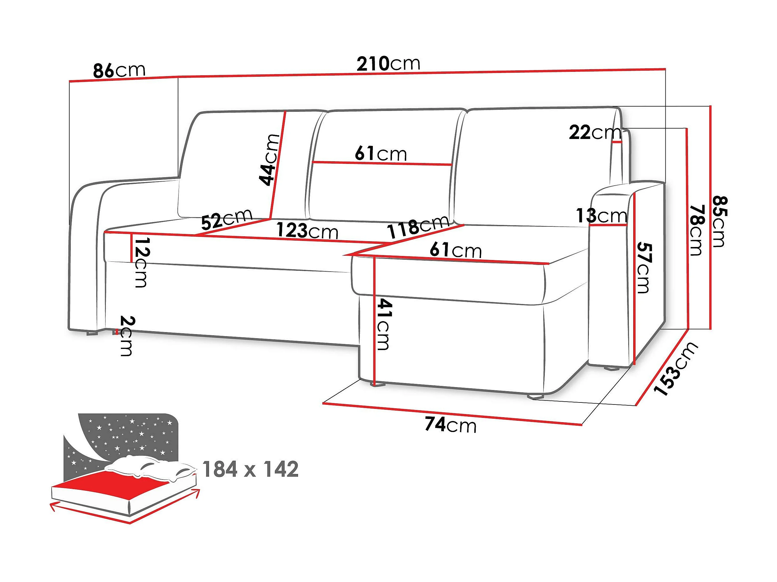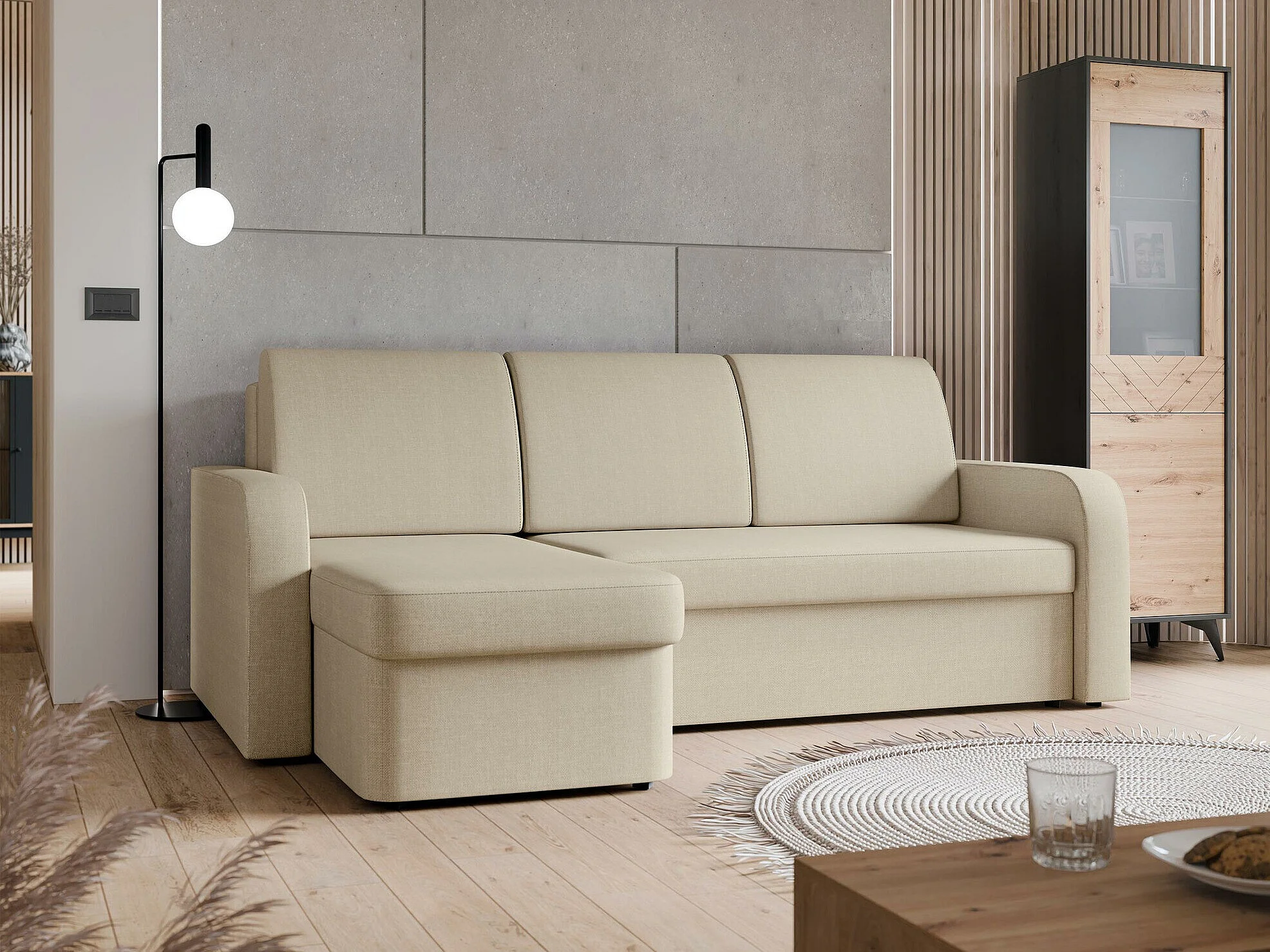 Canapé d'angle Rome 106, Brun clair, Fonction de couchage, Boîte de literie, 210x153x85cm