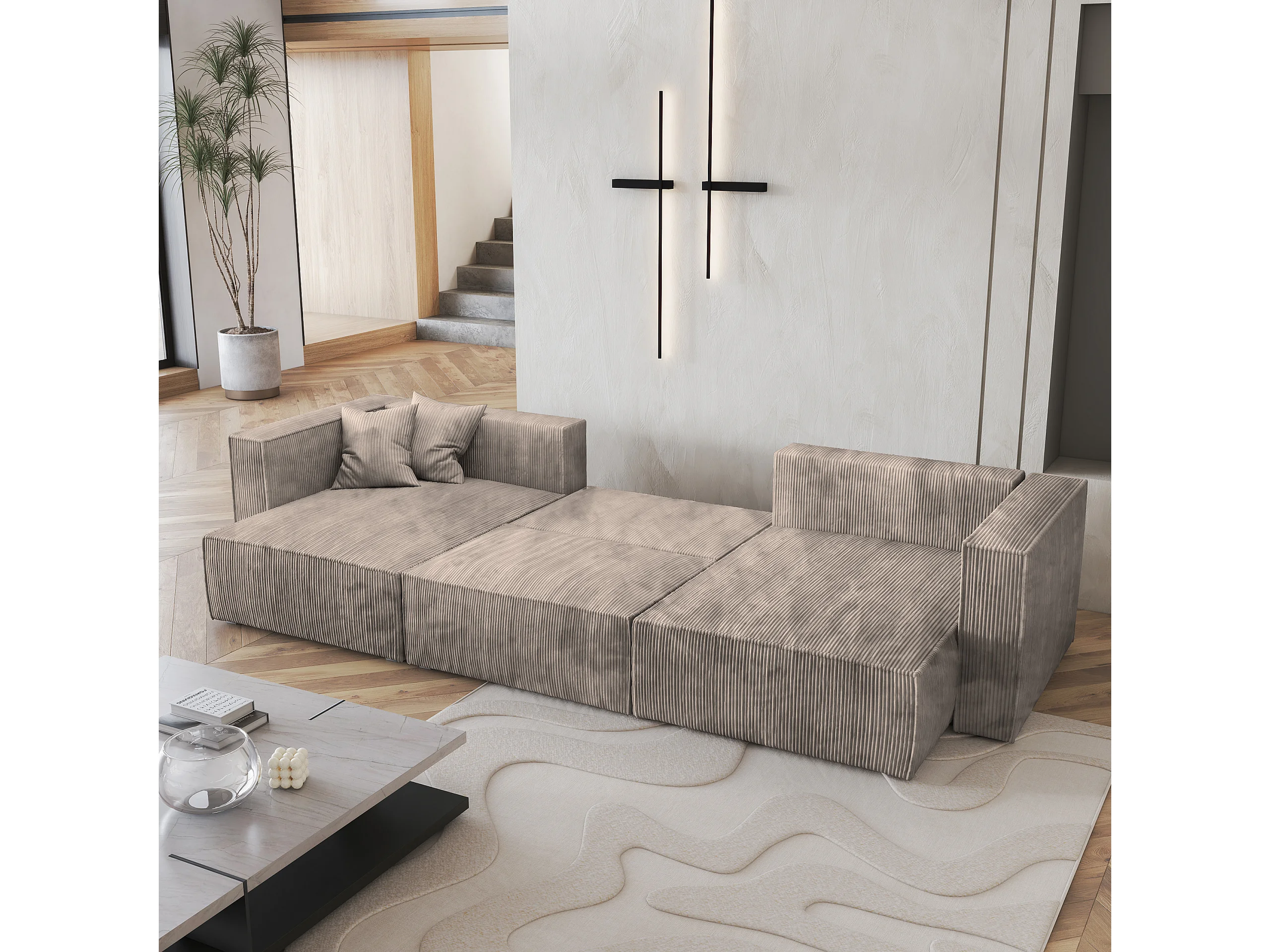Canapé d'angle SARMO Beige en velours côtelé avec fonction de couchage